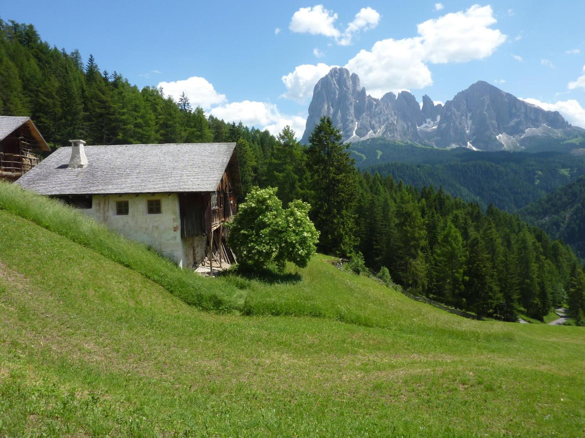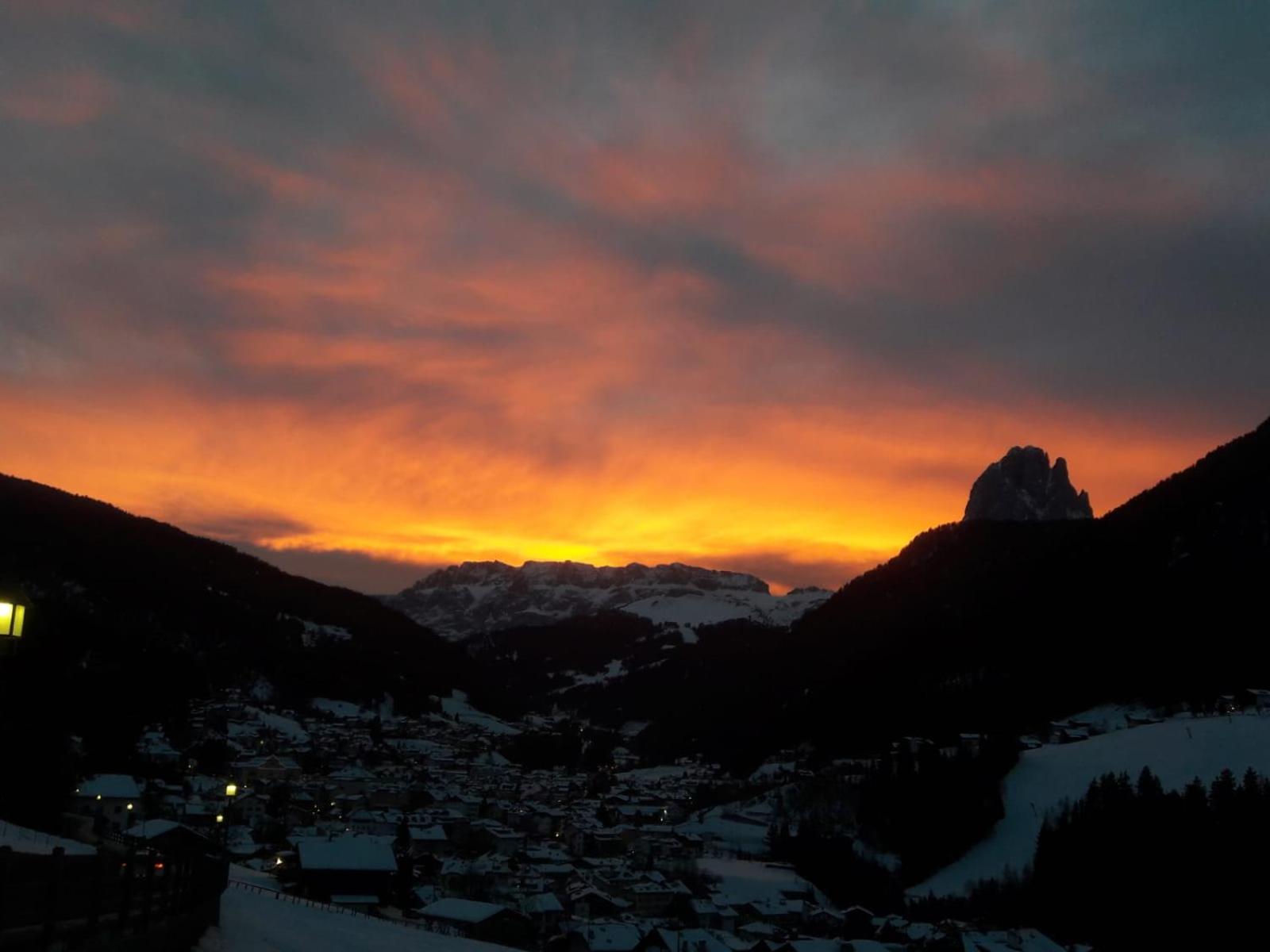 De locatie ligt op een half uurtje klimmen vanaf Ortisei centrum, dit is wel een stijl stuk omhoog. Maar er is een bushalte voor de deur, deze gaat 1 x in het uur. Laatste gaat rond 19.00u terug omhoog, dus later op de avond betekent met de taxi terug of zelf rijden.