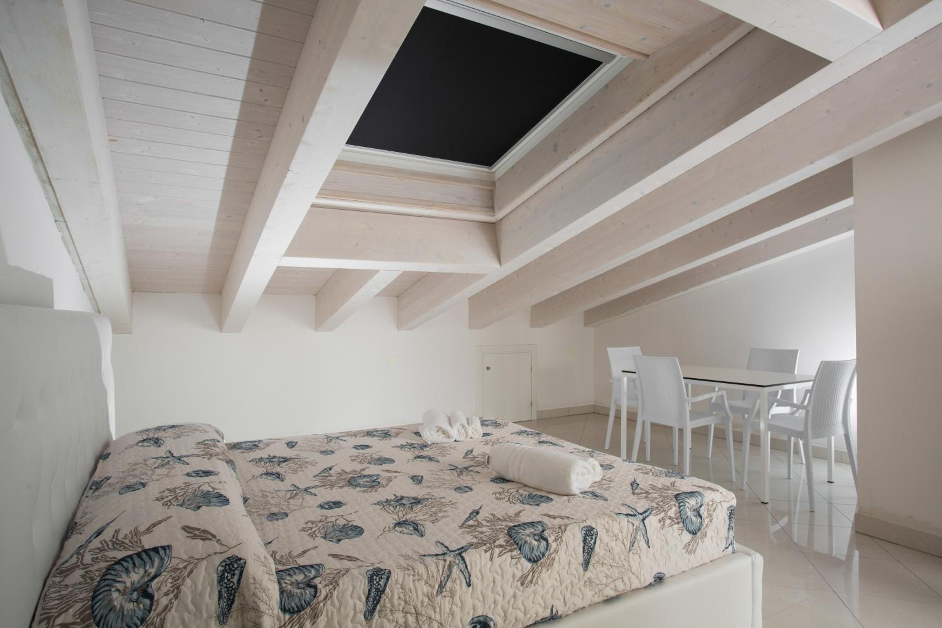 La mansarda era accogliente, situata allo stesso piano del terrazzino con vasca, ombrelloni, sdraio e tavolini. Un terrazzino incantevole con i servizi di circostanza. La vasca veniva svuotata e pulita tutte le mattine. Il personale sempre a disposizione e gentile. Abbiamo avuto un inconveniente con una finestrella che è stato subito risolto. La struttura, era vicina alla spiaggia pubblica e vicino egli stabilimenti balneari, nelle vicinaze c' era anche una pineta, pizzeria e vari negozi. È stata un ottima scelta alloggiare alla Mansarda Diamanti.