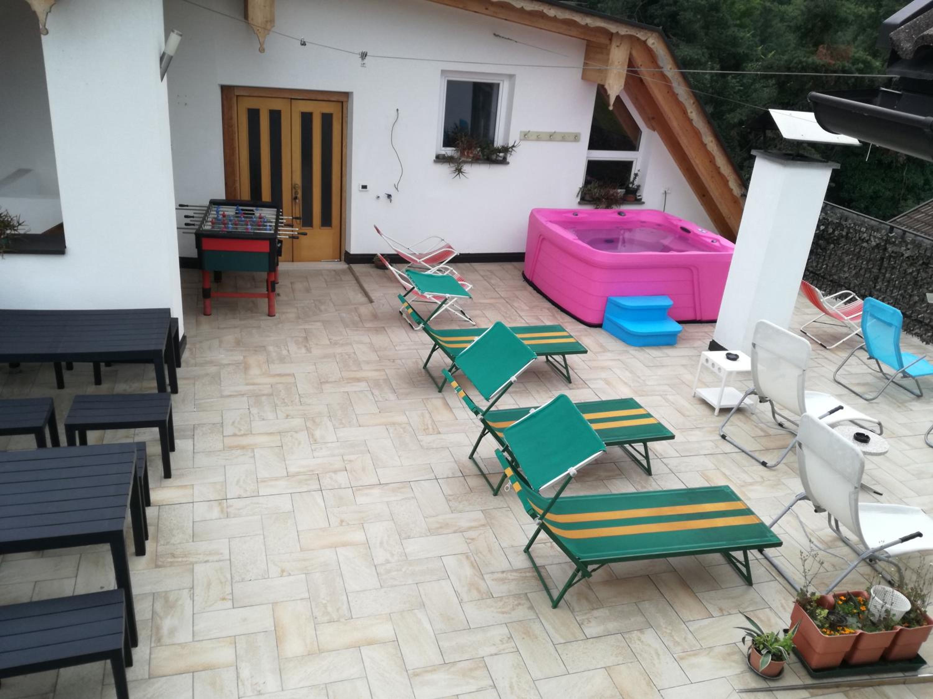 Pension Flora boasts a charming terrace equipped with comfortable sun beds, ideal for soaking up the sun. Guests can also indulge in delicious meals at the traditional restaurant, offering local cuisine and mouth-watering pizzas.