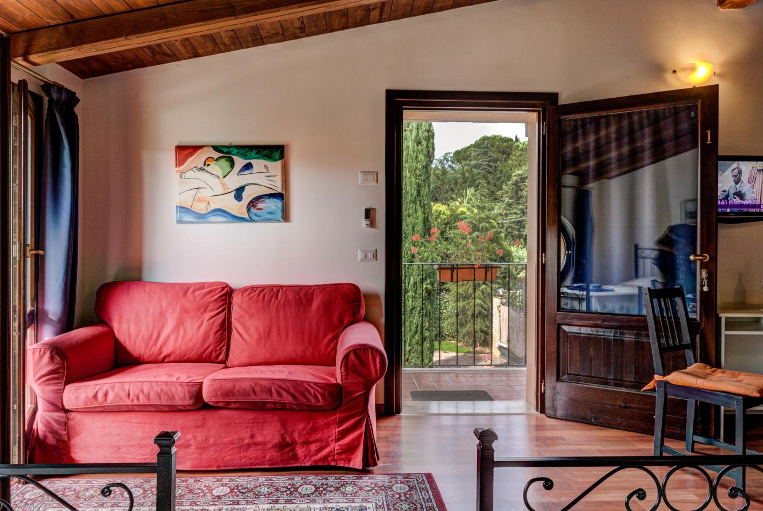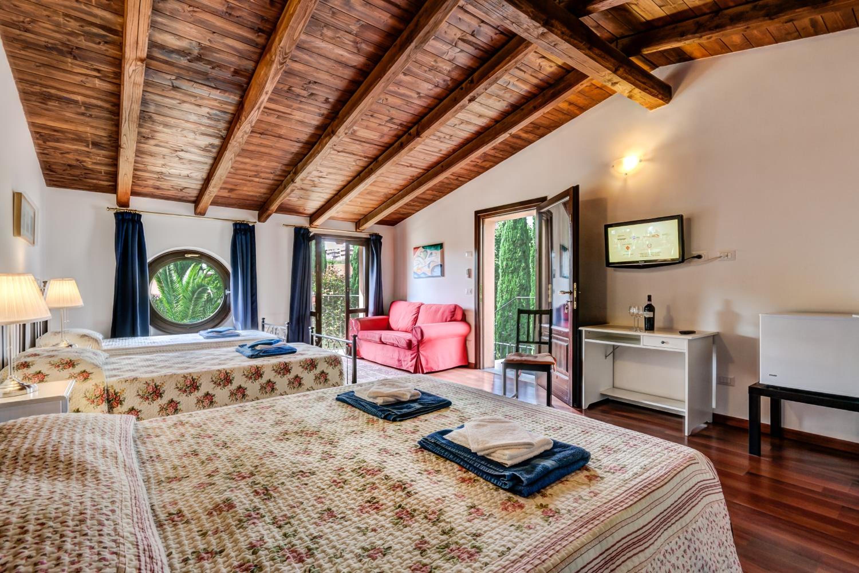 Relais Villaggio Azzurro offers elegant rooms with parquet floors, air conditioning, and flat-screen TVs. Some rooms even feature a charming balcony with garden views, providing a serene and picturesque setting for guests to enjoy.