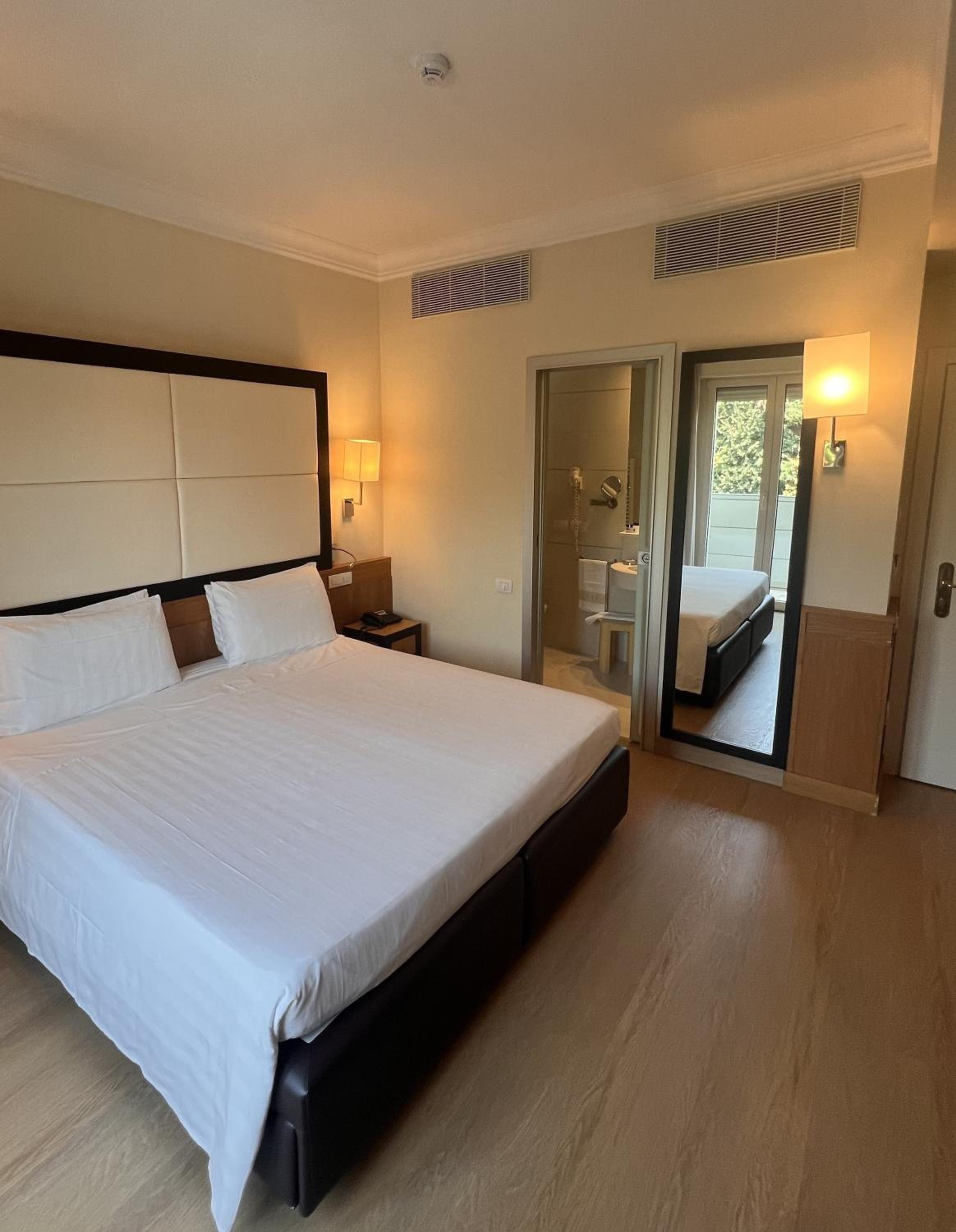 la camera molto pulita, aria condizionata, stanza spaziosa, personale cortese, parcheggio molto comodo.
