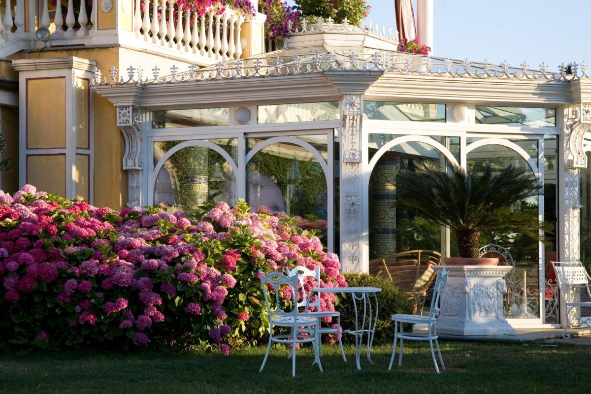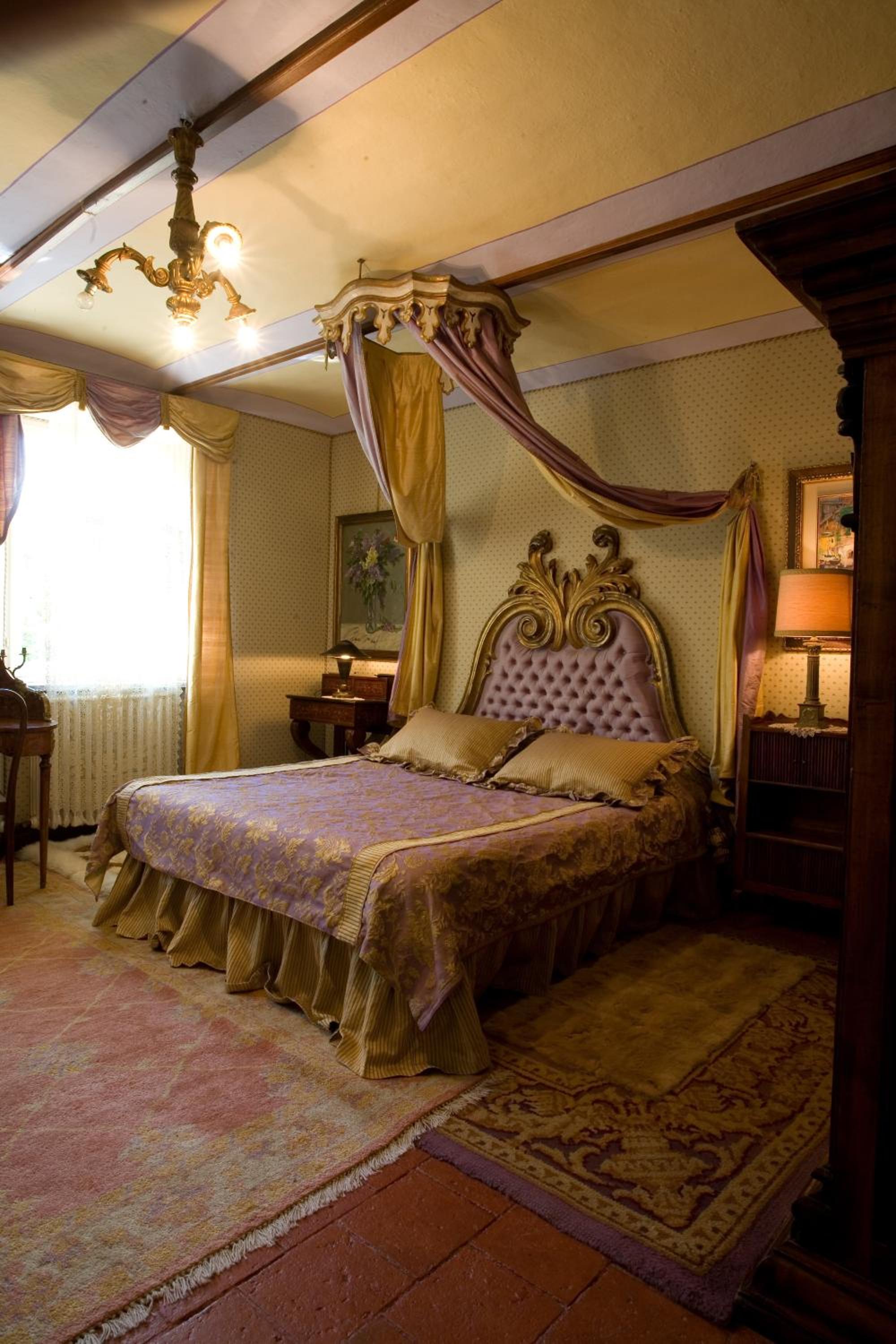 Indulge in the classic charm of the rooms at Villa Althea, featuring wood floors, cozy rugs, and some with a romantic four-poster bed. Unwind by the fireplace or take in the fresh air from your private balcony.