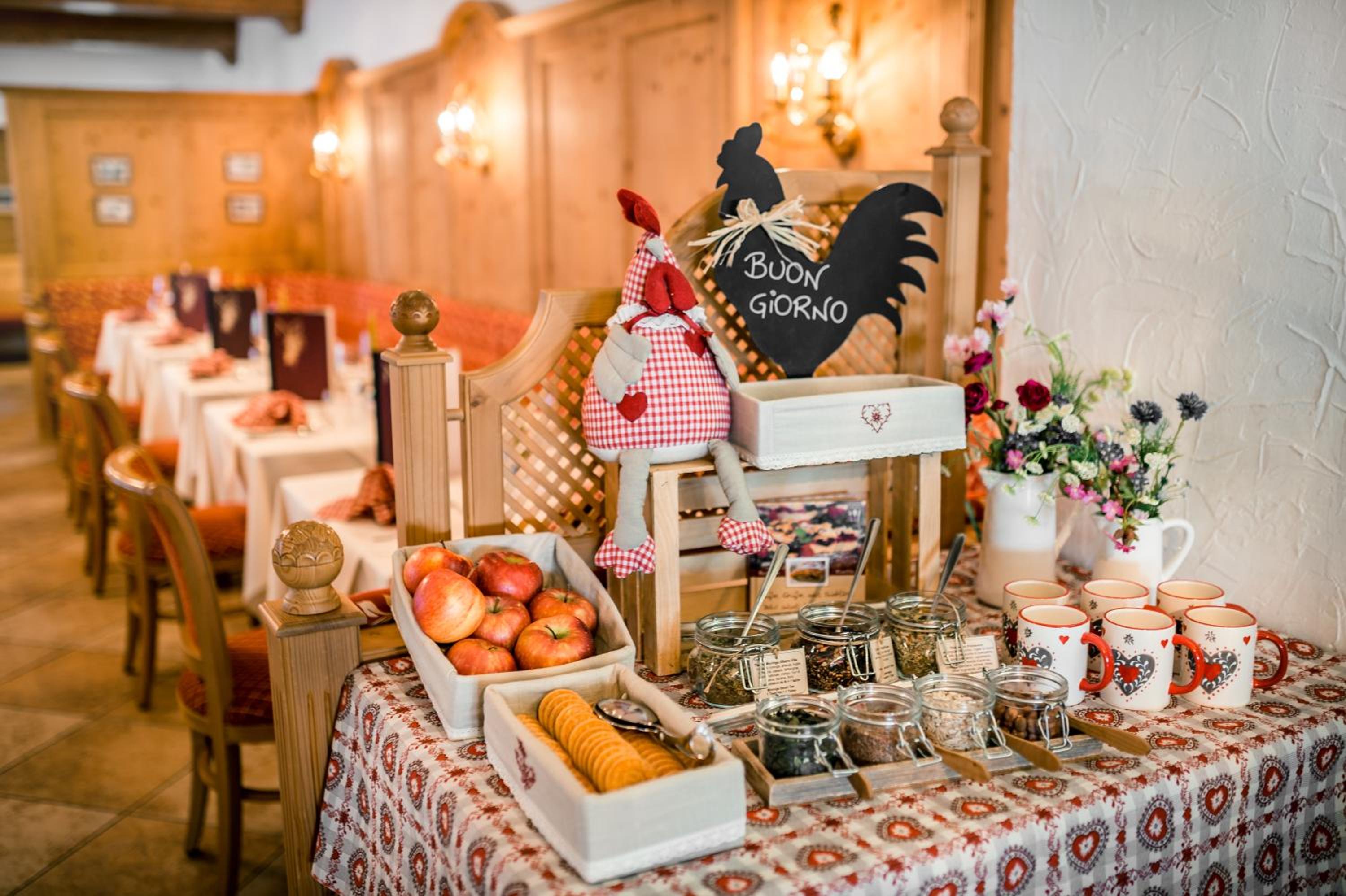 Indulge in a delightful culinary experience with a varied breakfast buffet and a scrumptious 4-course dinner at the on-site restaurant offering South Tyrolean and international dishes. Moreover, guests have complimentary access to indoor and outdoor pools, Turkish bath, and hot tubs at the nearby Mardolomit leisure centre.
