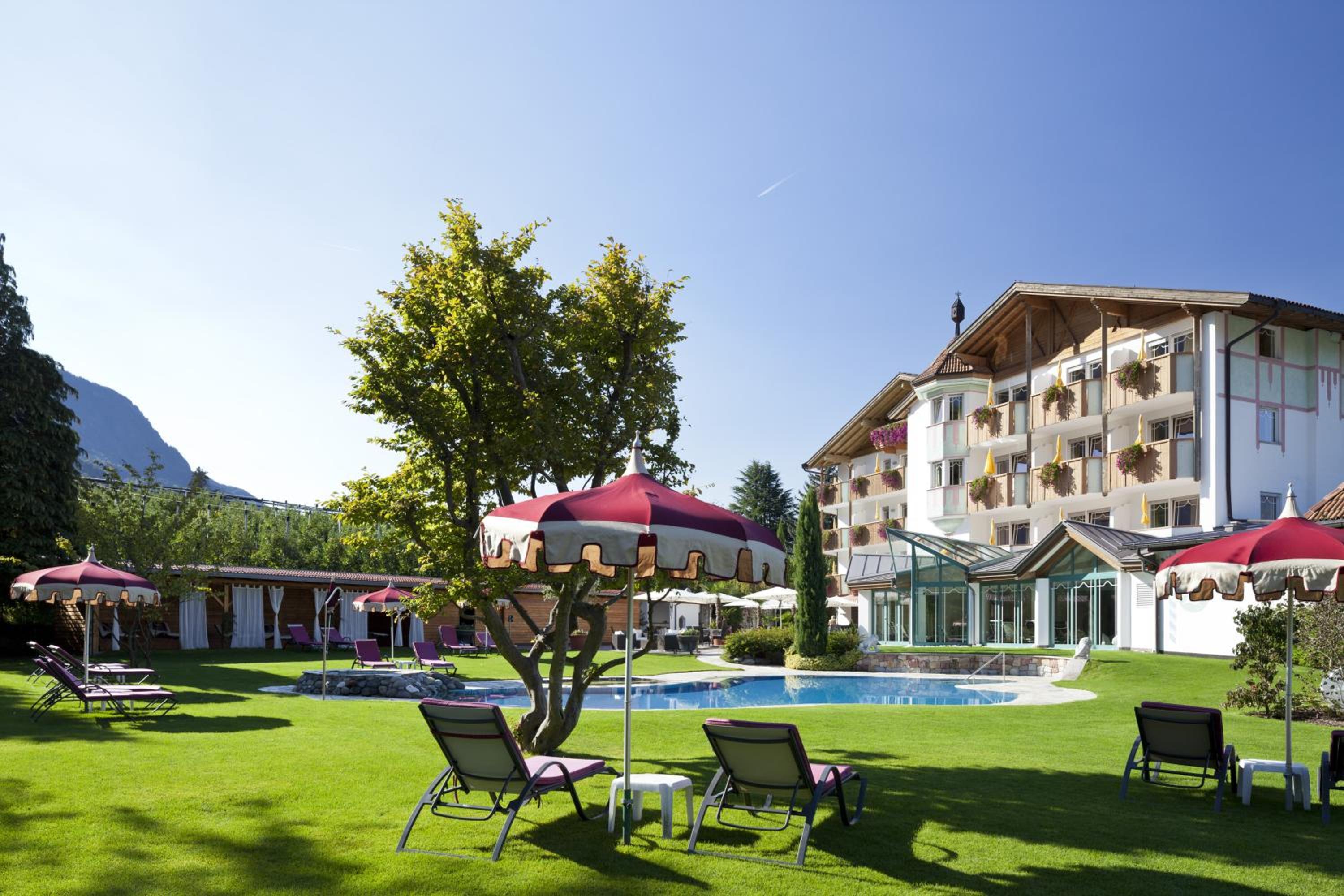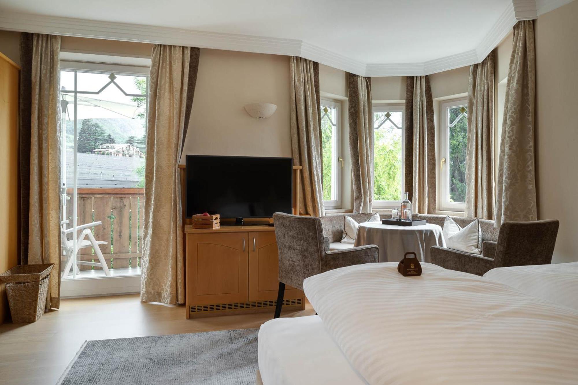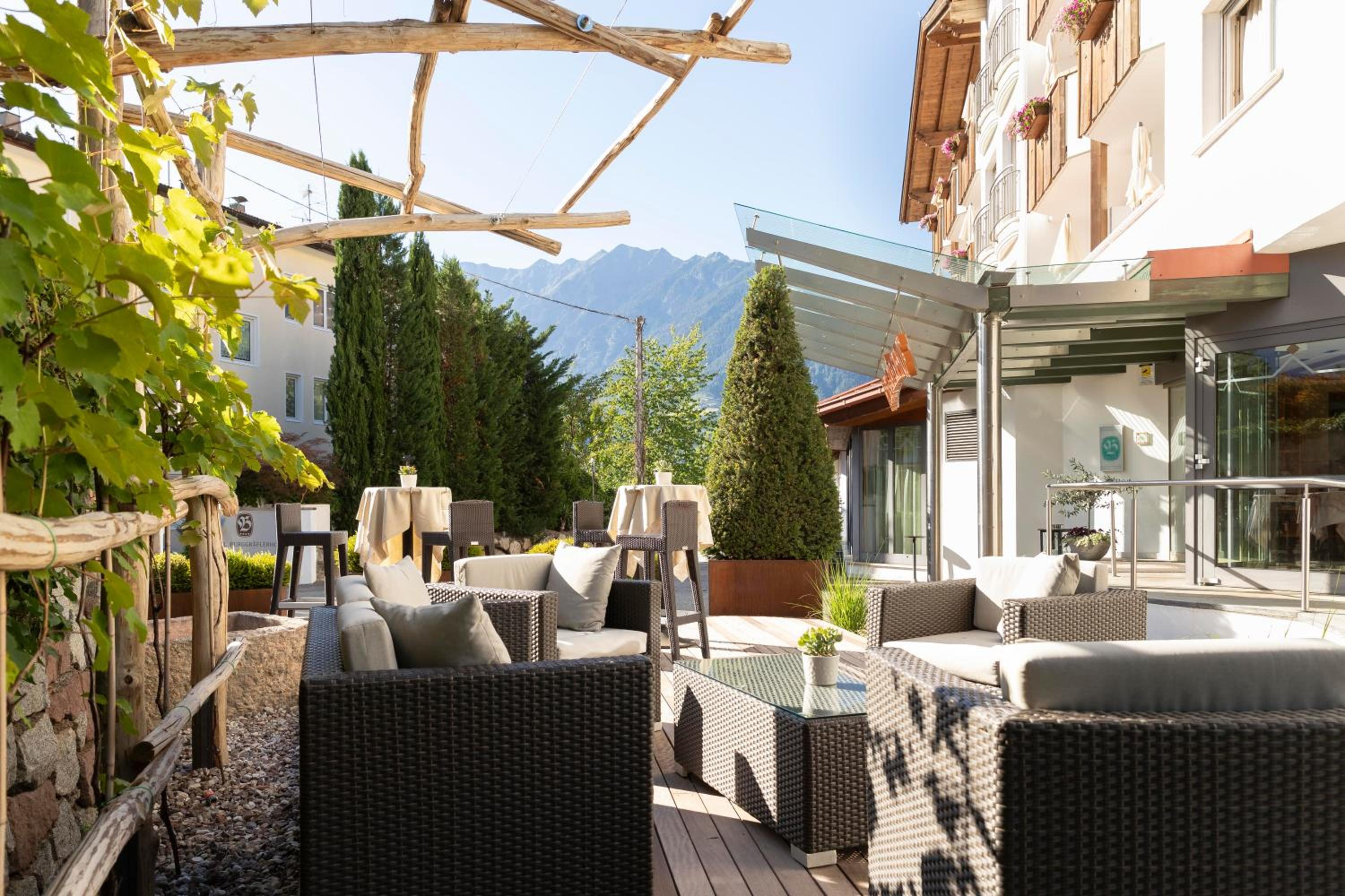 At Hotel Burggräfler-Hof, immerse yourself in the serene countryside of Meran. Comfortable Accommodations await, offering stunning views from spacious suites. Indulge in relaxation at the on-site Wellness Centre, where you can enjoy complimentary use of the sauna and Turkish bath. Explore the nearby Torrente Passirio river, just a stone's throw away. Enhance your stay by securing half-board service in advance. Book now to experience the perfect blend of nature and luxury at Burggräfler-Hof Hotel.