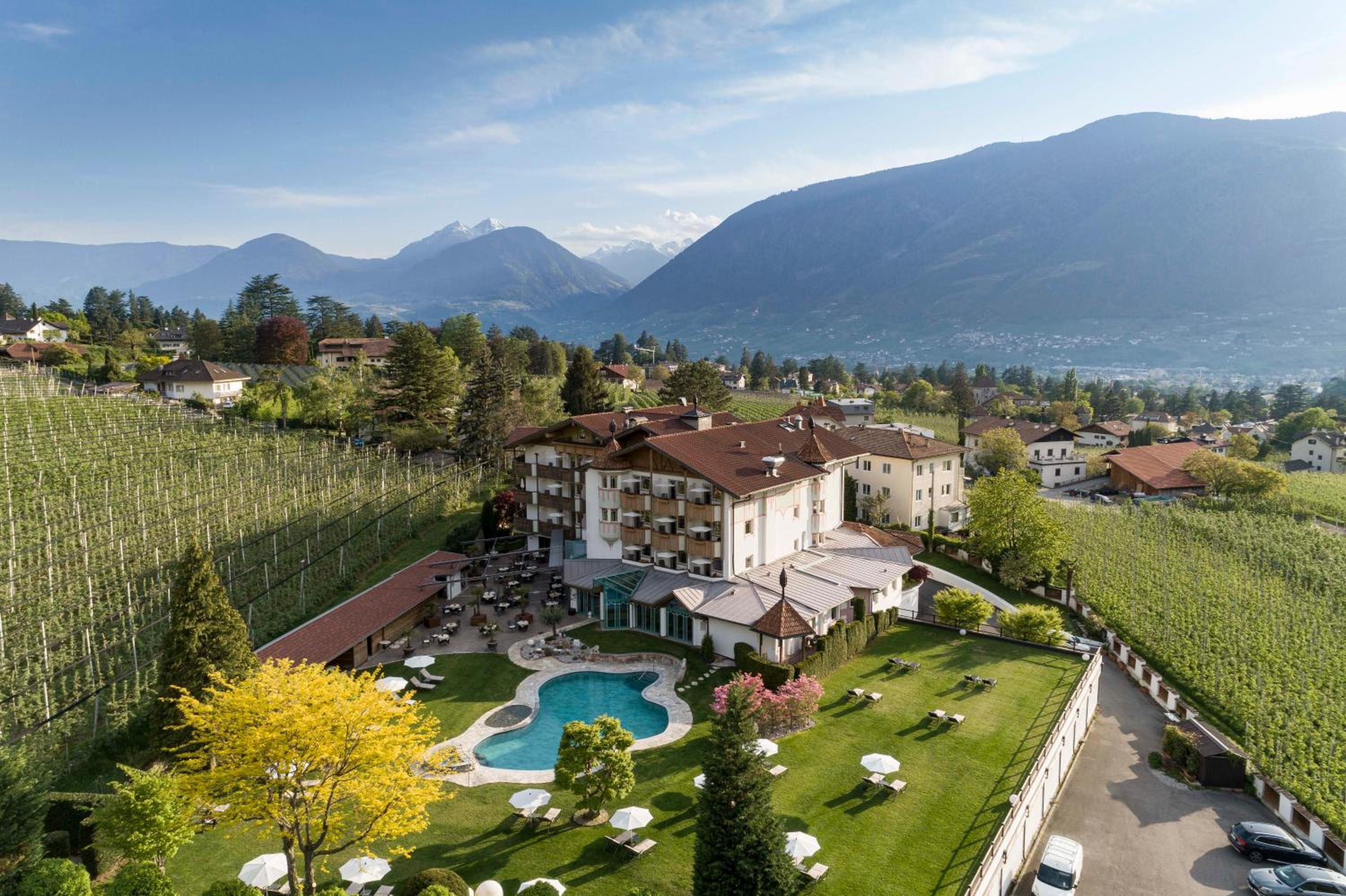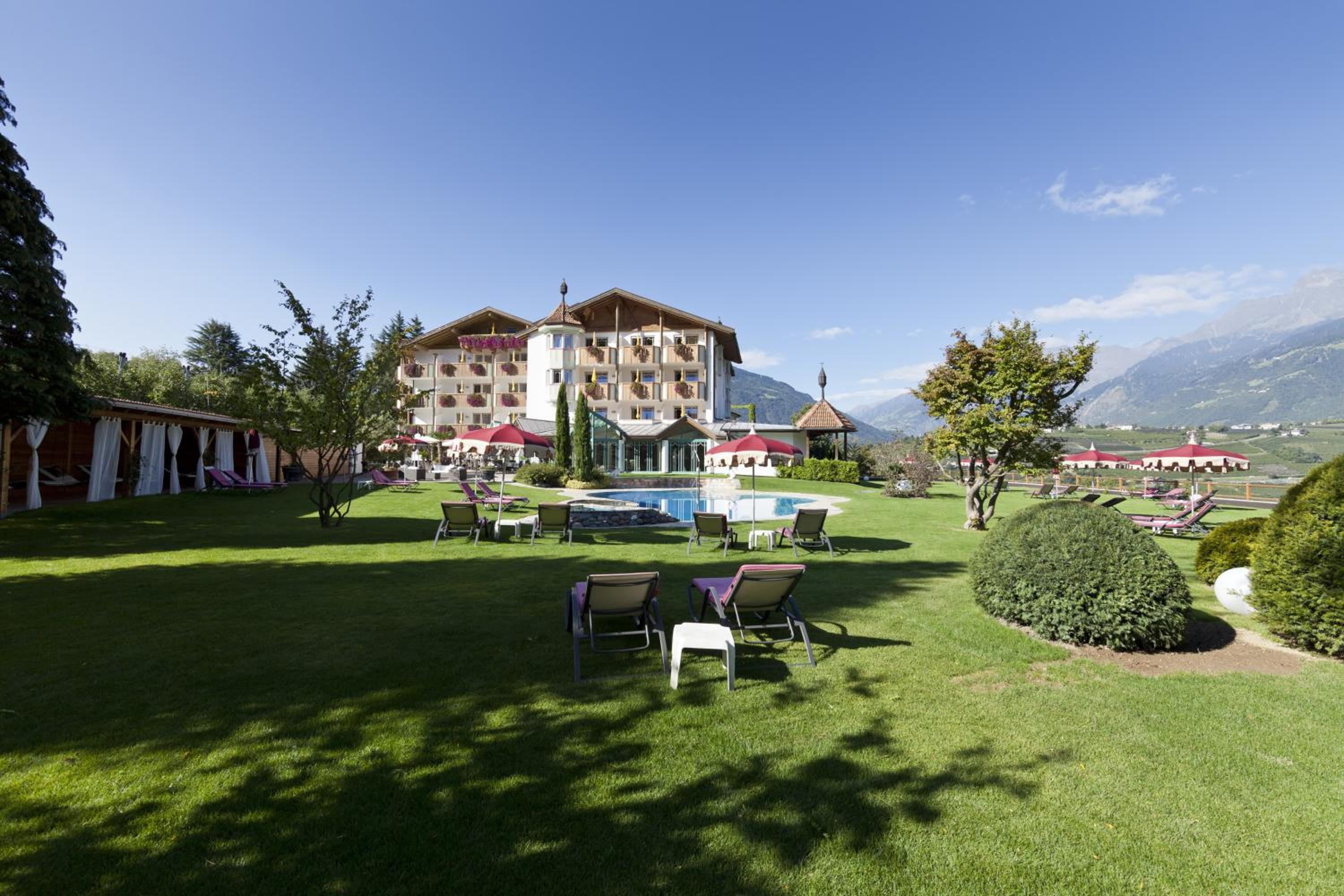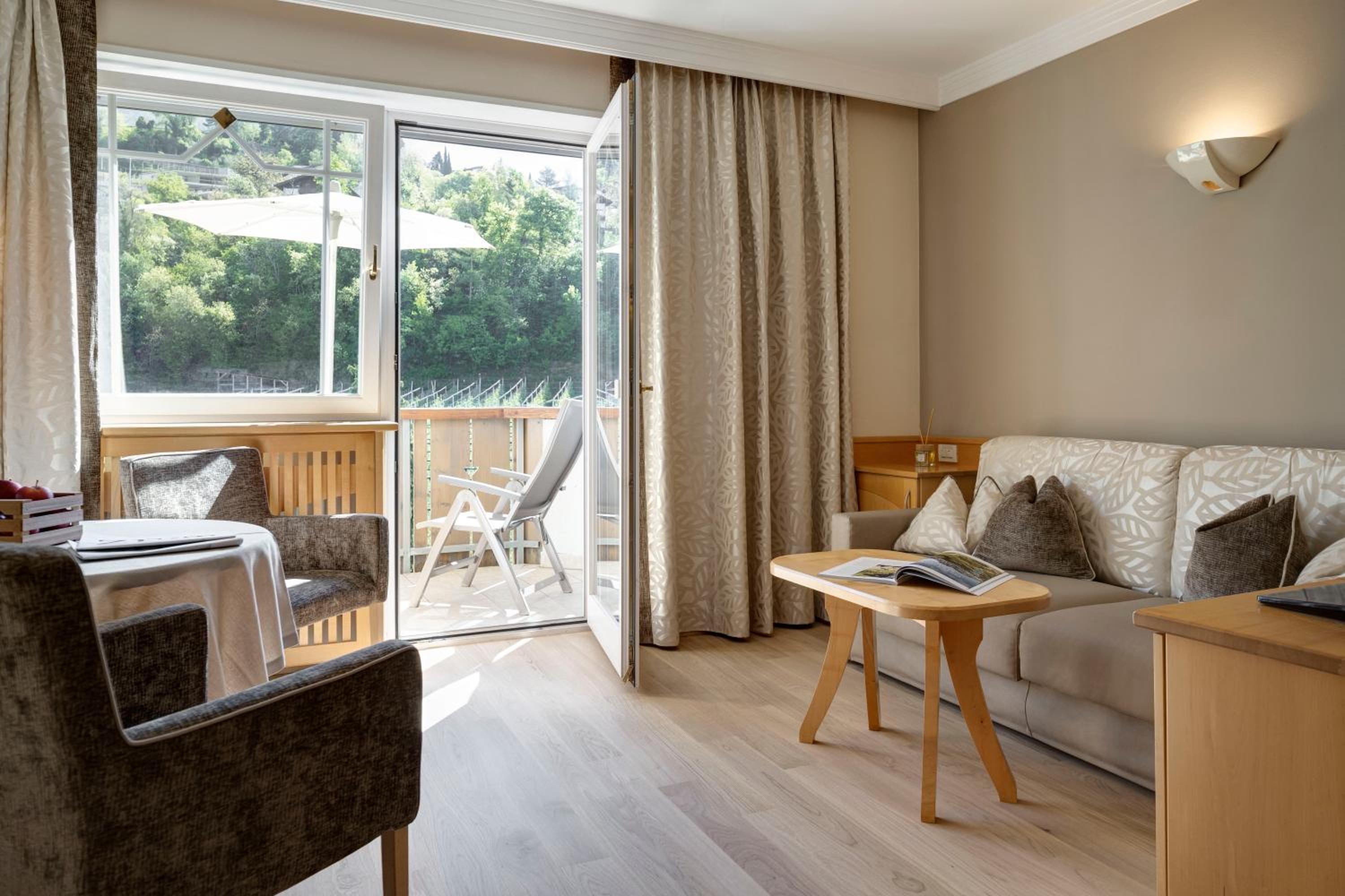 At Hotel Burggräfler-Hof, immerse yourself in the serene countryside of Meran. Comfortable Accommodations await, offering stunning views from spacious suites. Indulge in relaxation at the on-site Wellness Centre, where you can enjoy complimentary use of the sauna and Turkish bath. Explore the nearby Torrente Passirio river, just a stone's throw away. Enhance your stay by securing half-board service in advance. Book now to experience the perfect blend of nature and luxury at Burggräfler-Hof Hotel.