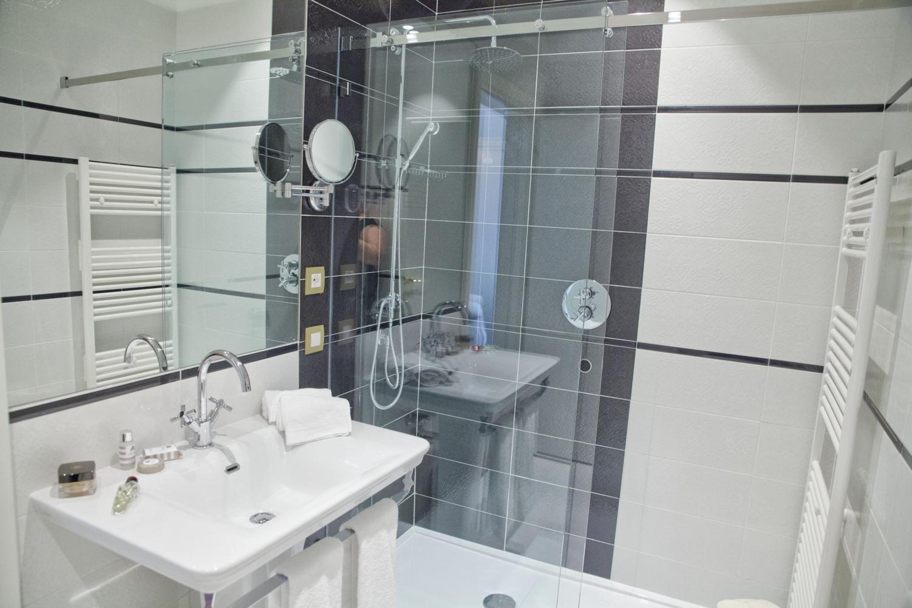 Nel bagno ultramoderno mancano del tutto ganci o appendi asciugamani
