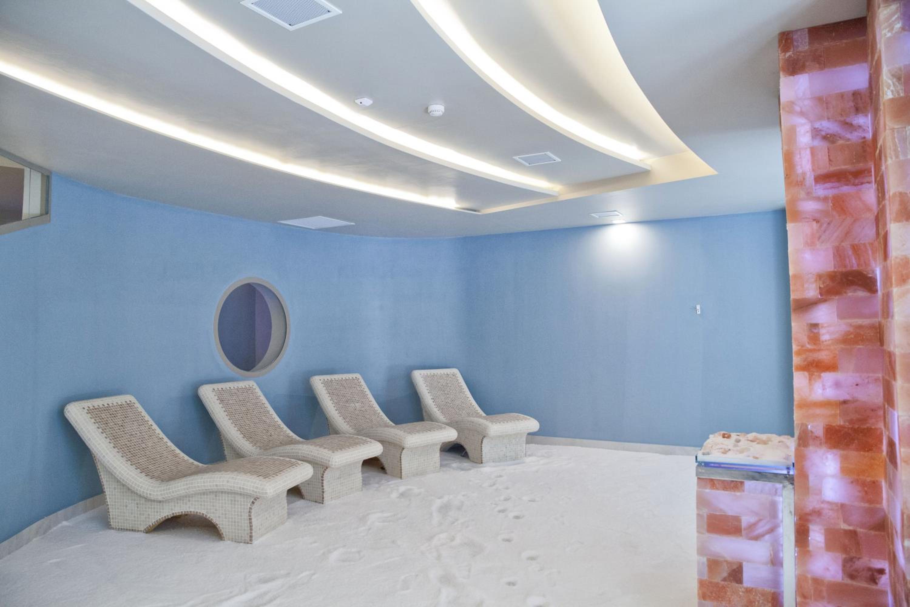 Wellness Center and Terrace: Indulge in relaxation at the wellness center with a Finnish sauna, Kneipp path, Turkish bath, and sensory showers. Enjoy the serene atmosphere on the terrace.