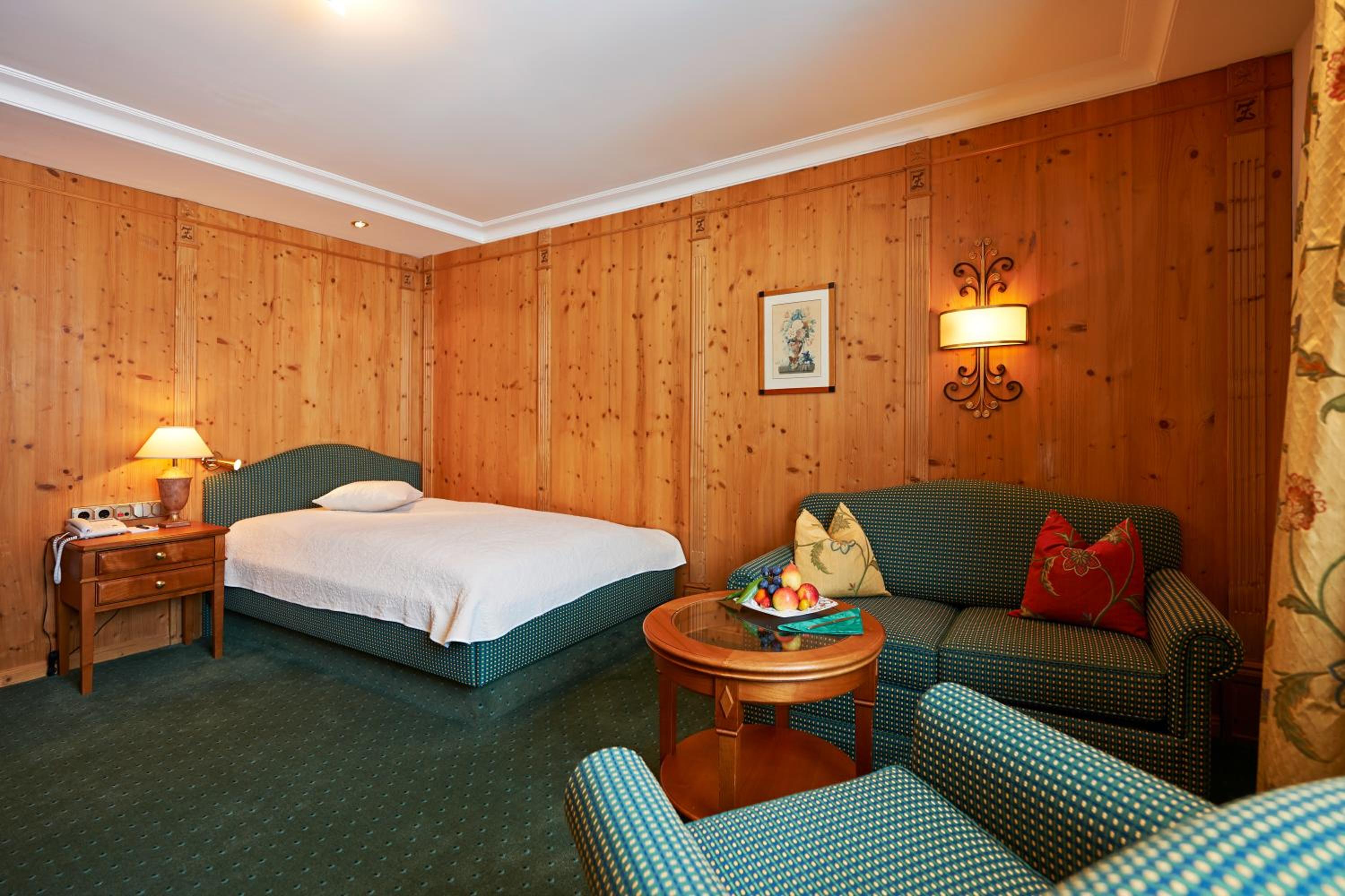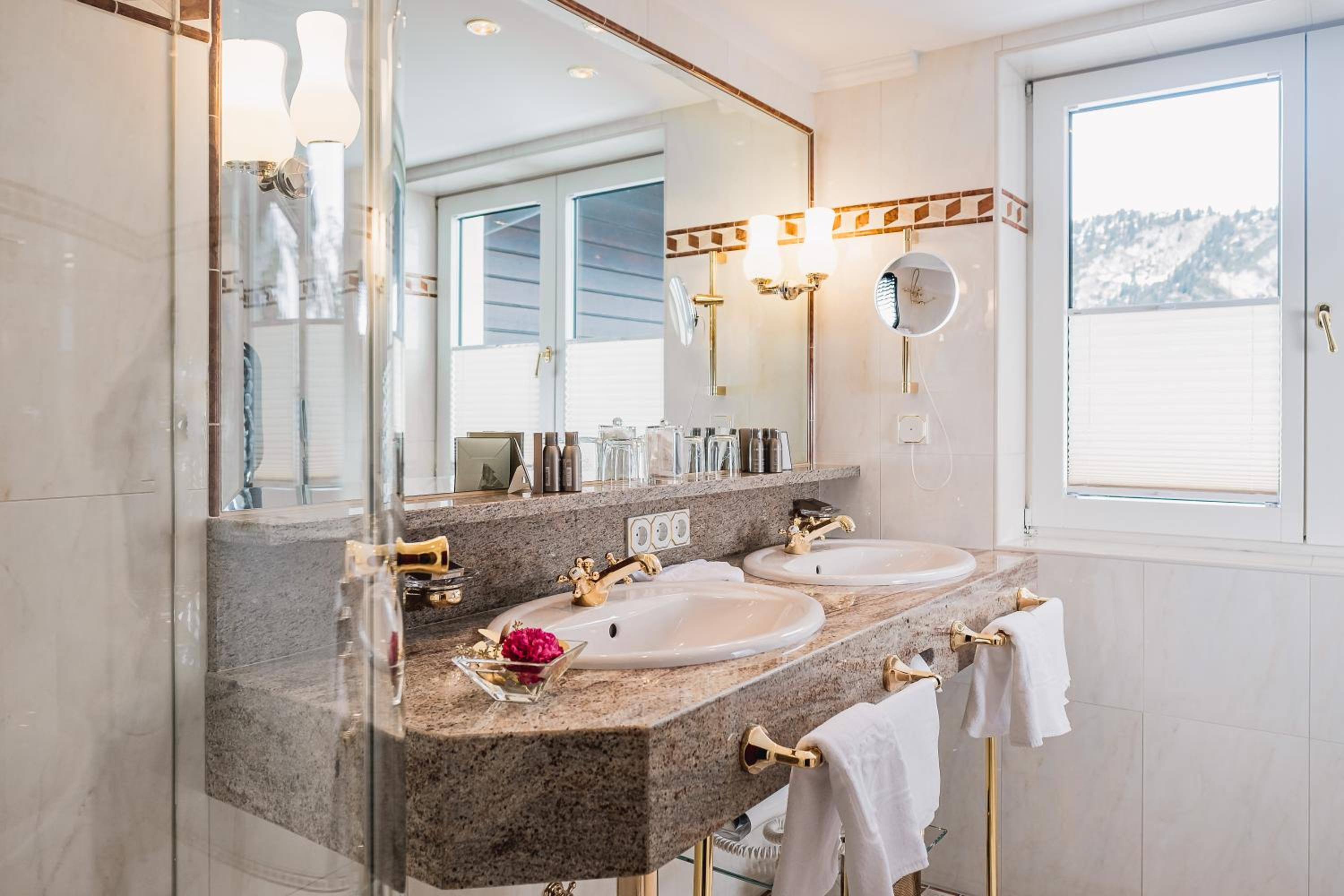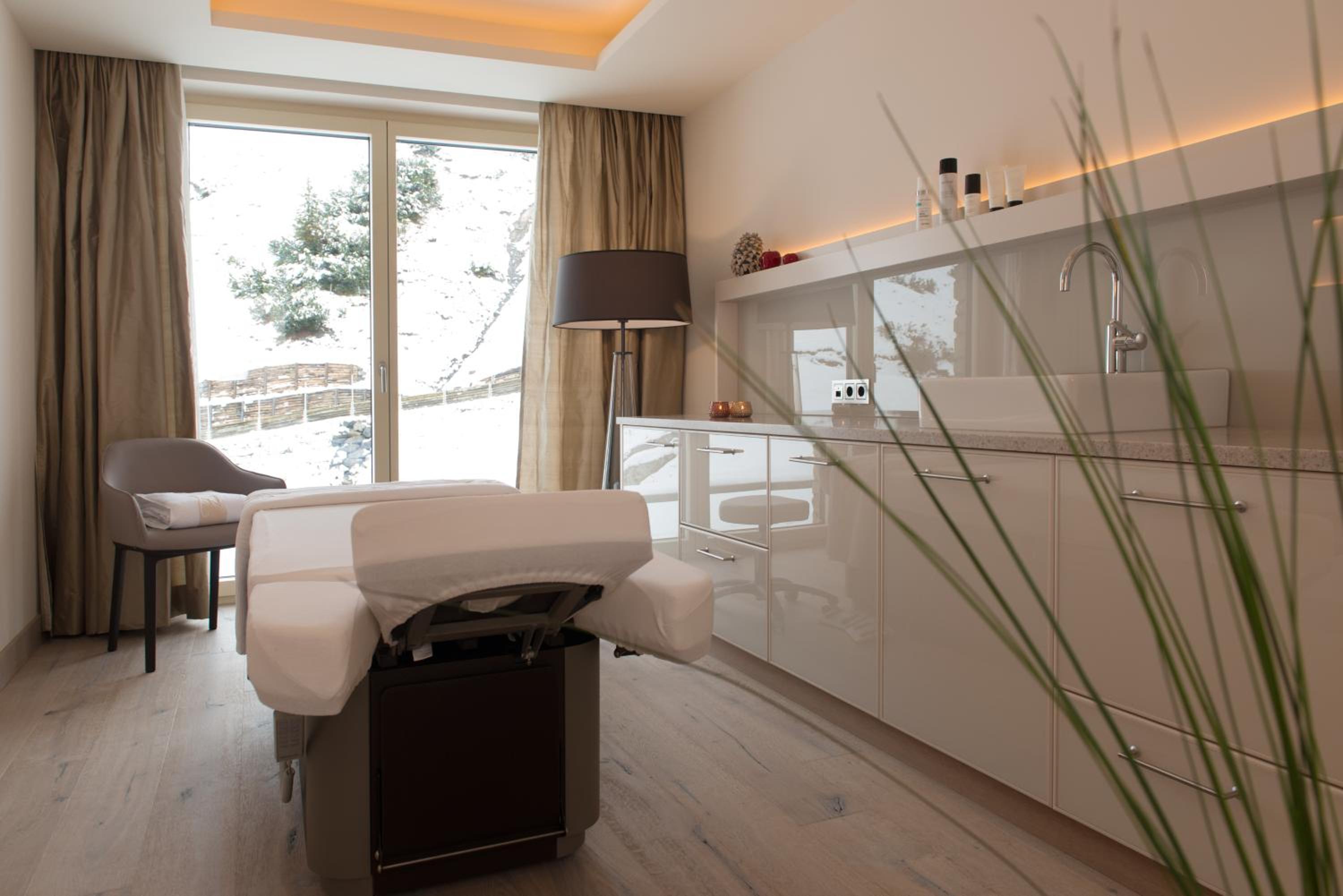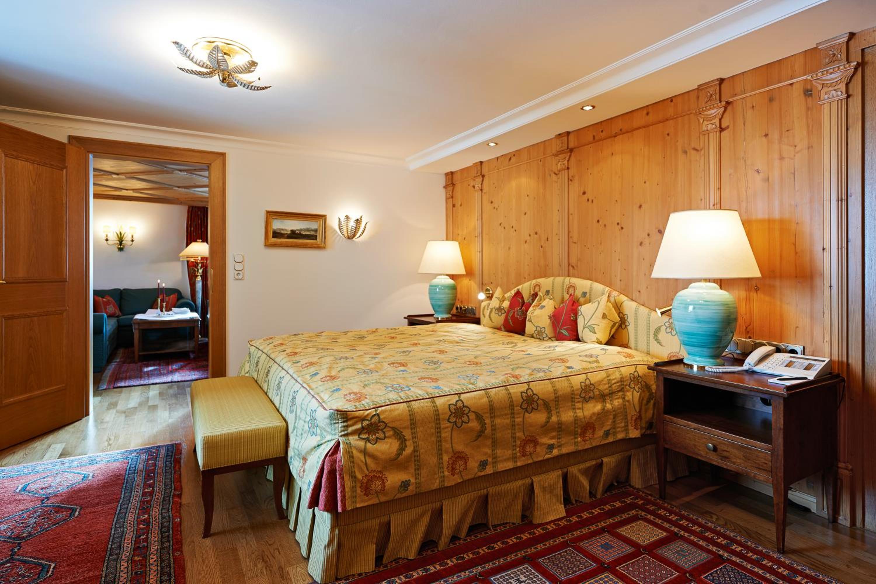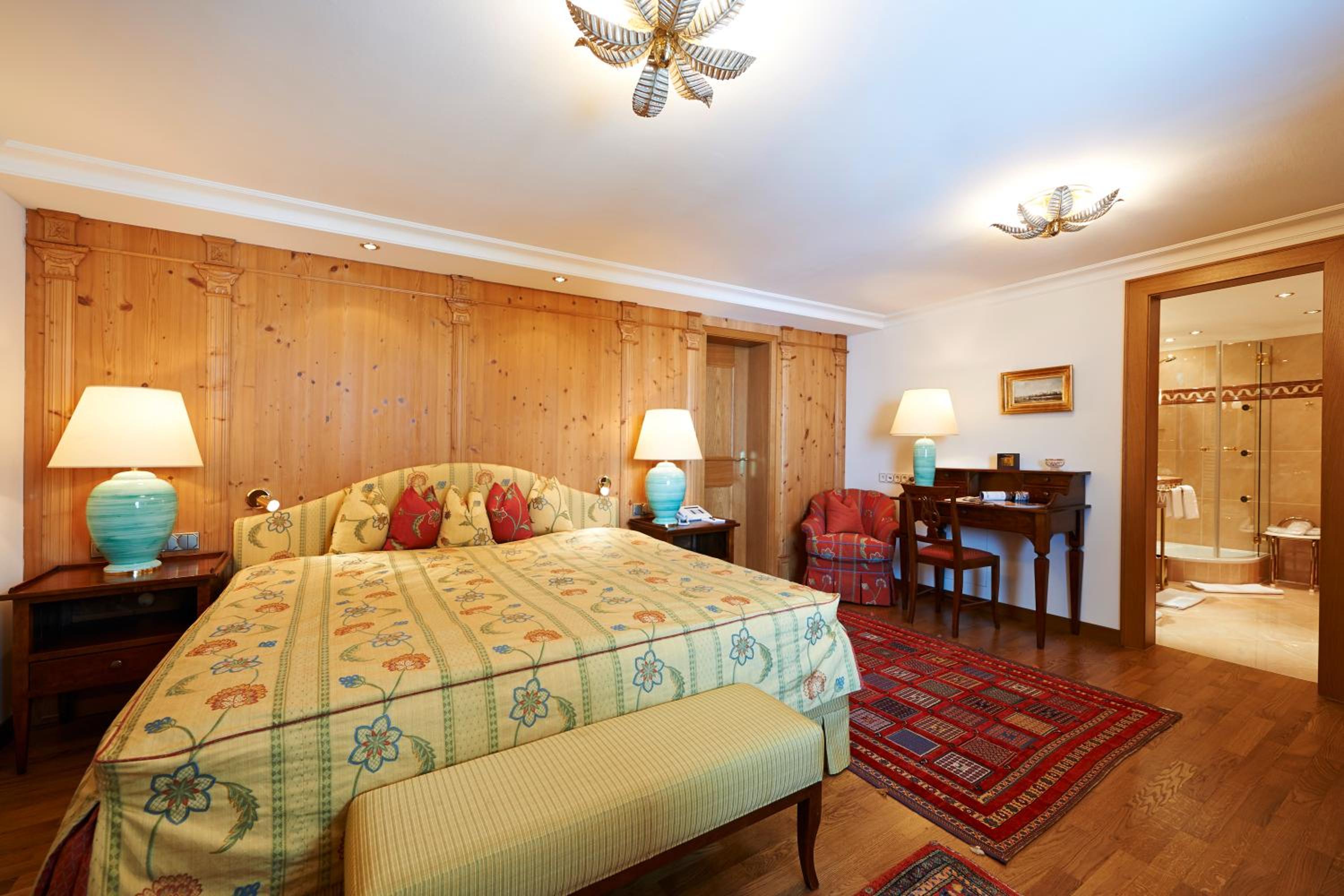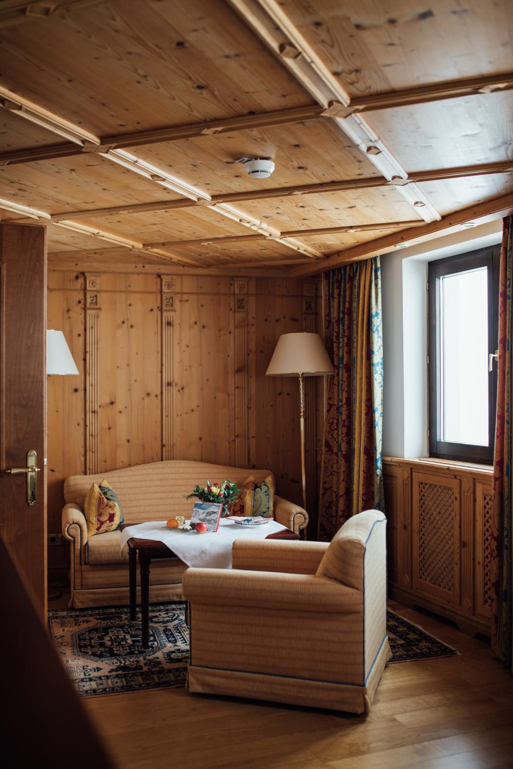 The Zürserhof, a 5-star superior hotel in Zürs, offers elegantly furnished rooms with breathtaking mountain views. Each room is equipped with modern amenities for a comfortable stay, including a flat-screen TV, minibar, and plush bathrobes.