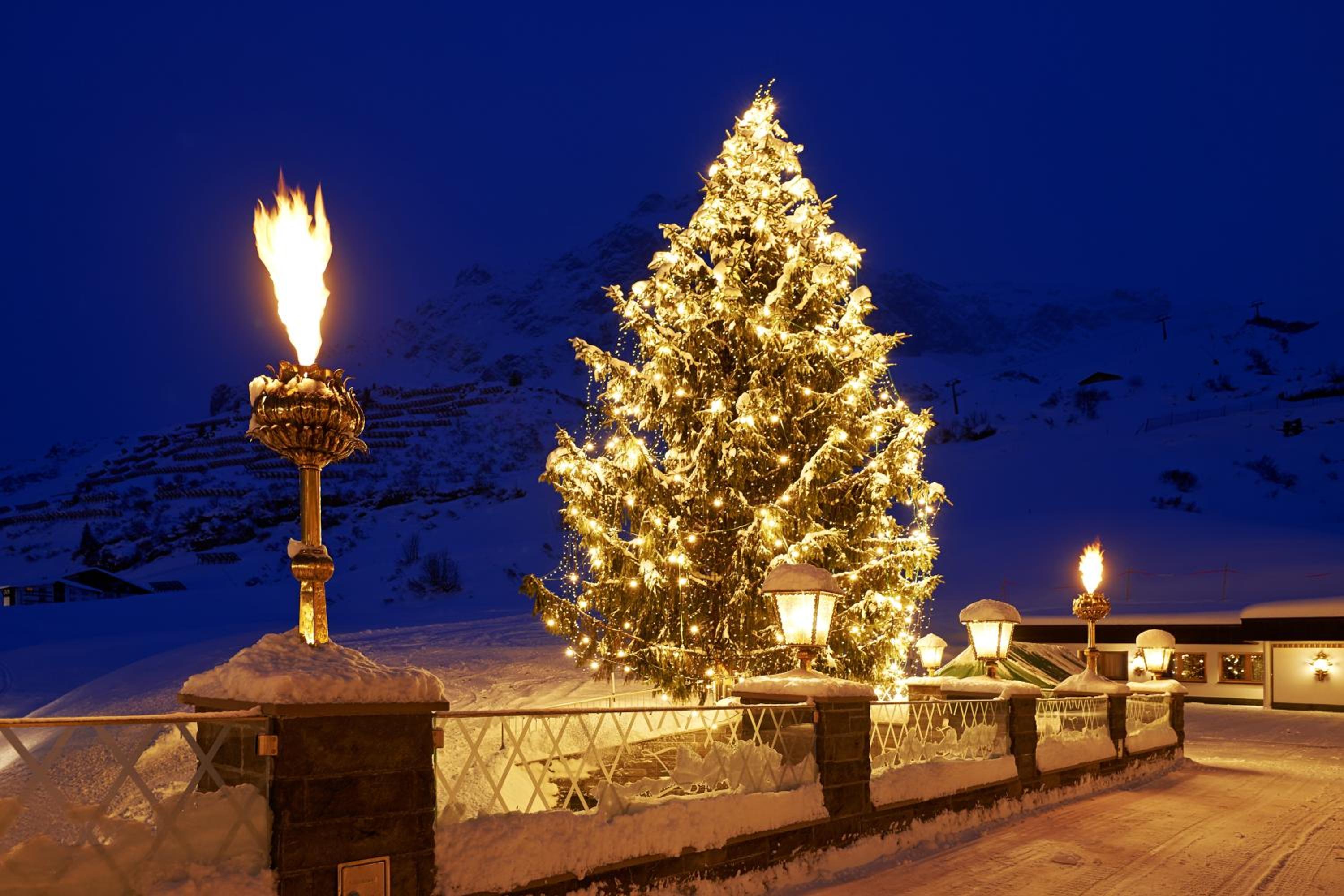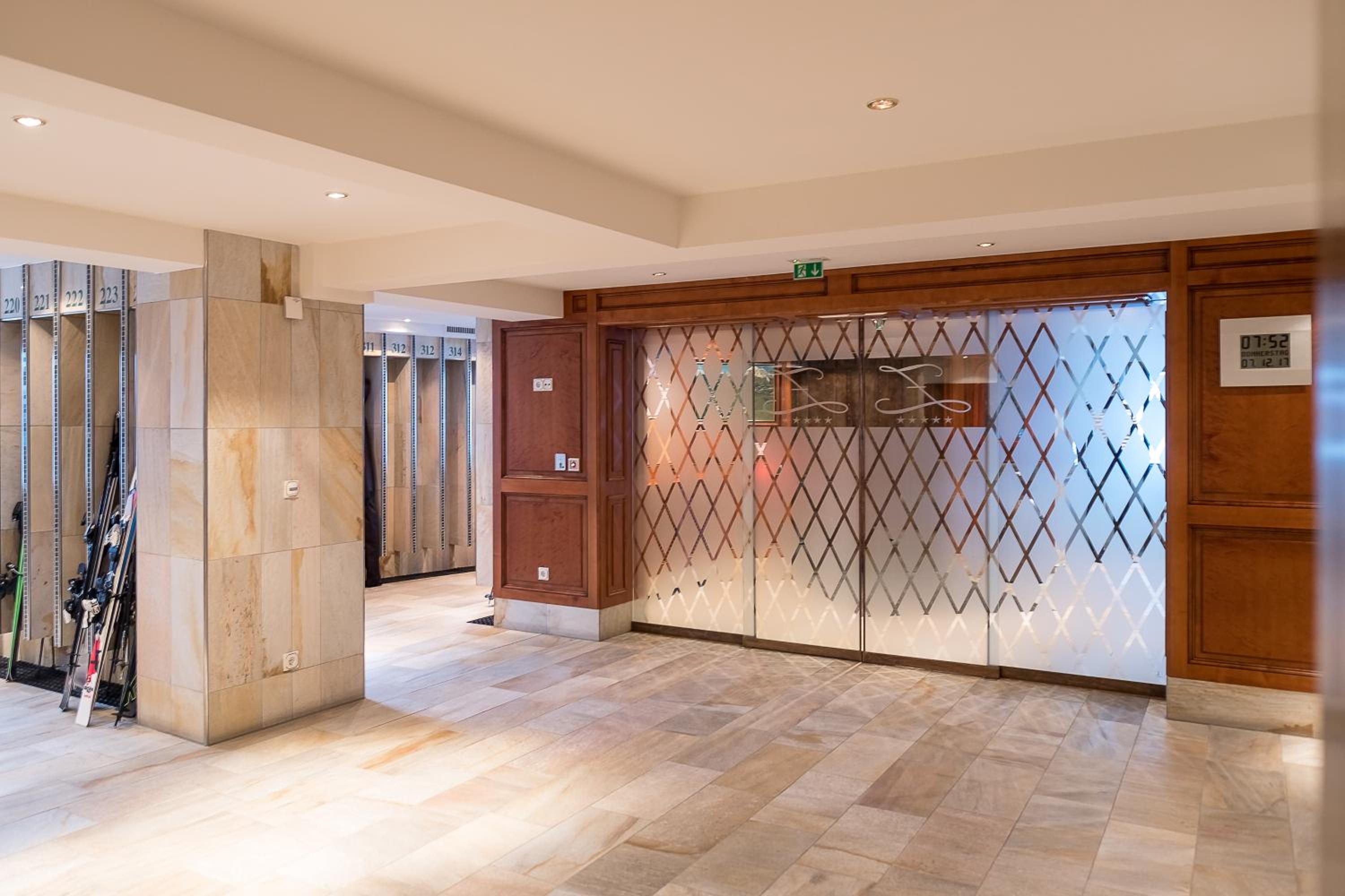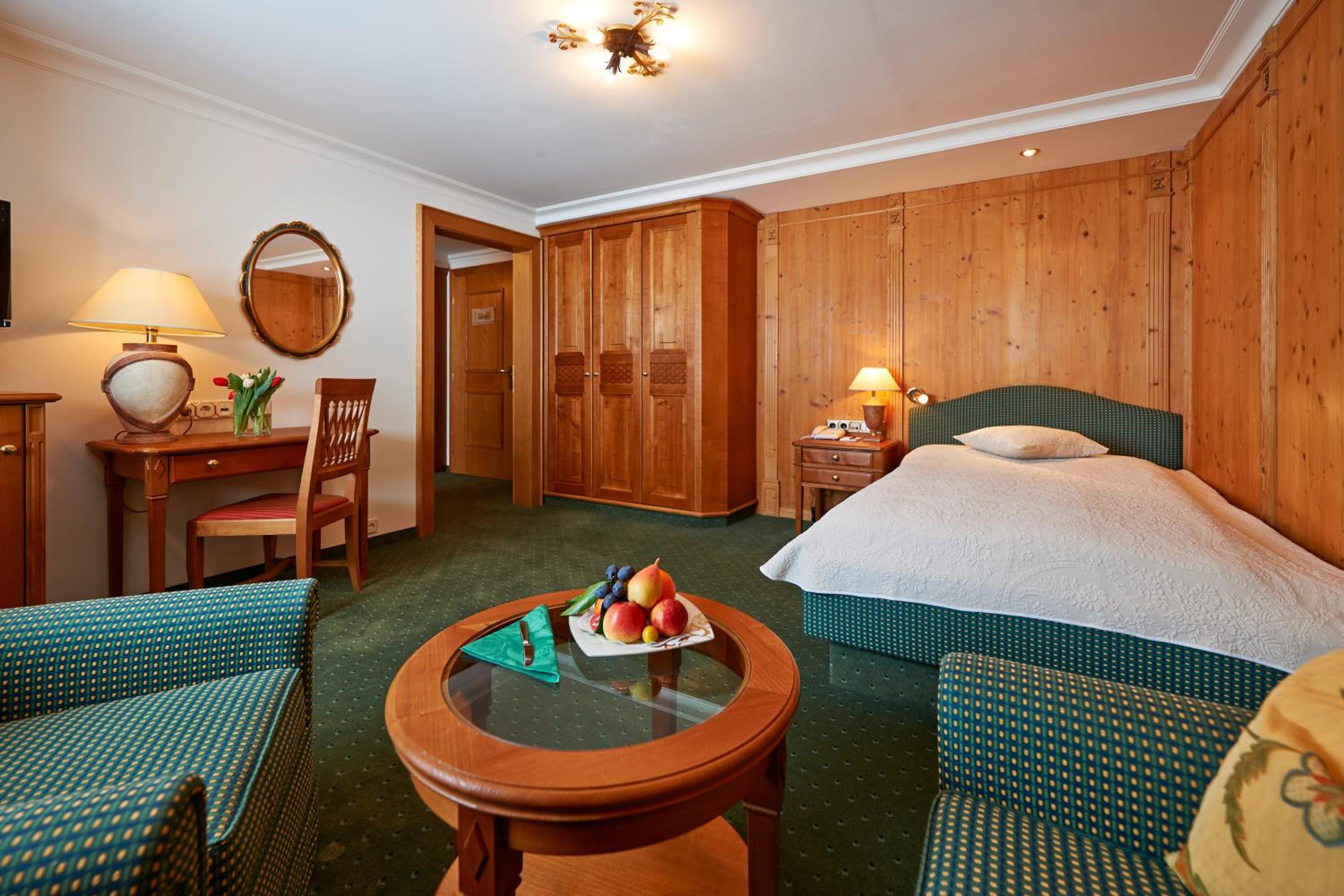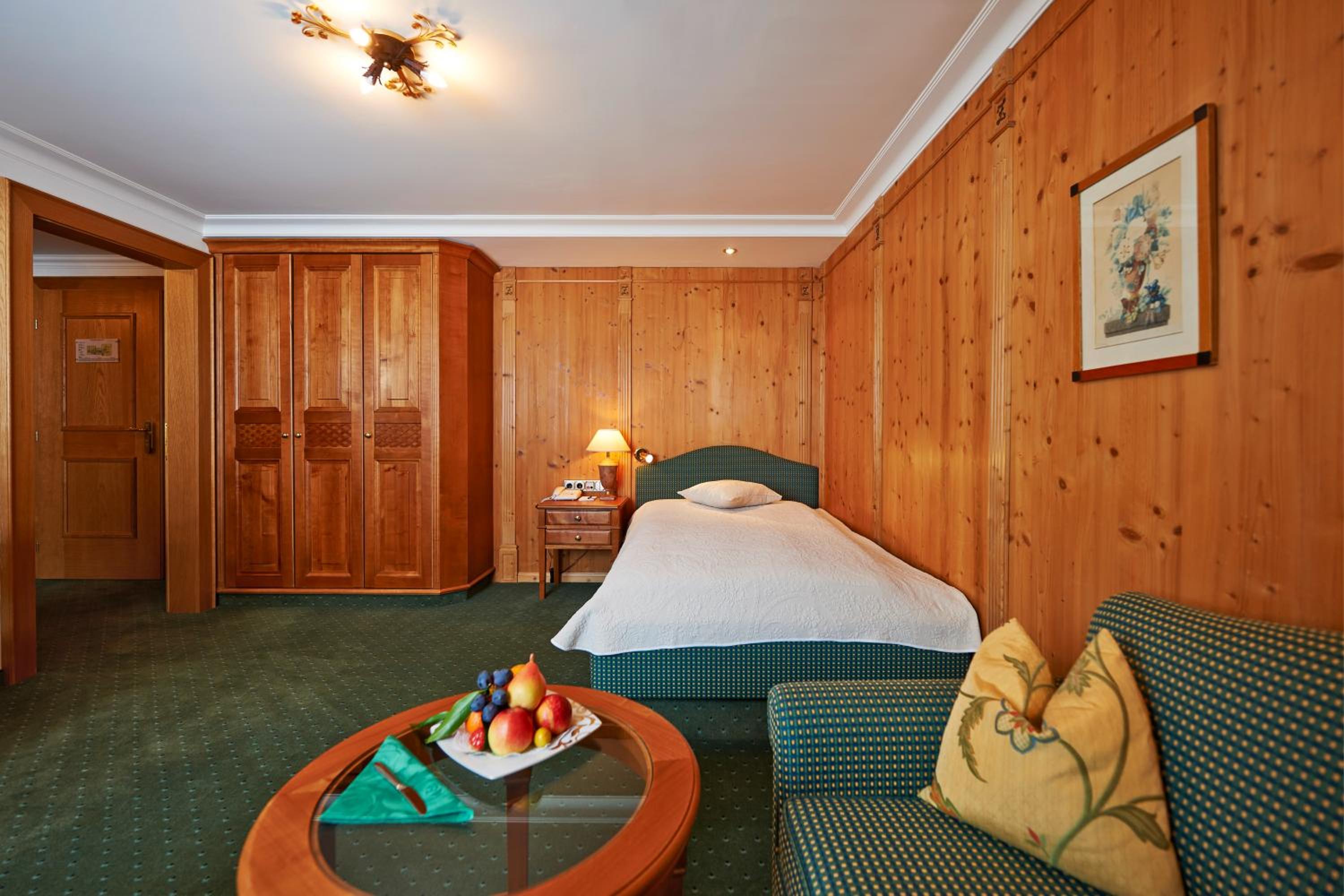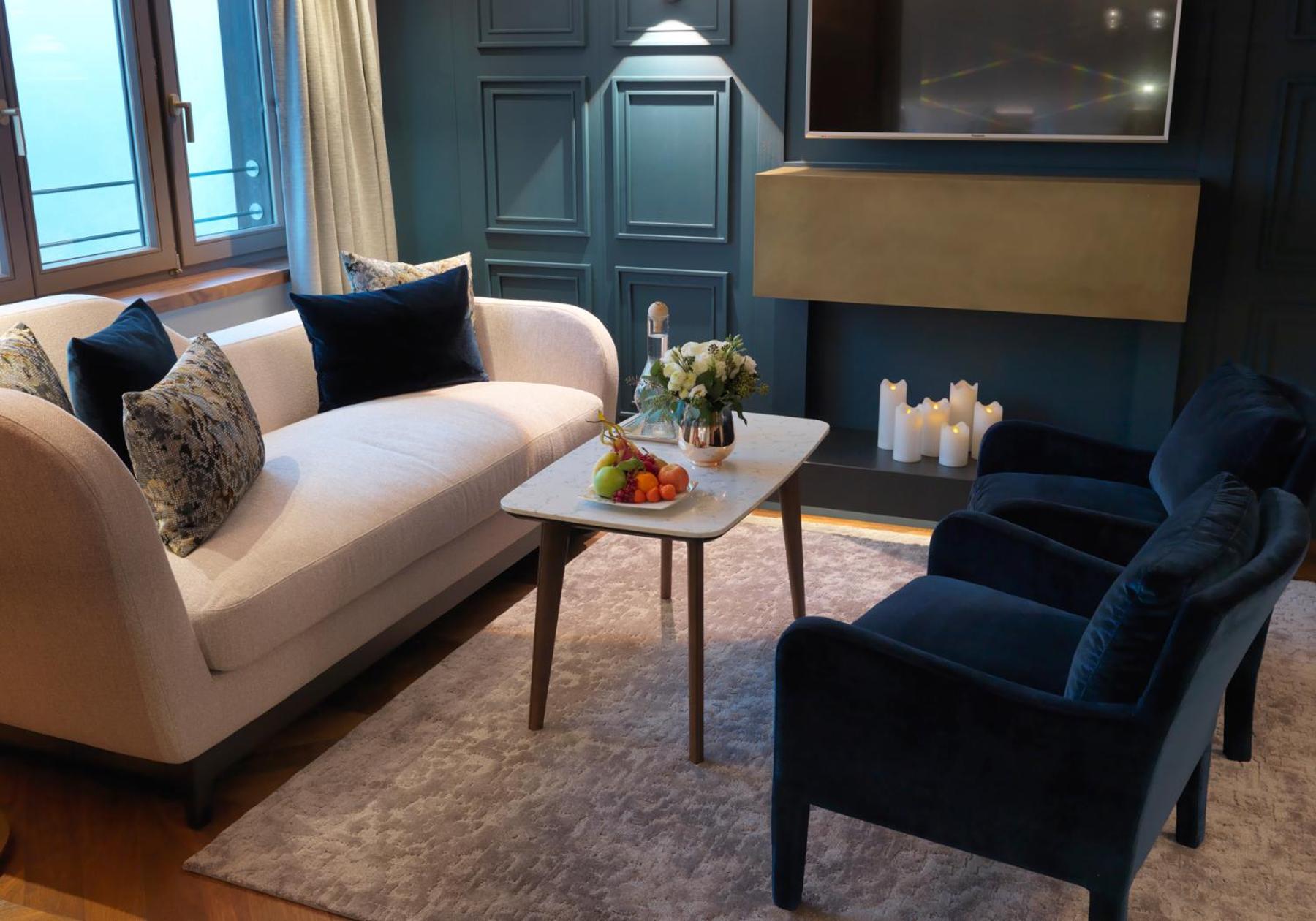 The Zürserhof, a 5-star superior hotel in Zürs, offers elegantly furnished rooms with breathtaking mountain views. Each room is equipped with modern amenities for a comfortable stay, including a flat-screen TV, minibar, and plush bathrobes.