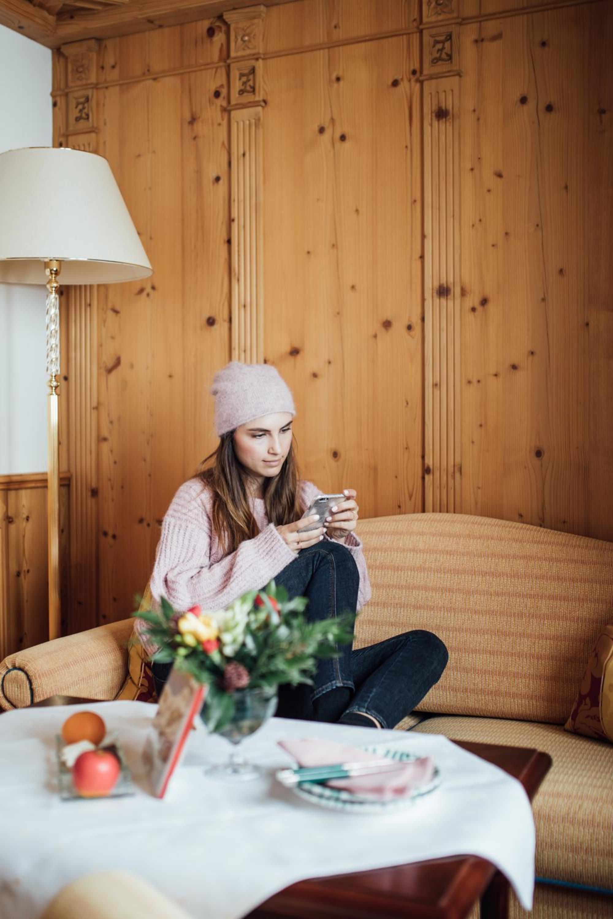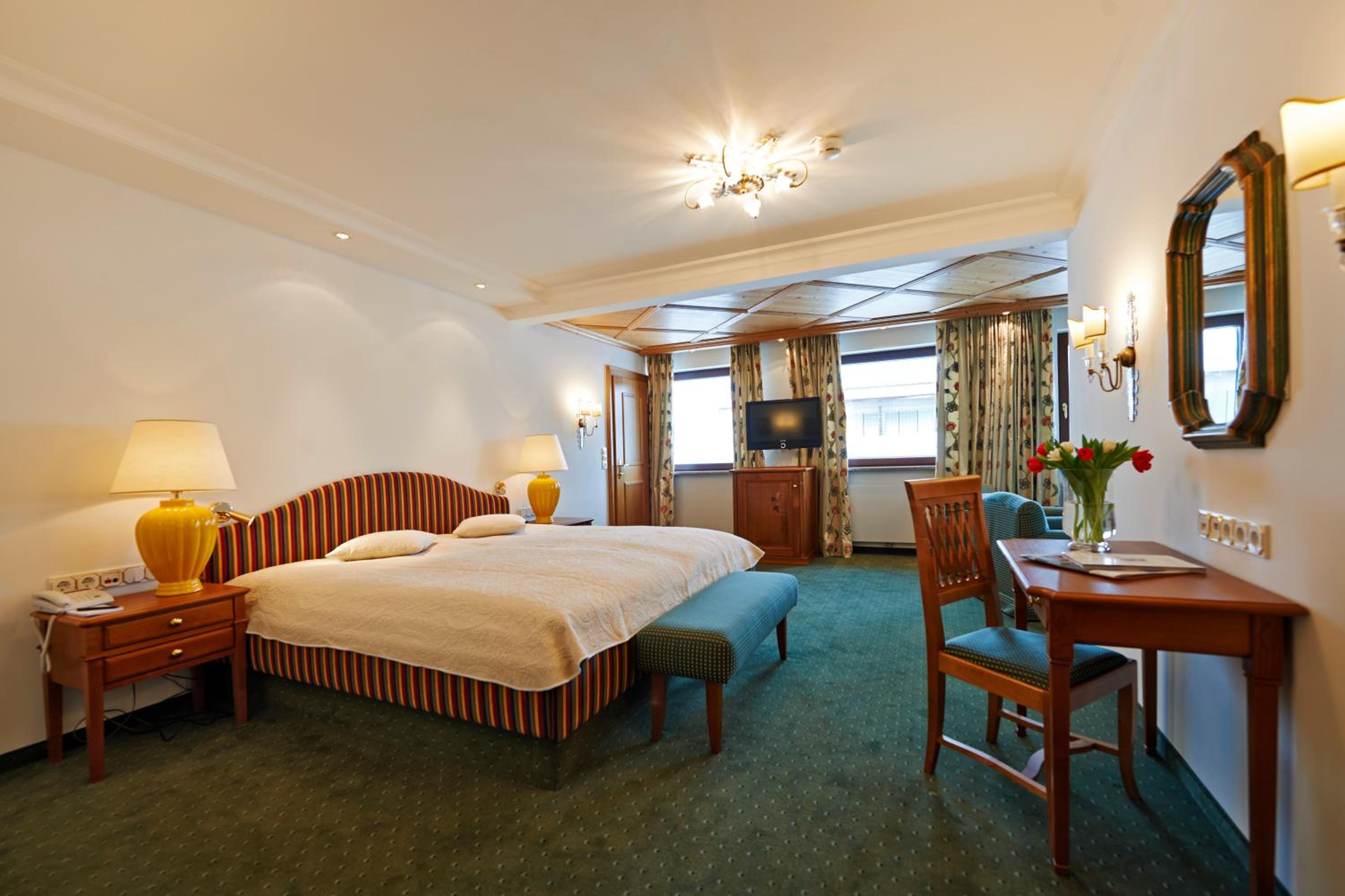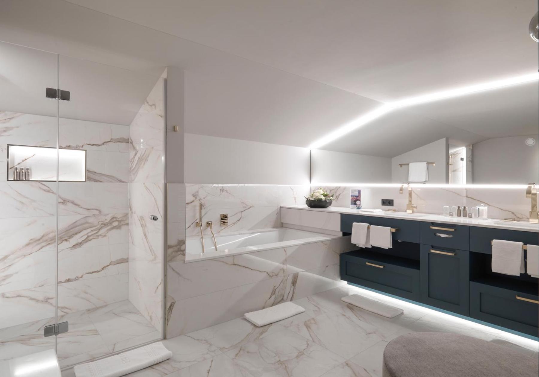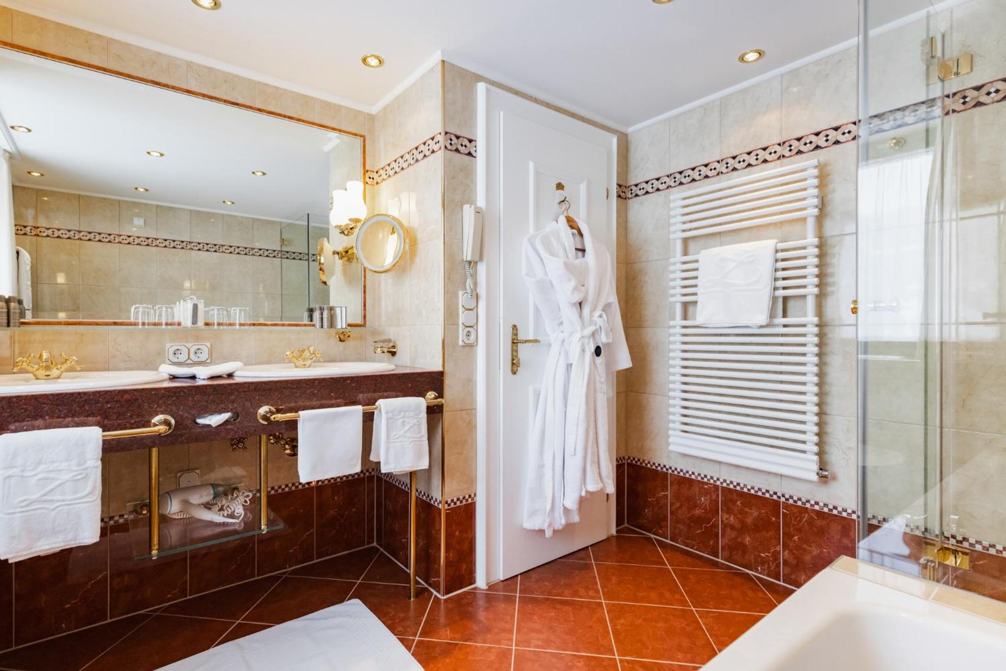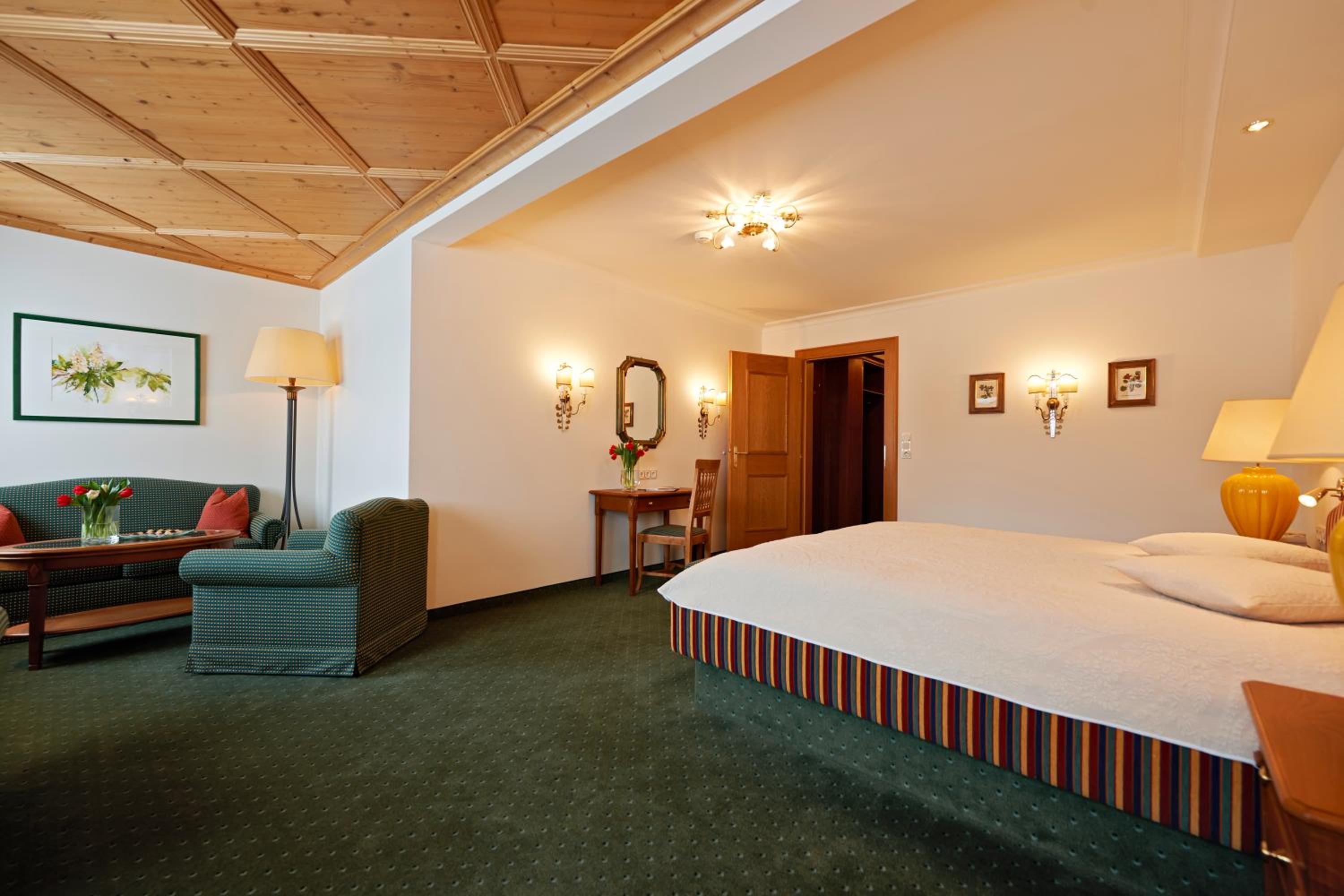 The Zürserhof, a 5-star superior hotel in Zürs, offers elegantly furnished rooms with breathtaking mountain views. Each room is equipped with modern amenities for a comfortable stay, including a flat-screen TV, minibar, and plush bathrobes.