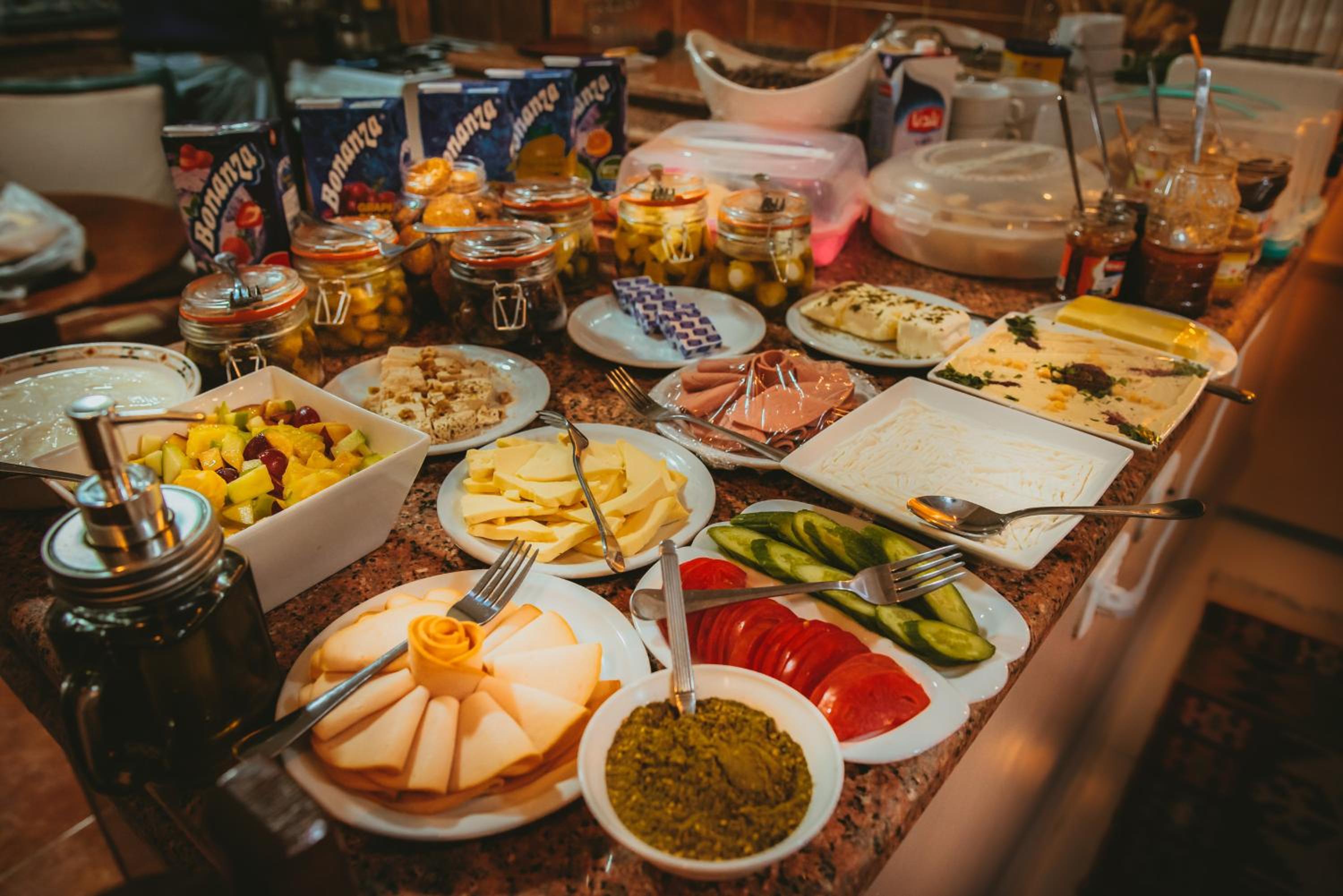 Lokáció kiváló volt, a tulajdonos ajánlásokat adott, hogyan érdemes menni Petrába. Finom reggelivel kínáltak, teljesen alkalmazkodva hozzánk.