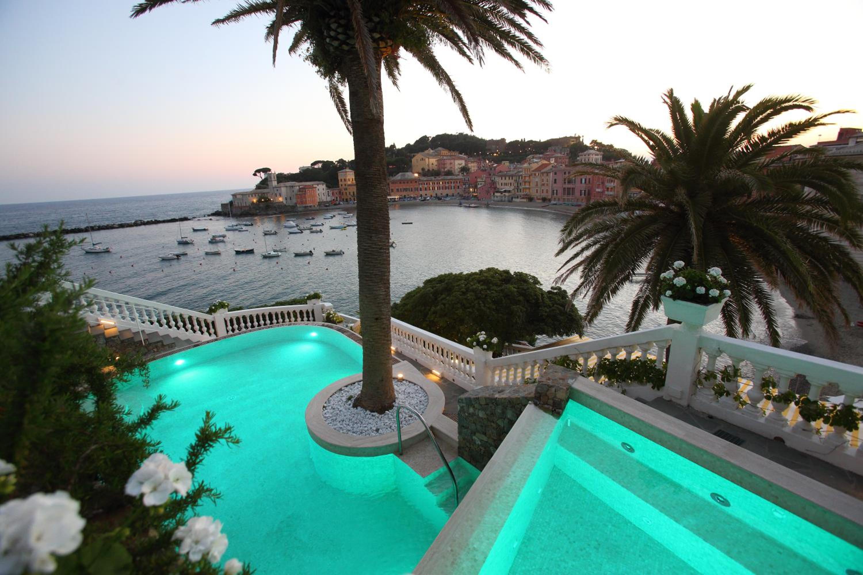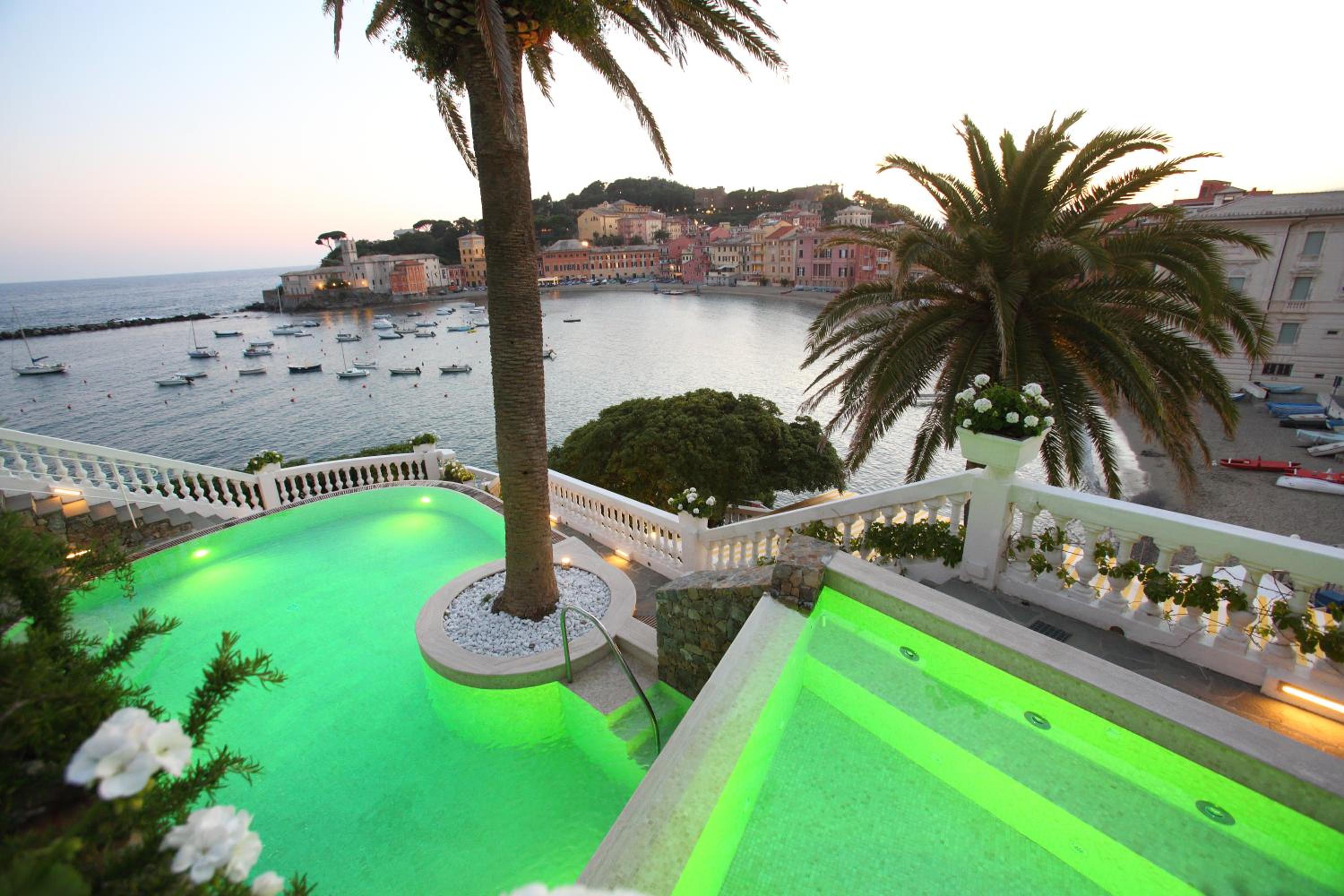 Indulge in the hotel's pools with hydromassage jets and a heated pool, all while taking in breathtaking panoramic views of the Ligurian Riviera. The rooftop sun terrace is the perfect spot to unwind and soak up the sun.