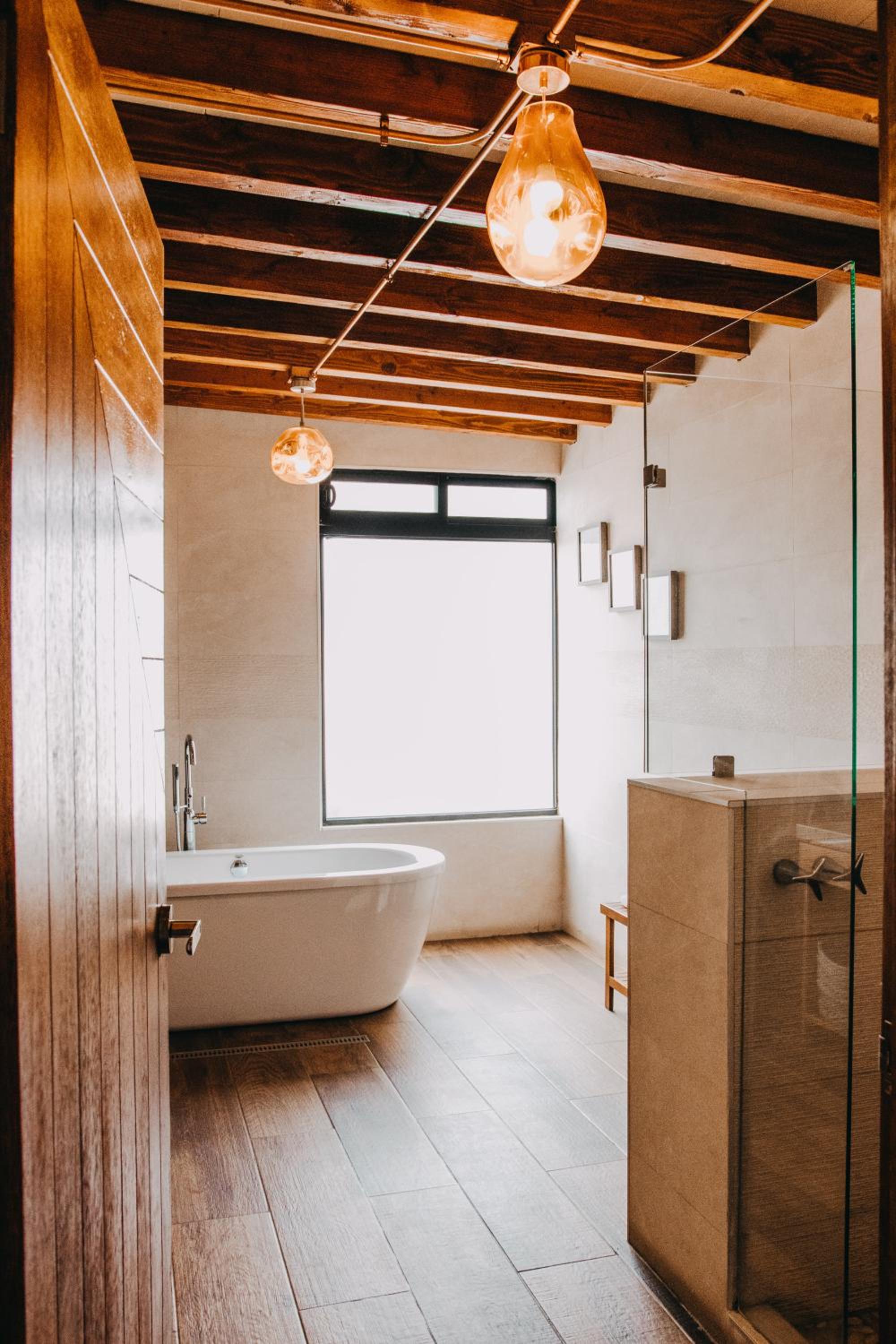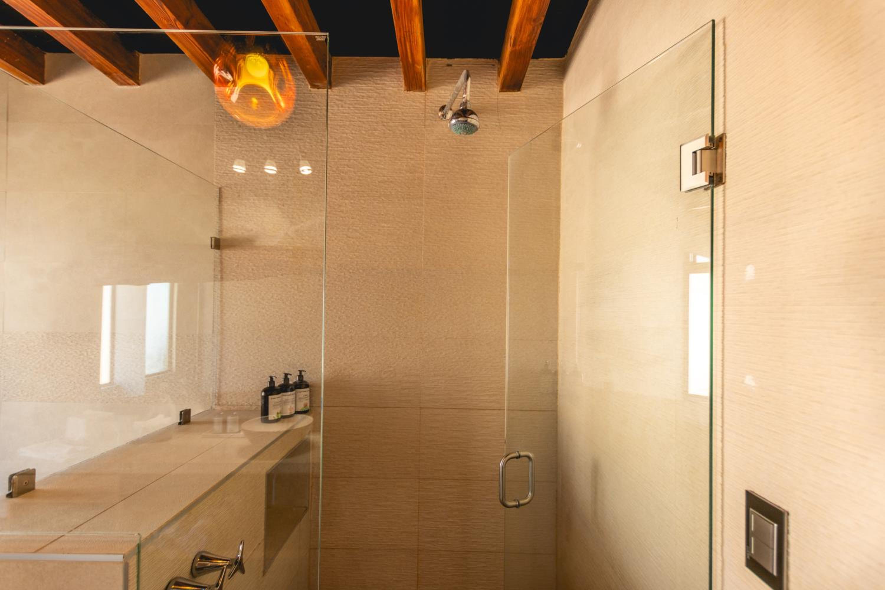 The shower was open (no curtain or door), making it cold to shower. It rained during our visit, so it would have been nice to watch a move, but the room had no TV. Also, I’d expect for lights to be dimmable for a hotel of this caliber.