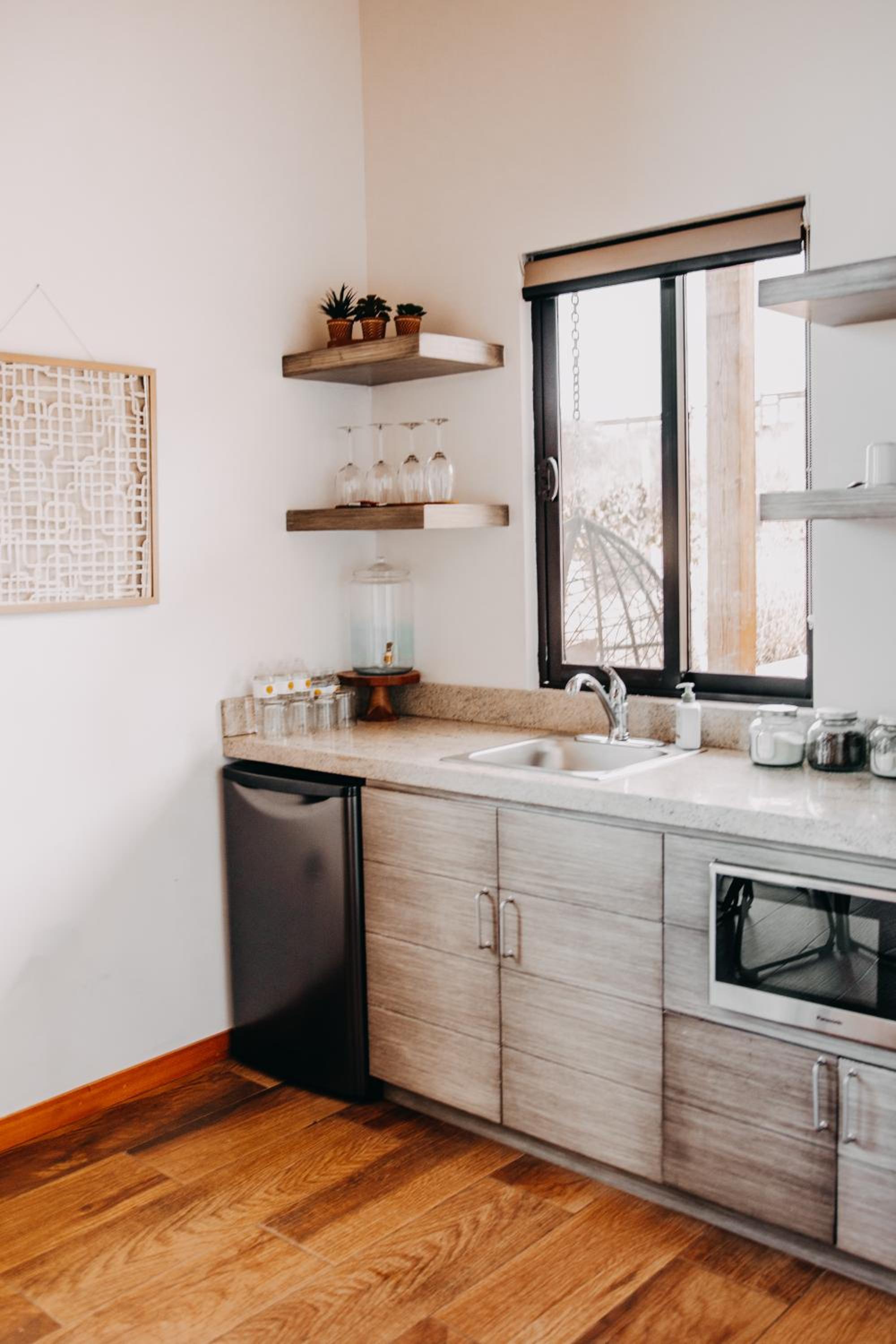When we arrived half of the unit was soaking wet with cleaning supplies which got all over my baby. There was an empty beer bottle sitting on the patio. The water filtration system wasn’t working. The water in the kitchen sink didn’t get hot and no dishwasher so had to wash dishes in the bathroom. The “kitchen” was completely bare-no forks or knives, no freezer, None of the equipment in the gym was usable. There is no tv and just a projector, which was nice but complicated to set up (not to mention the projector requires wifi to work). Nothing was explained in the welcome book, which just contains spa treatments and tour bookings. The door made a couple loud beeps every time we opened it (even from the inside), which was really inconvenient with a sleeping baby.