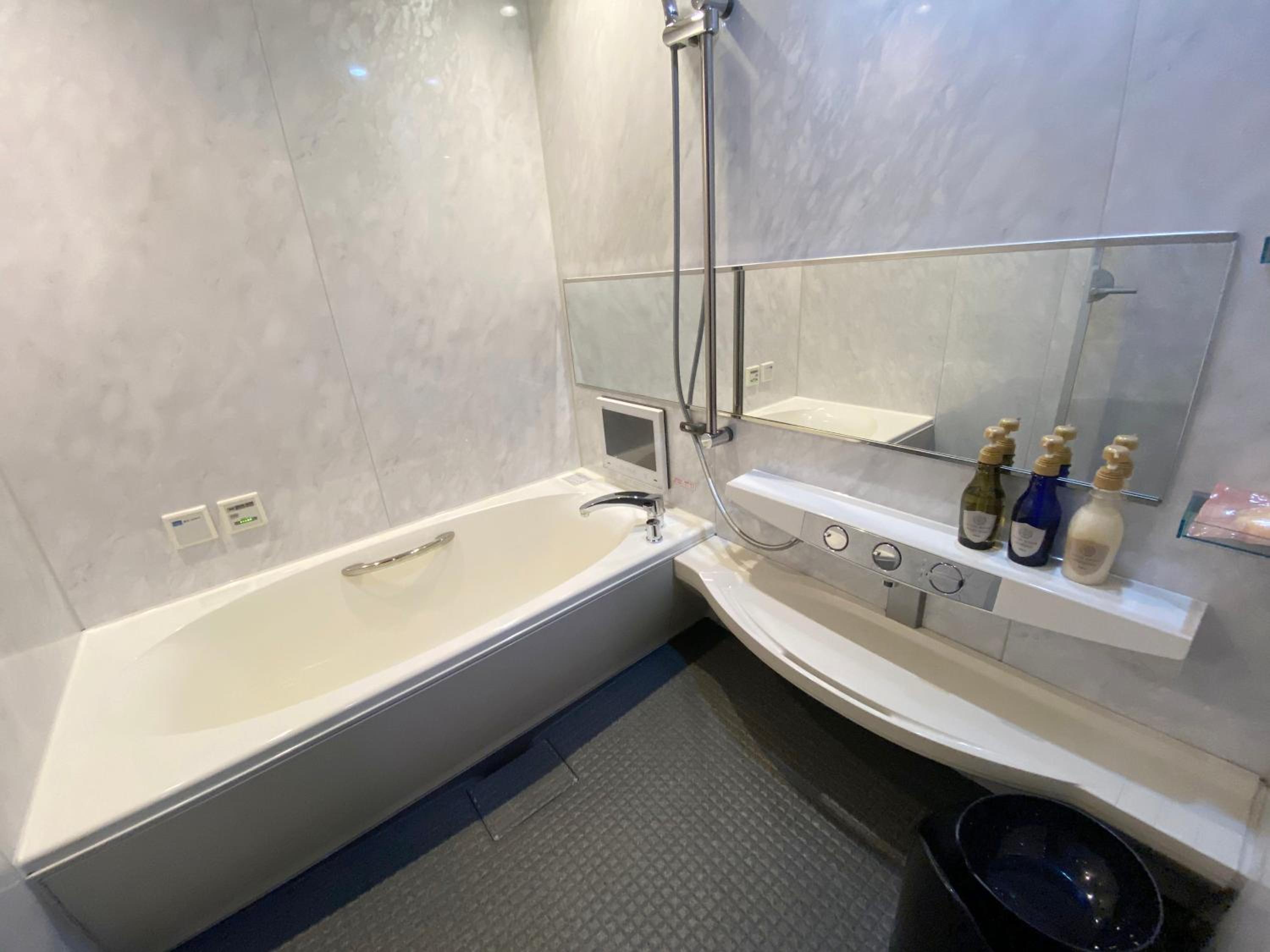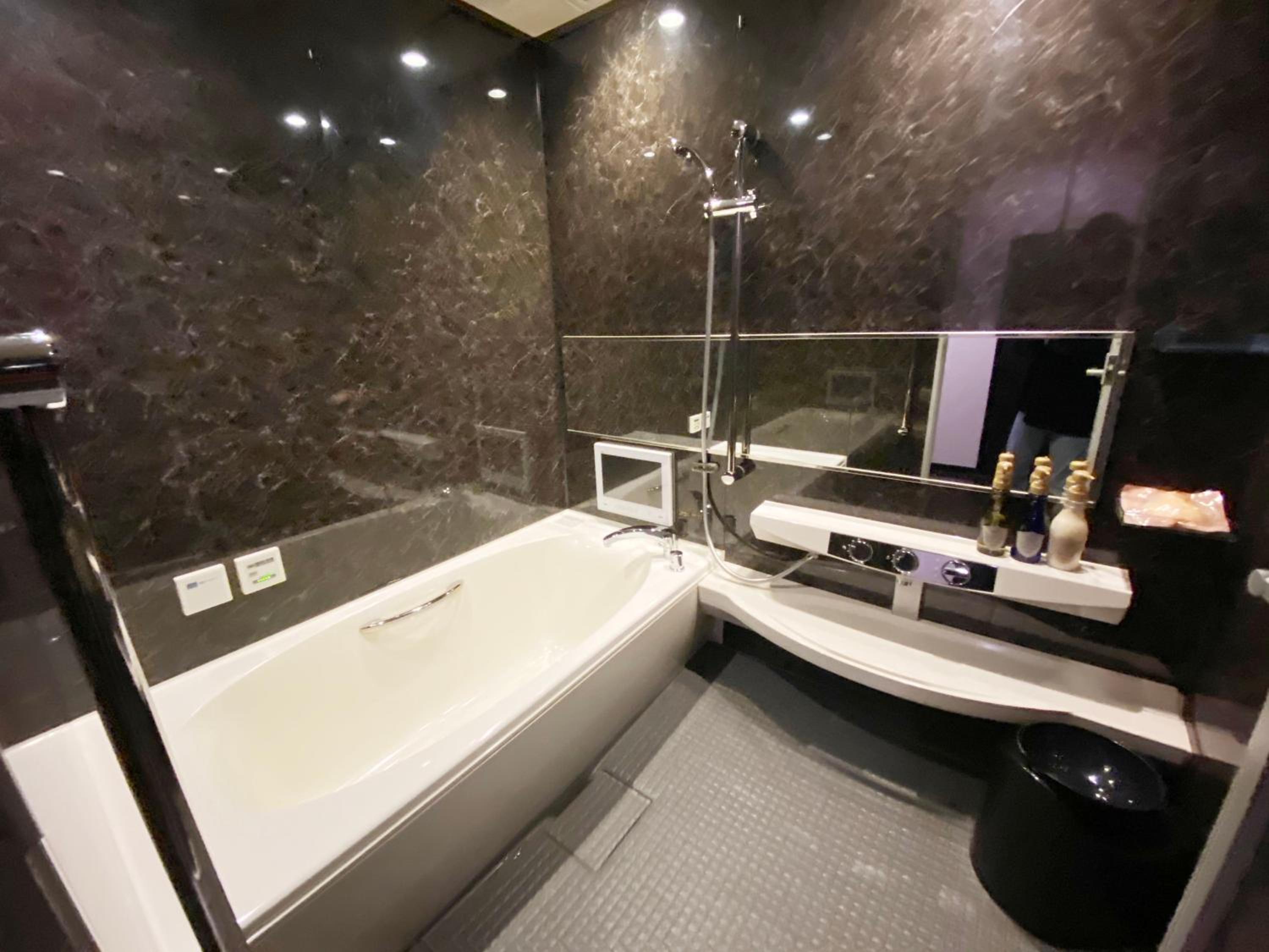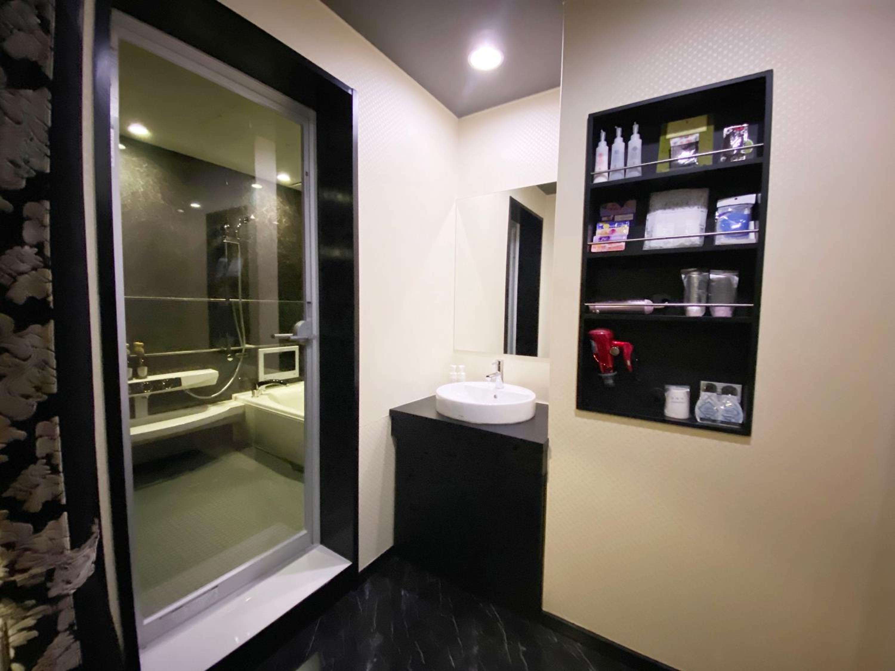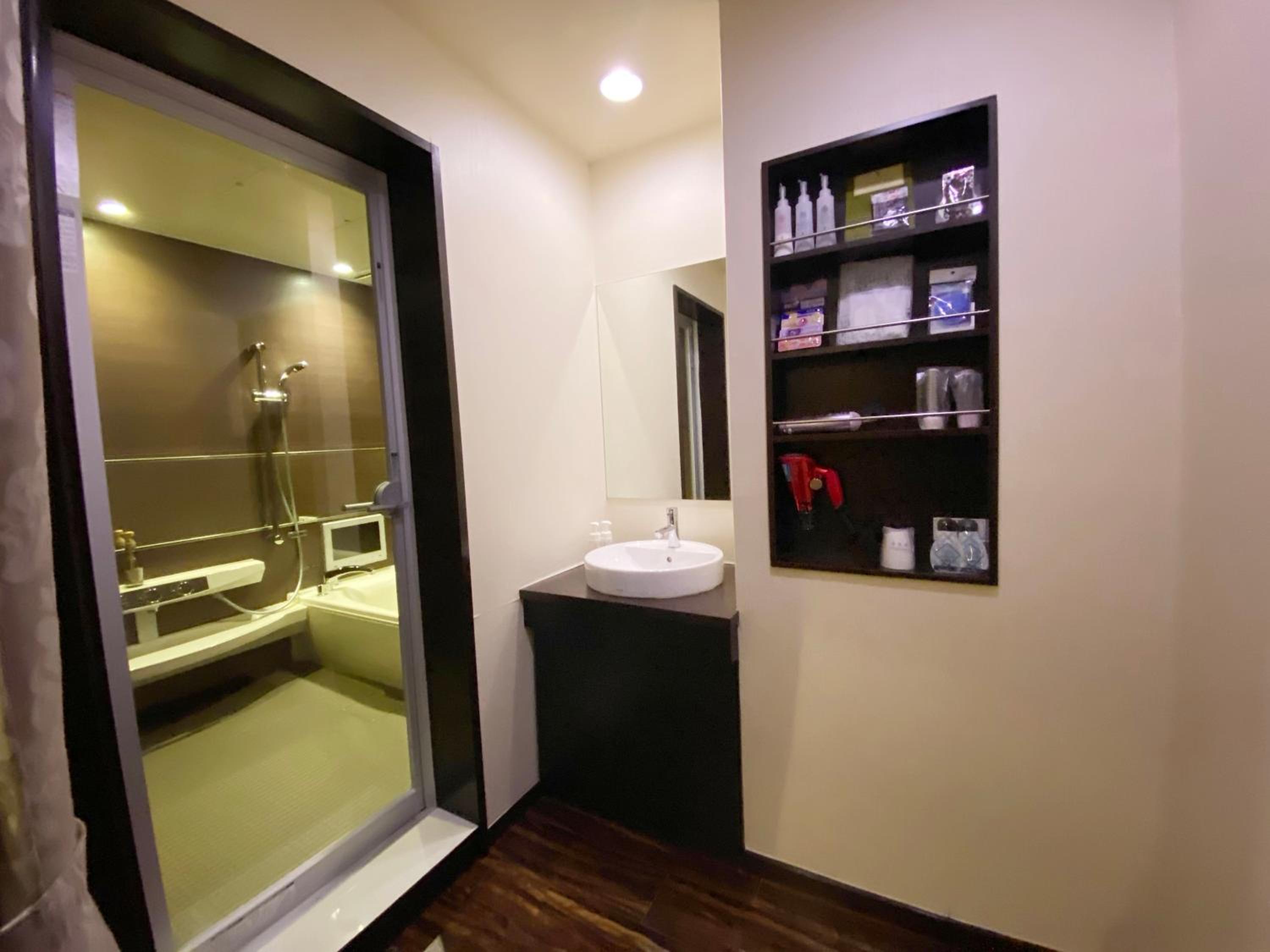 Please read the reviews. This is a love hotel with elicit items in the room. There is an unsafe security system that locks you into the room. This is not disclosed in the Booking.com description. We chose not to stay and requested a refund (3 times without a response) from Booking.com.