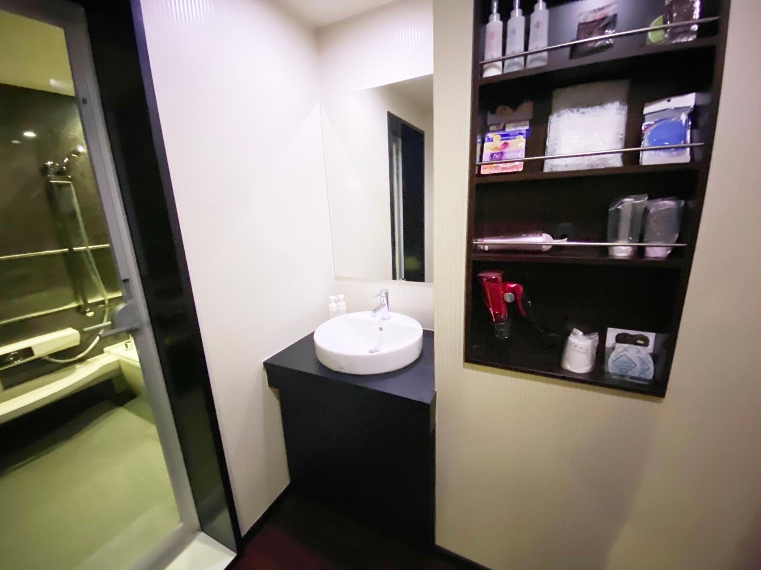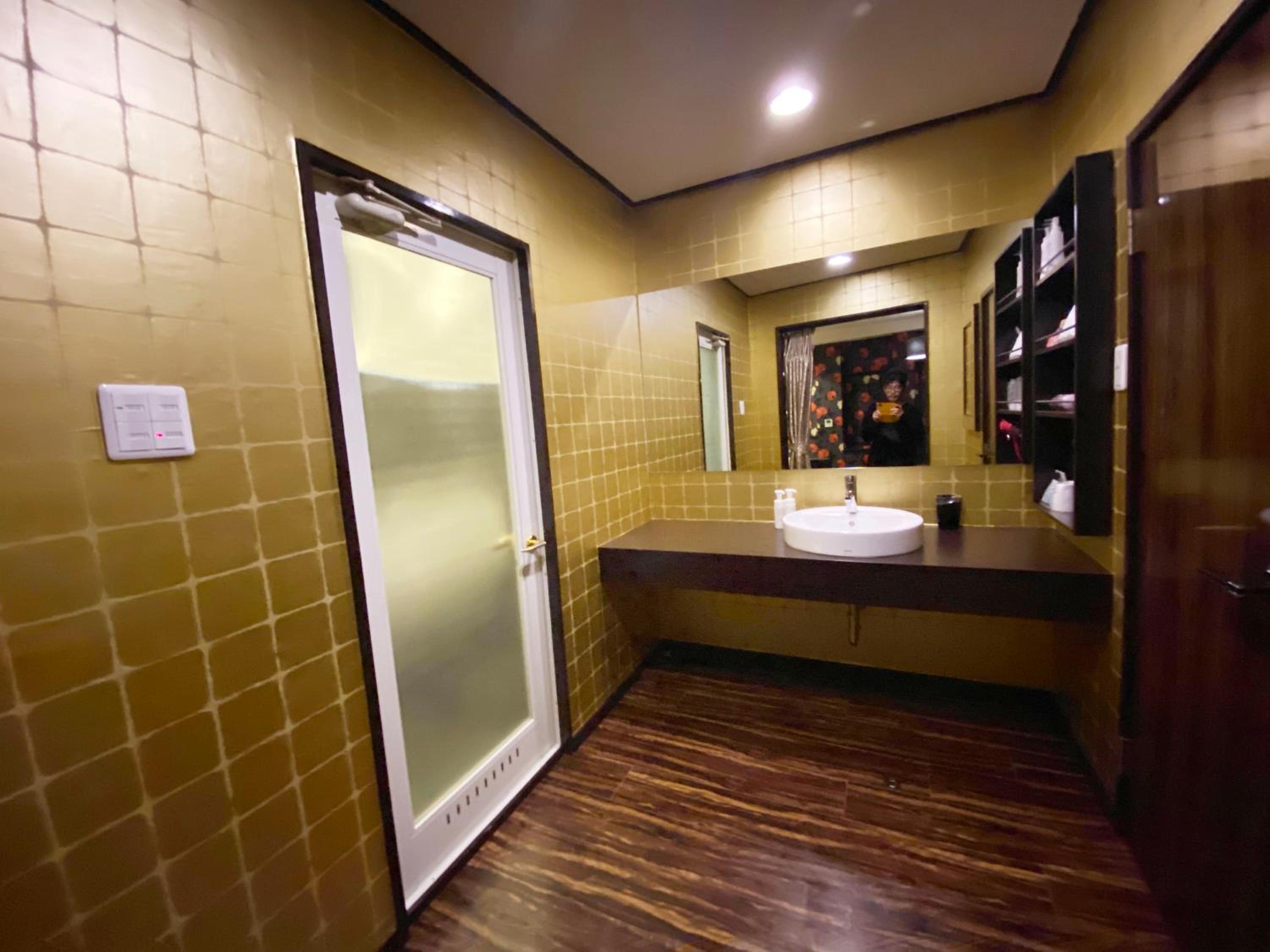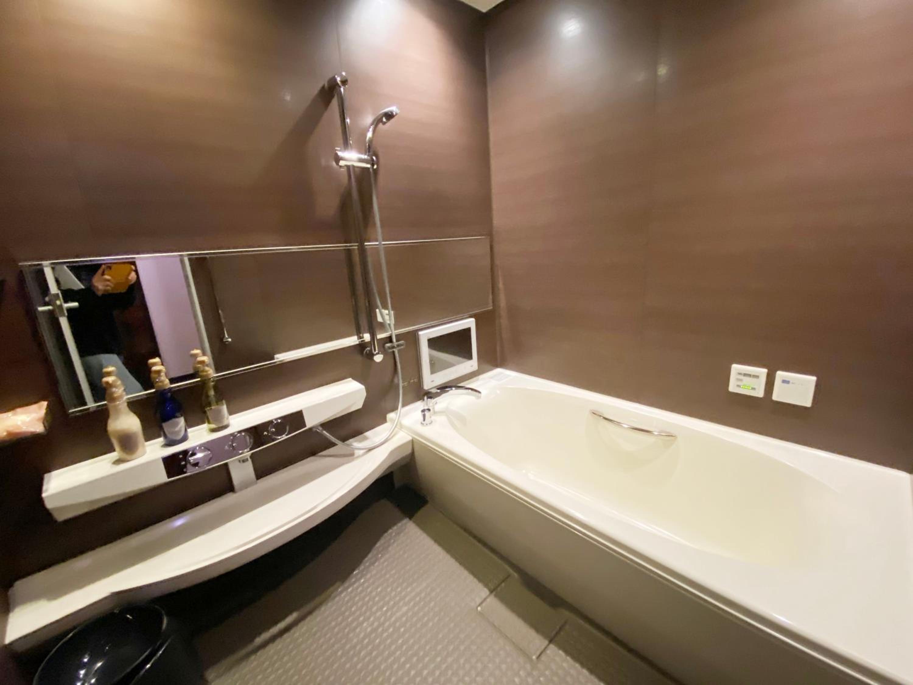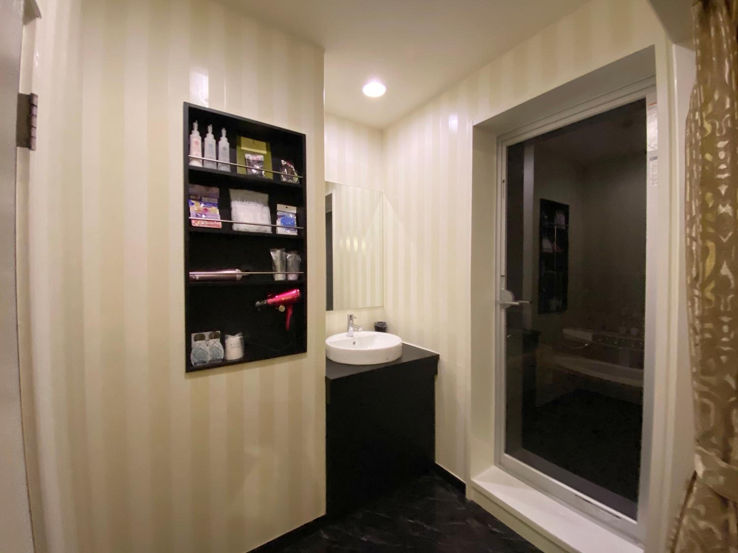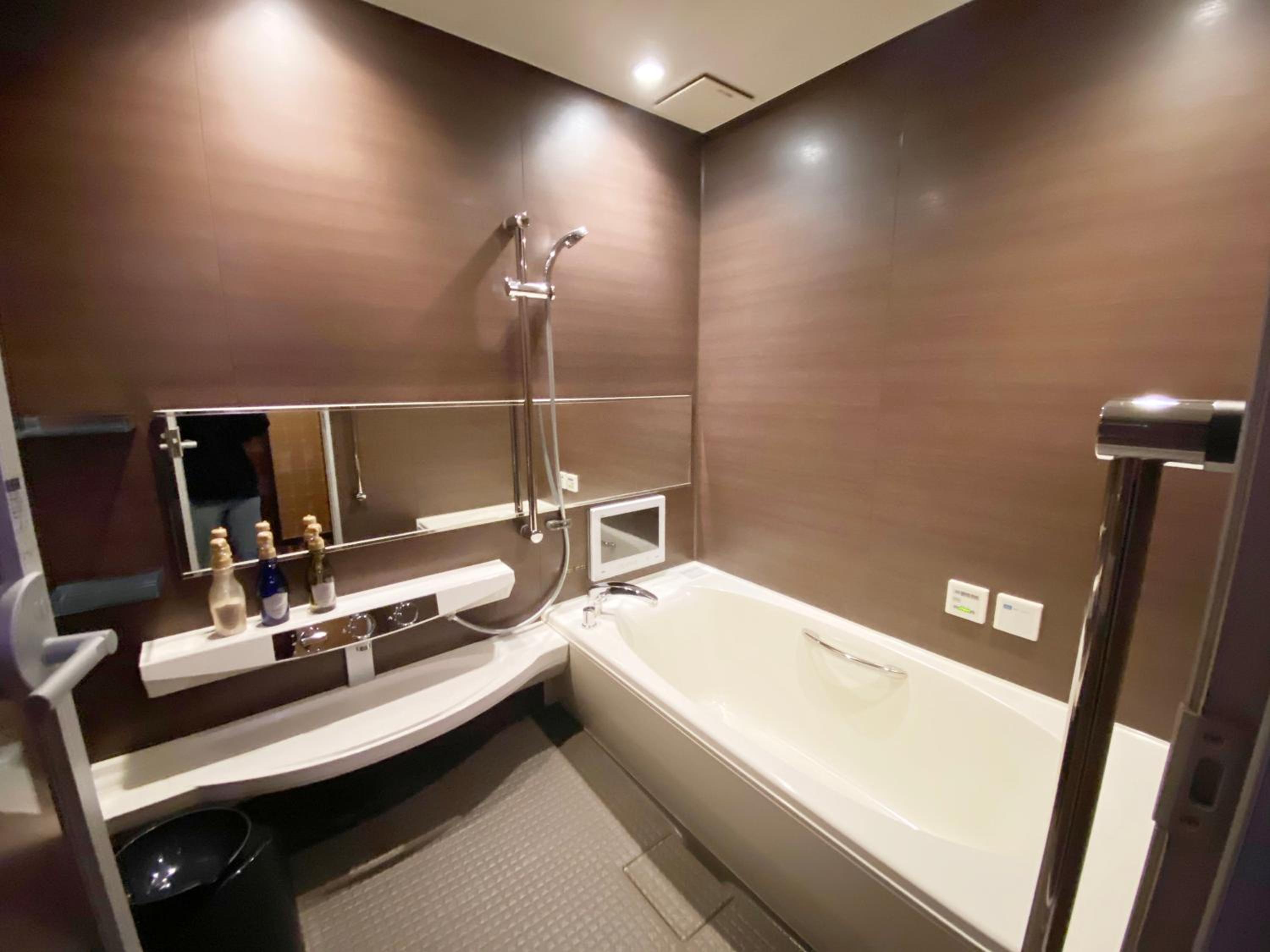 Please read the reviews. This is a love hotel with elicit items in the room. There is an unsafe security system that locks you into the room. This is not disclosed in the Booking.com description. We chose not to stay and requested a refund (3 times without a response) from Booking.com.