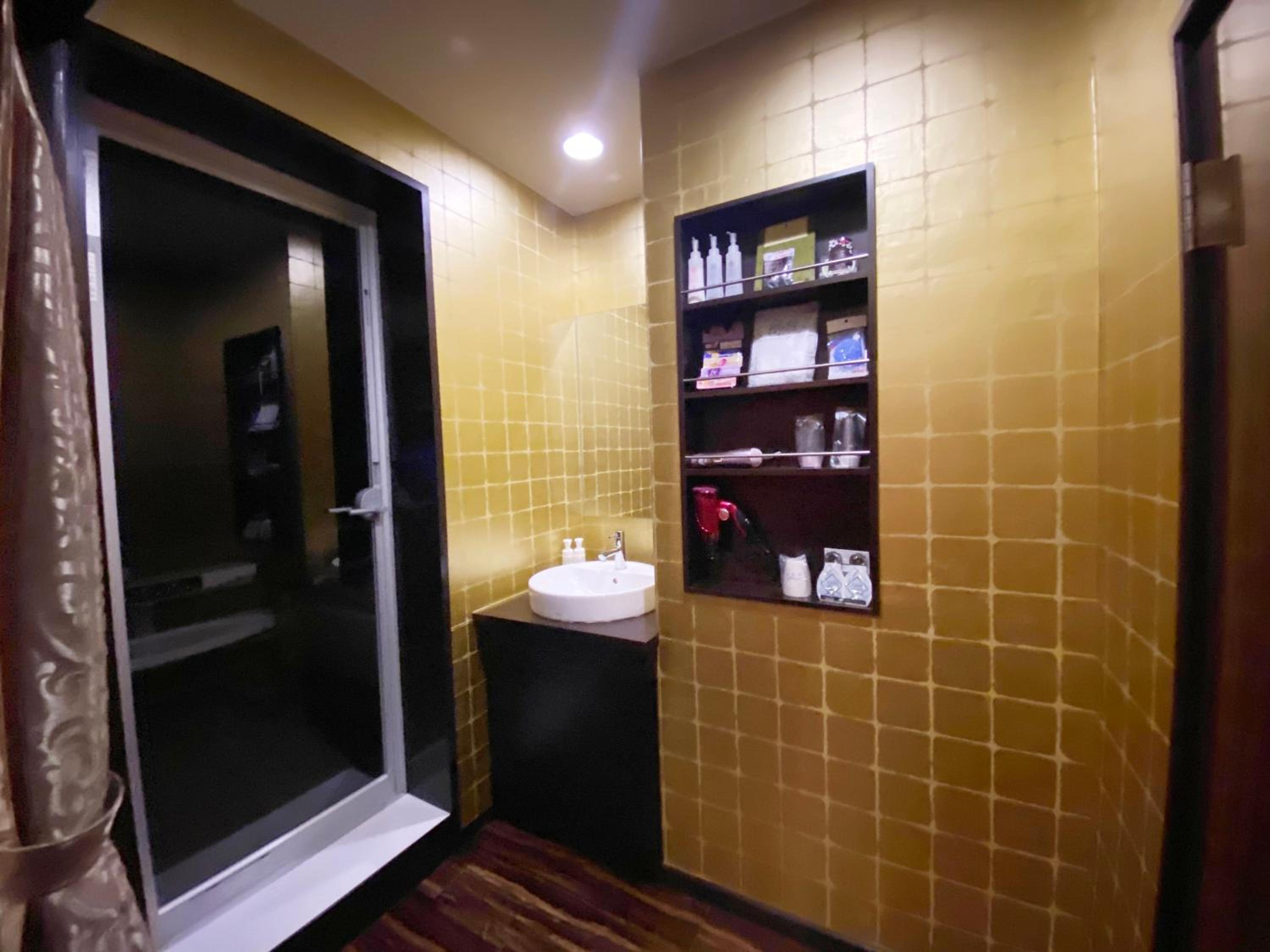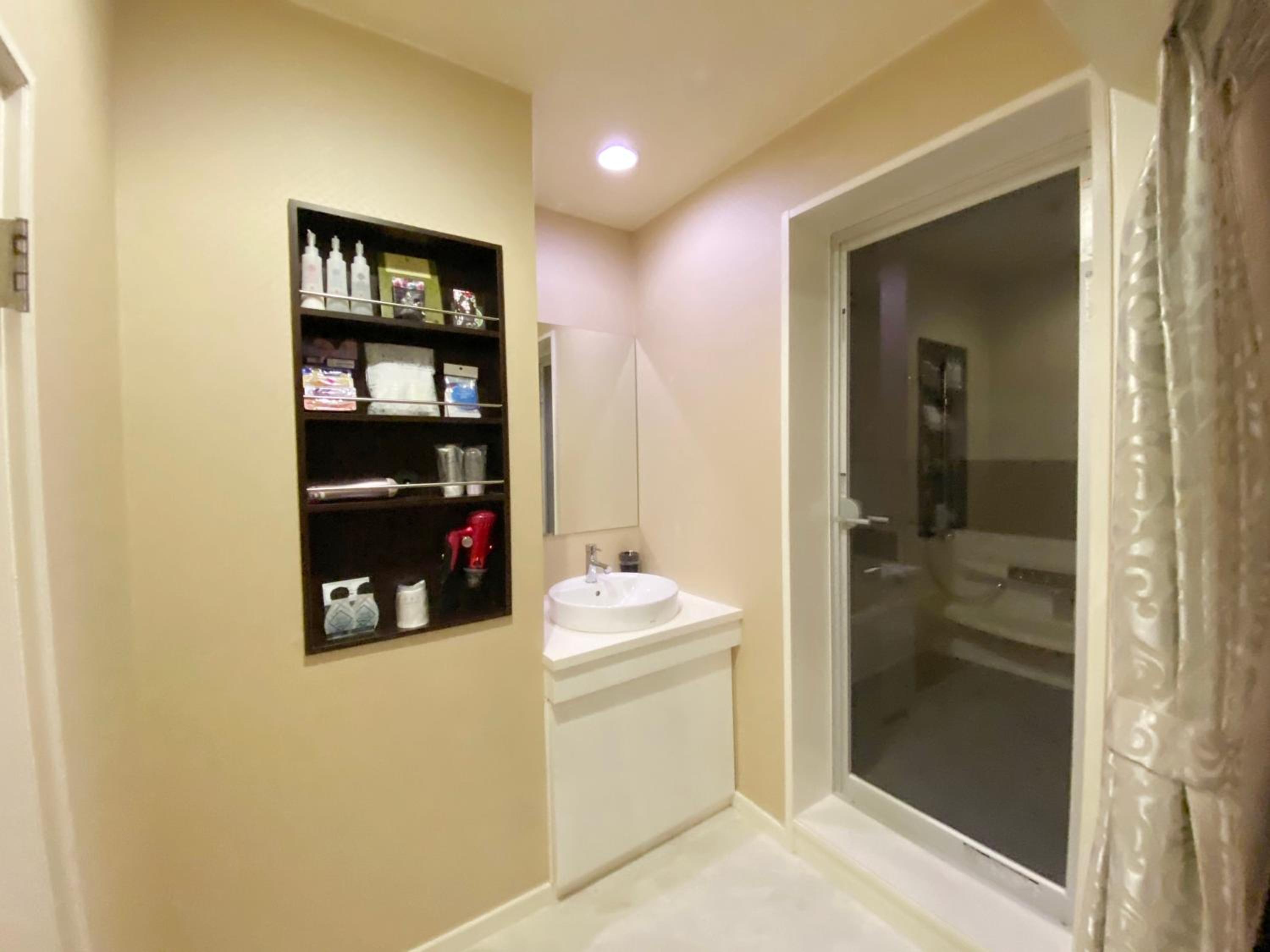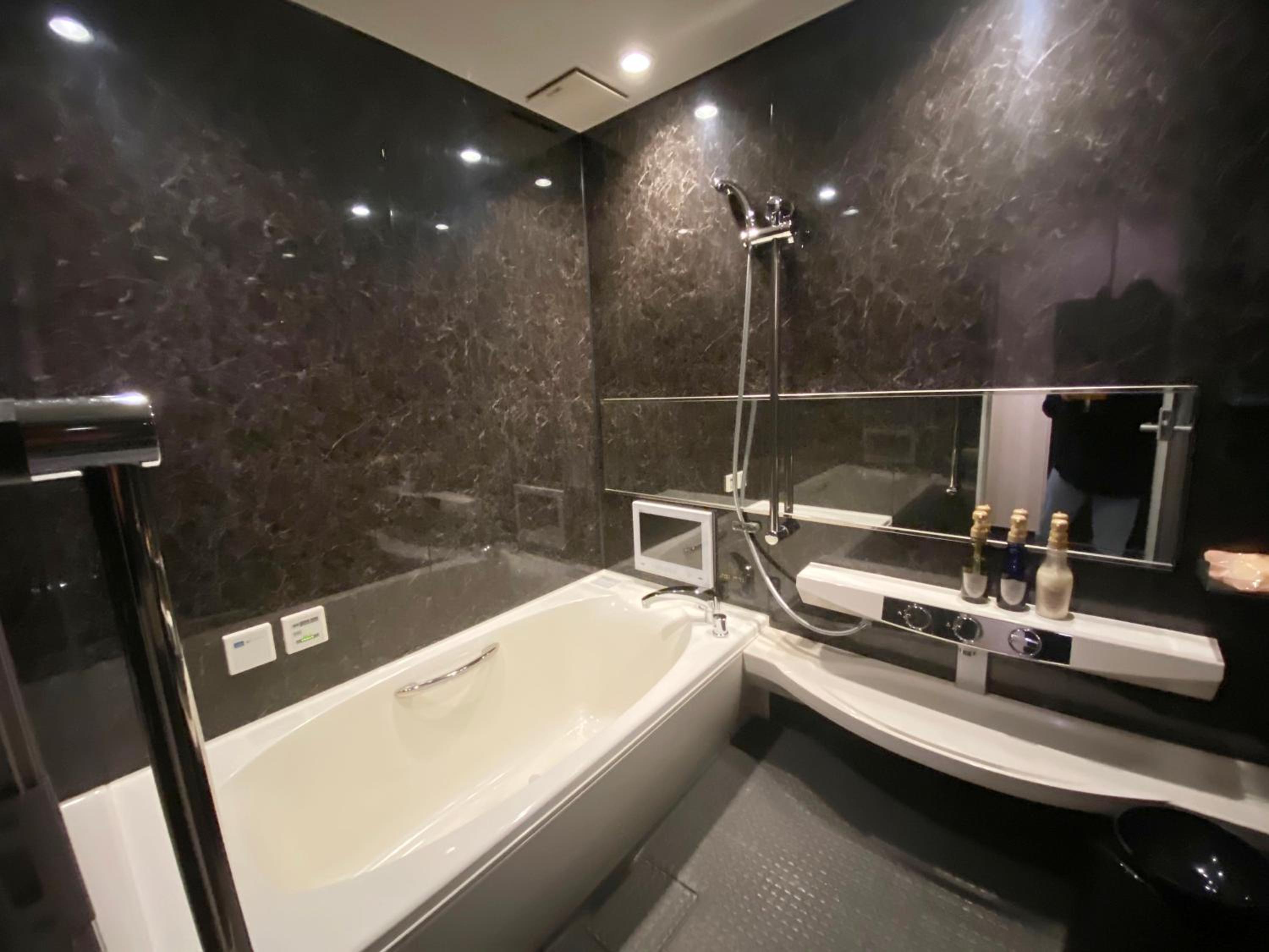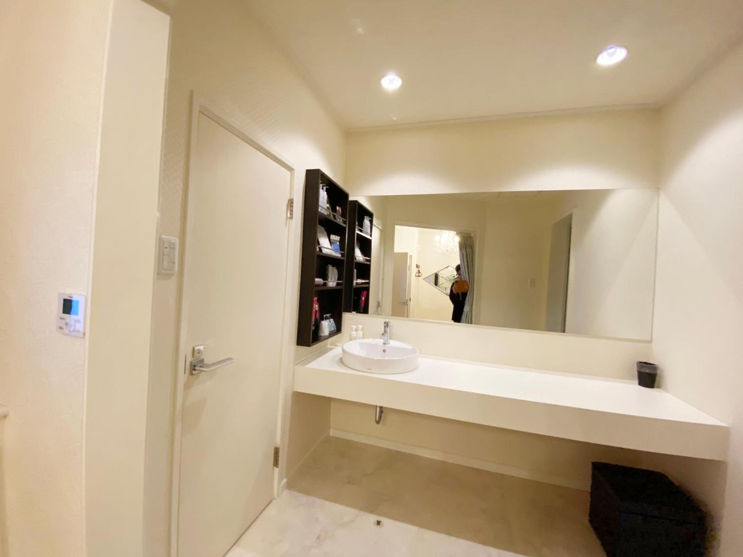 Please read the reviews. This is a love hotel with elicit items in the room. There is an unsafe security system that locks you into the room. This is not disclosed in the Booking.com description. We chose not to stay and requested a refund (3 times without a response) from Booking.com.