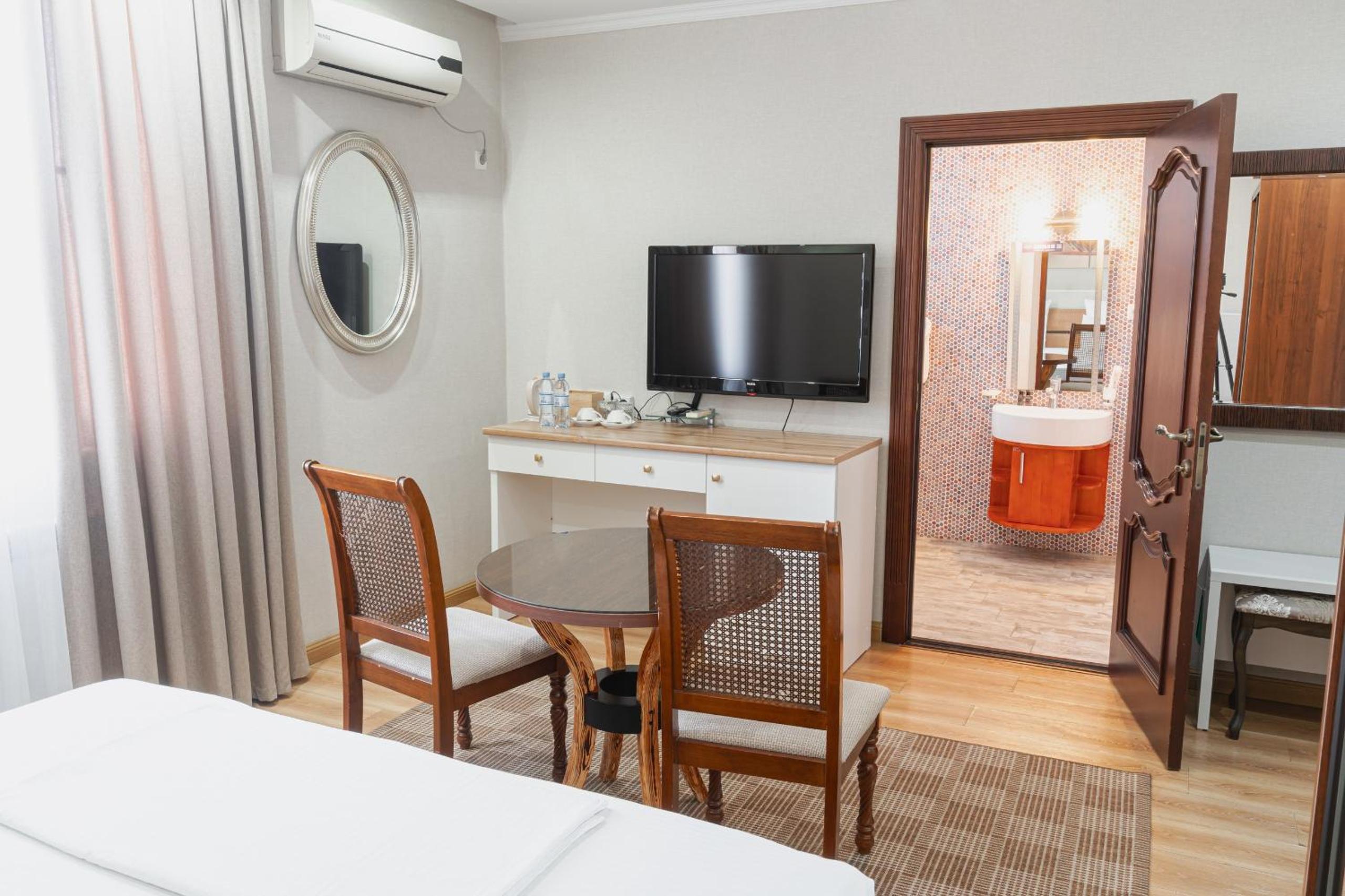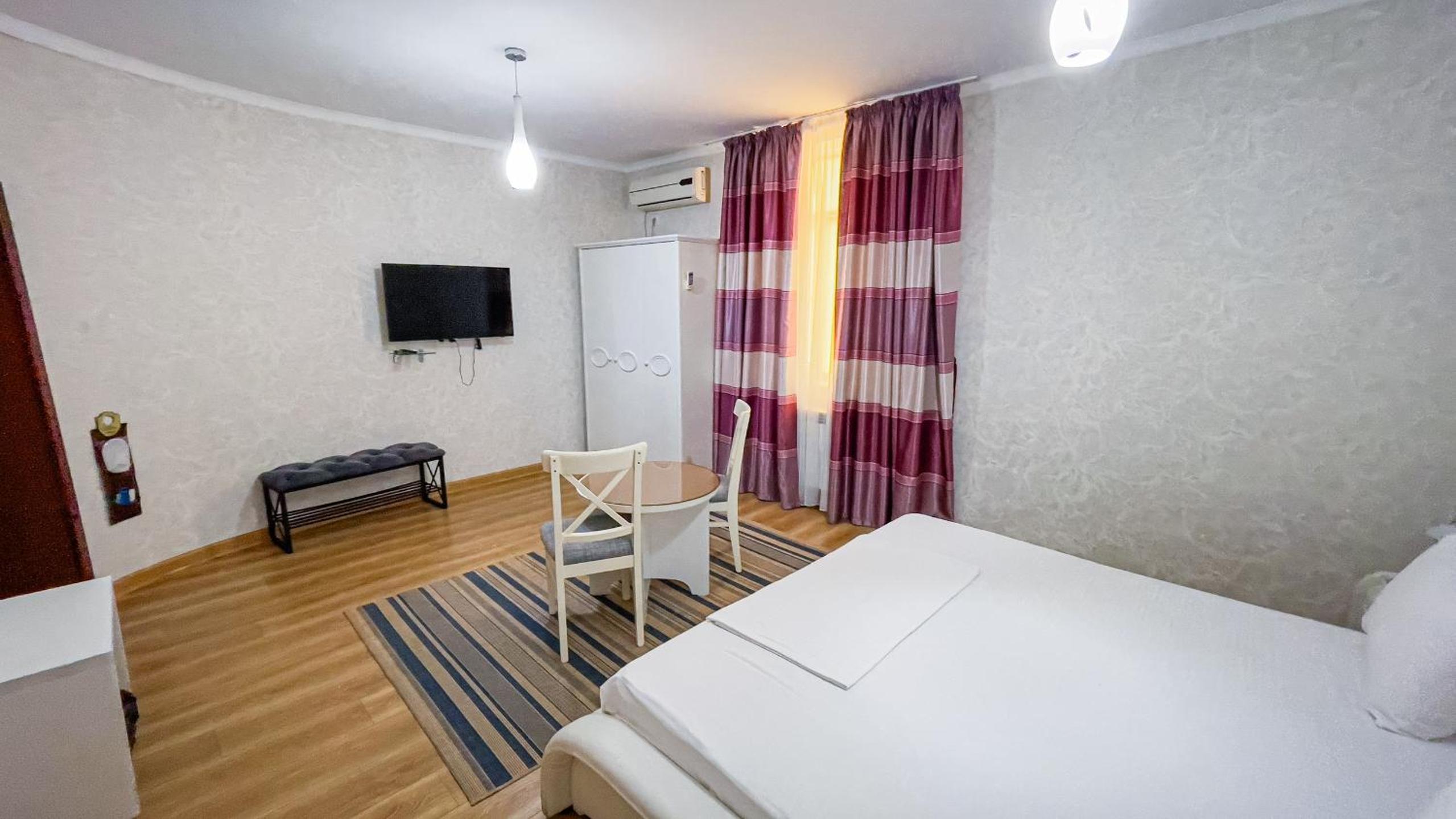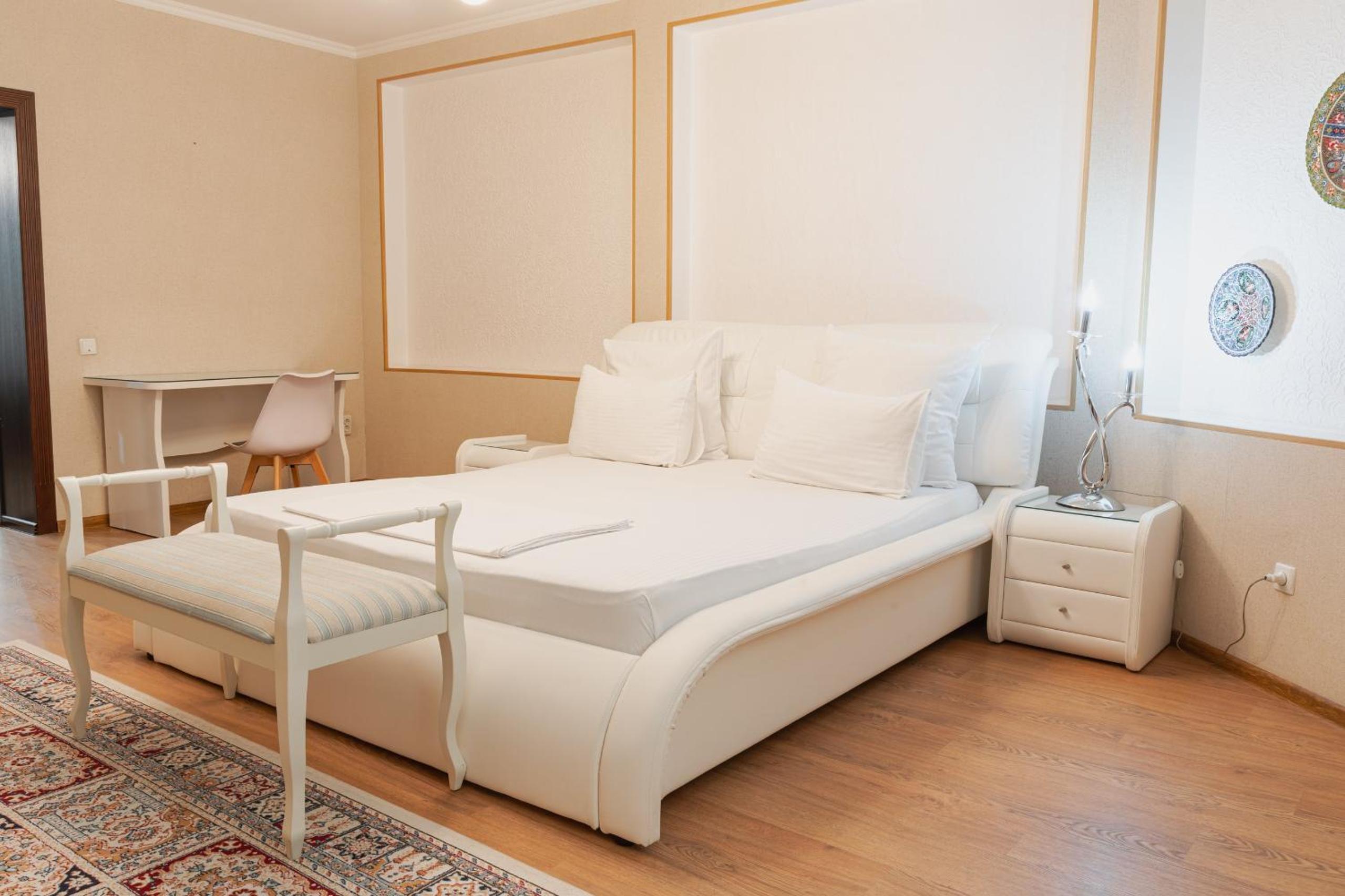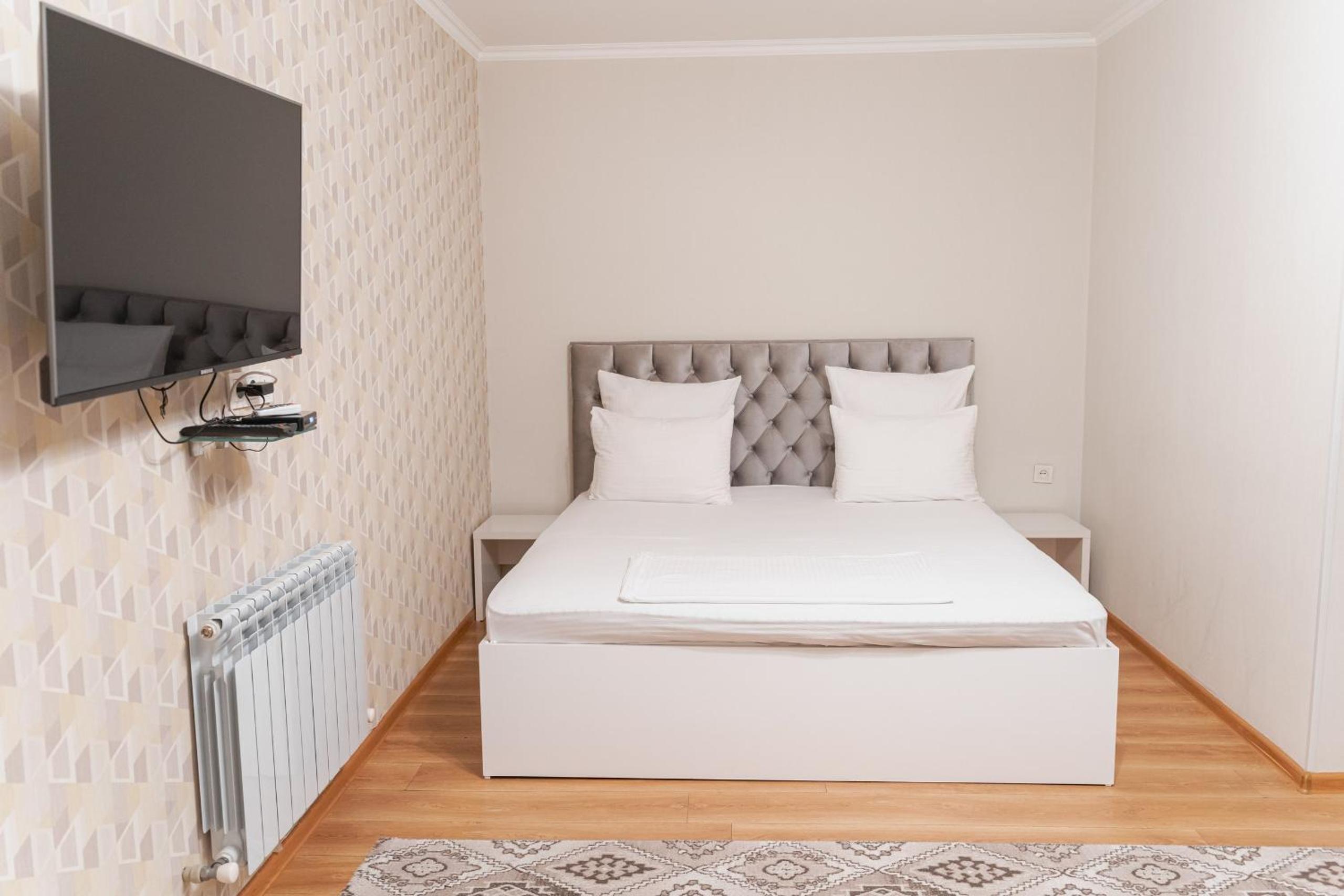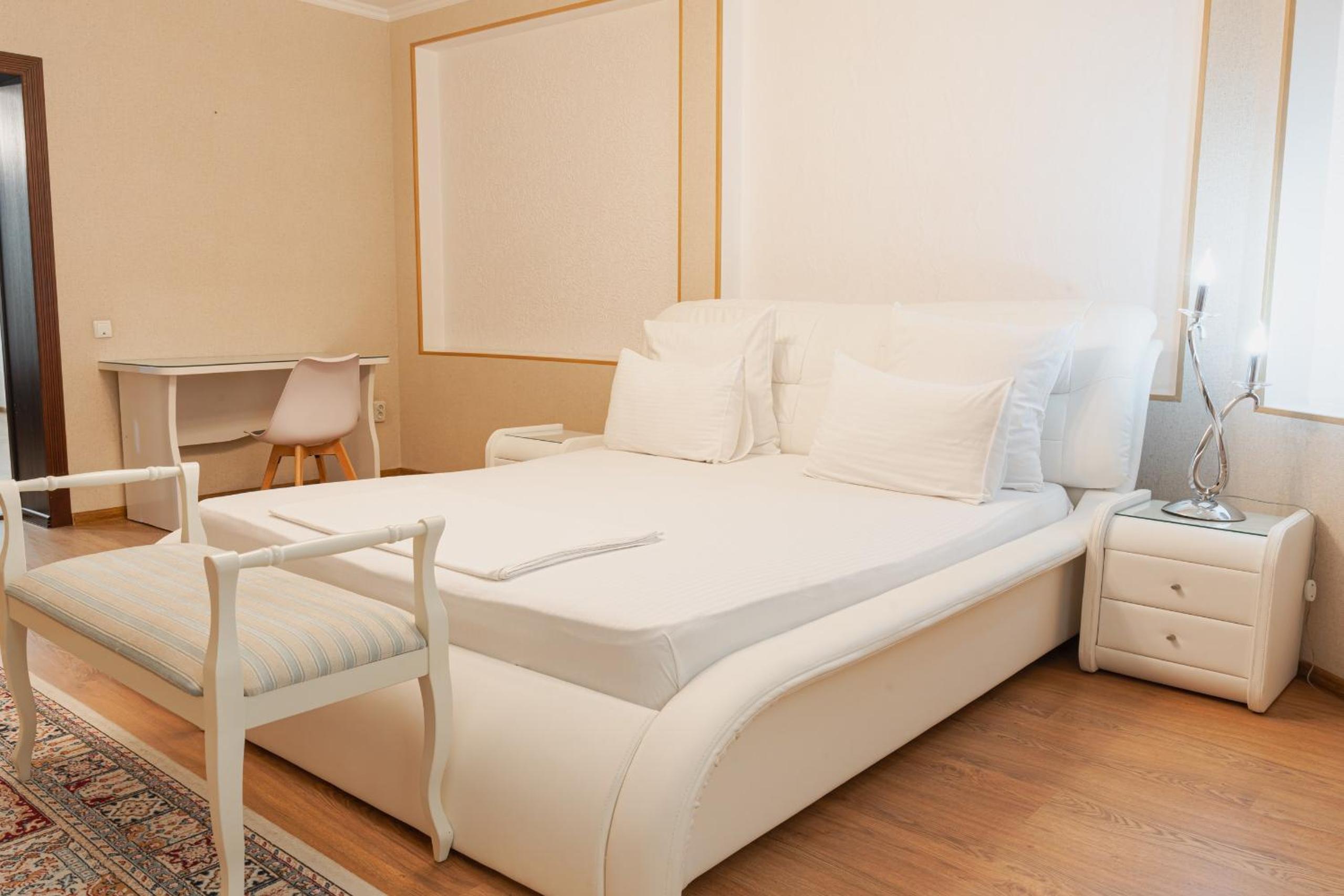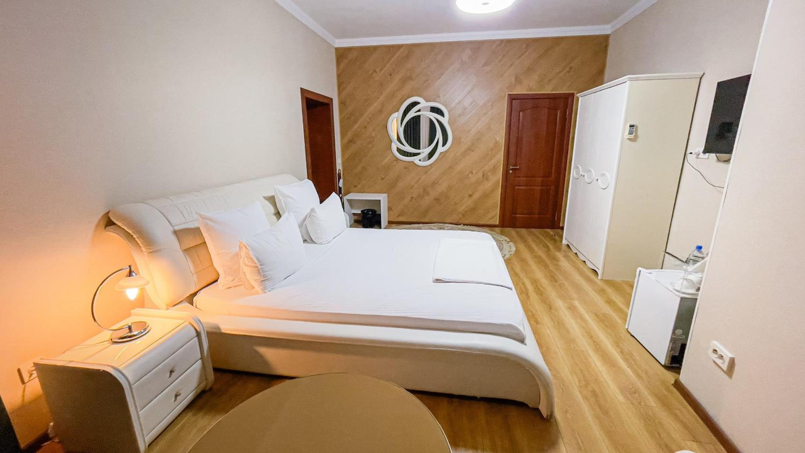 Altair Hotel, located just a 5-minute walk from Shymkent's central square, offers modern rooms with free WiFi access. The vibrant rooms and suites feature flat-screen TVs, minibars, and comfortable bedding options, including round beds in some rooms. The en suite bathrooms are equipped with complimentary toiletries, slippers, and hairdryers for guests' convenience.