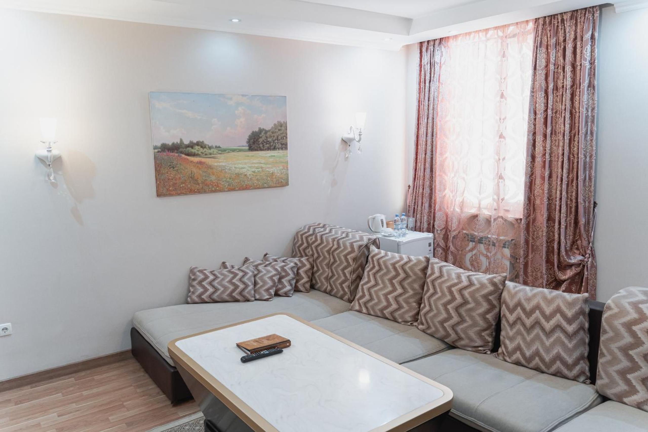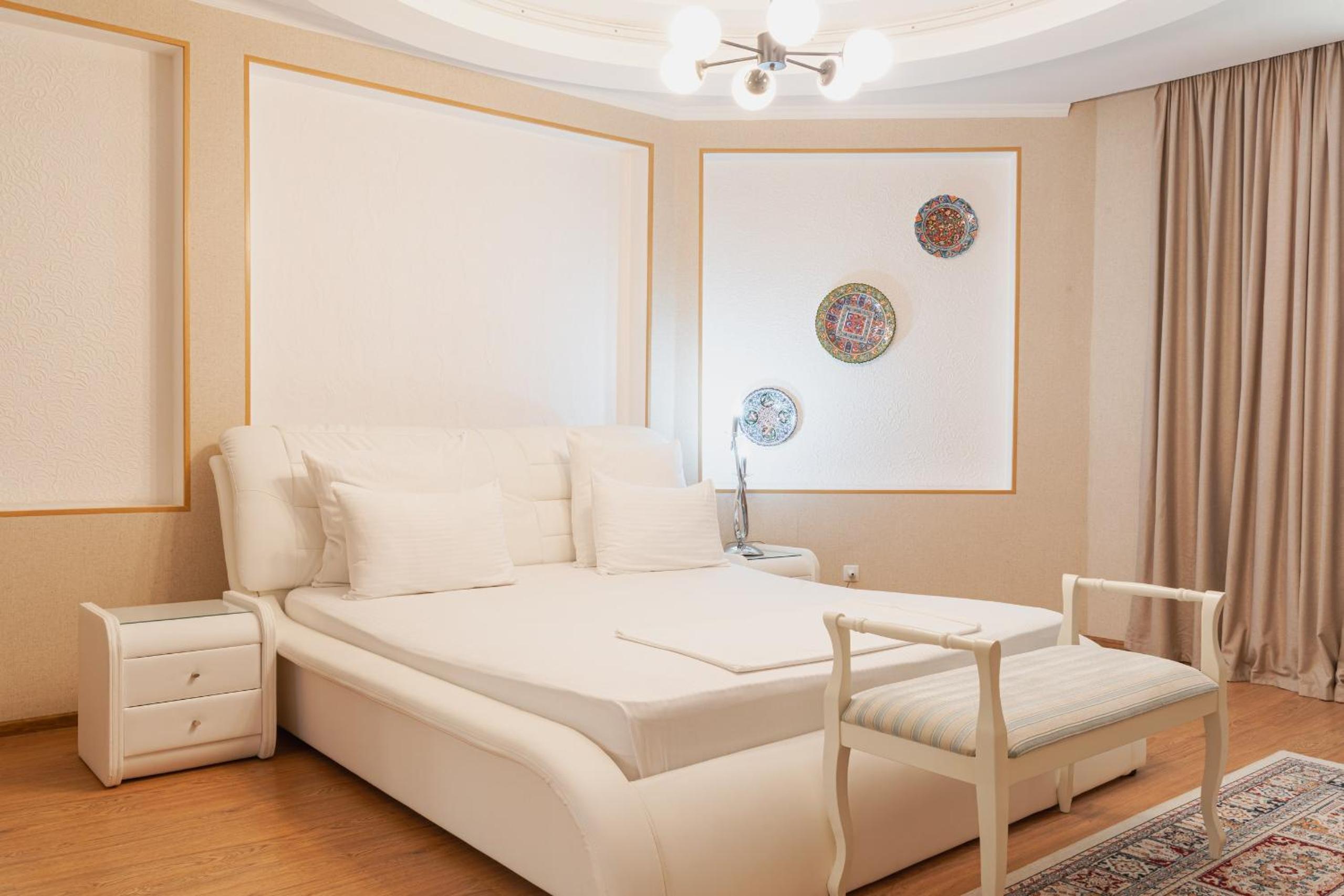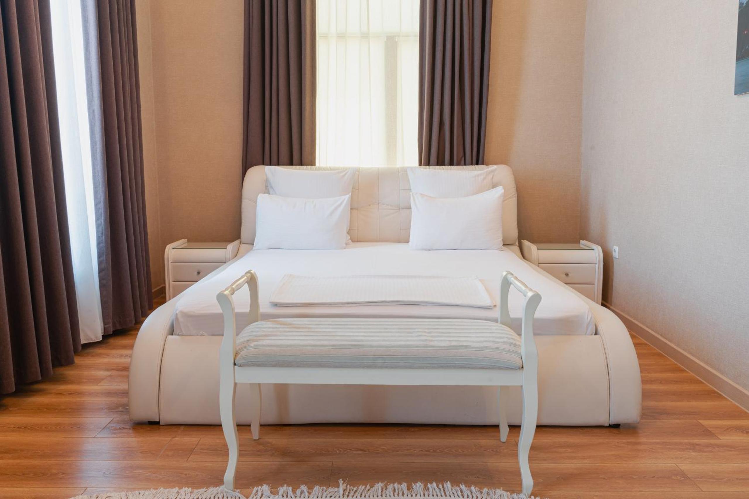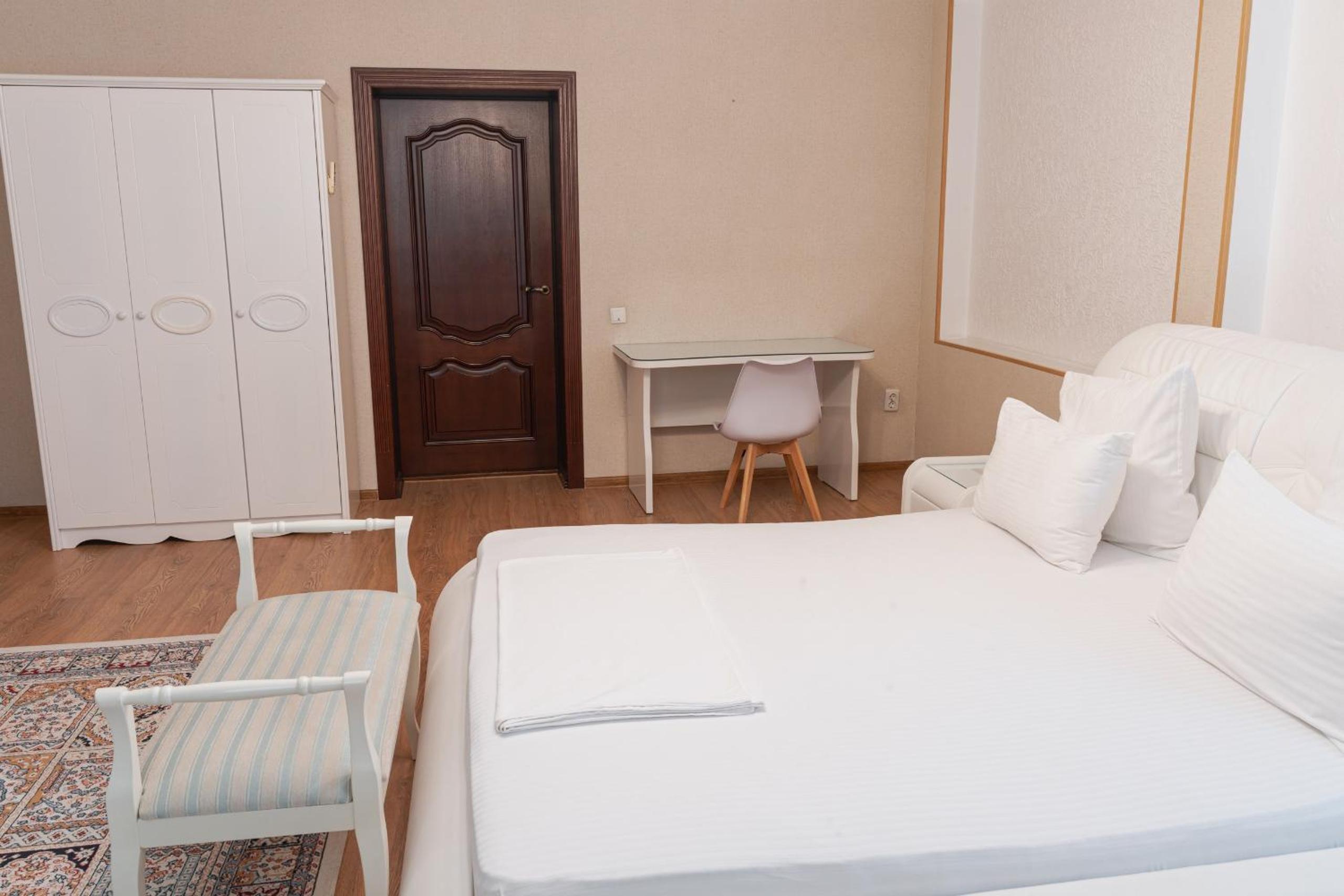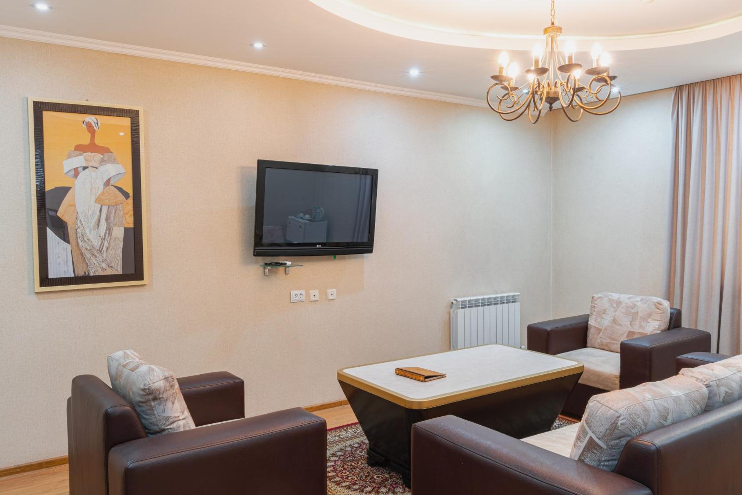 Altair Hotel, located just a 5-minute walk from Shymkent's central square, offers modern rooms with free WiFi access. The vibrant rooms and suites feature flat-screen TVs, minibars, and comfortable bedding options, including round beds in some rooms. The en suite bathrooms are equipped with complimentary toiletries, slippers, and hairdryers for guests' convenience.