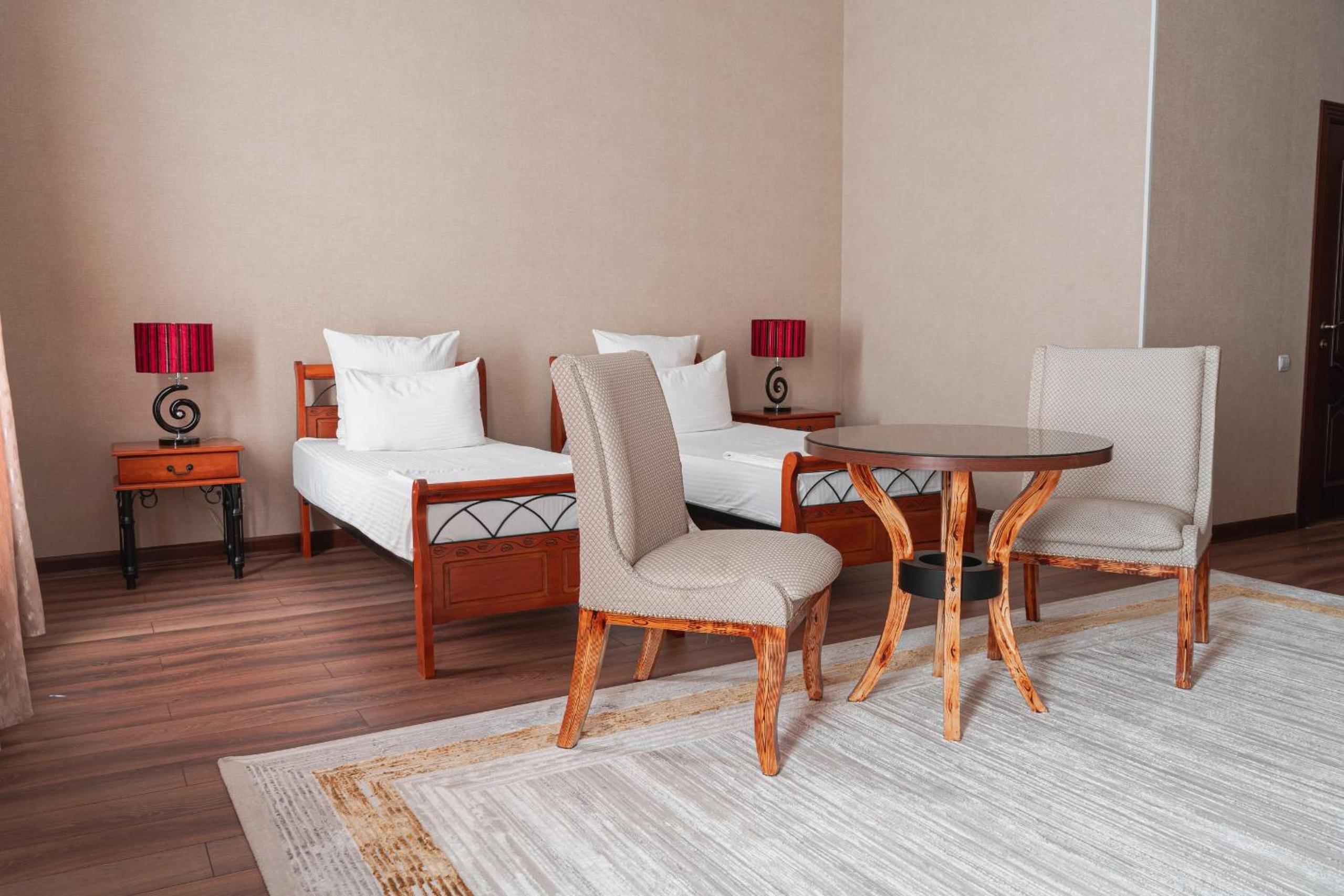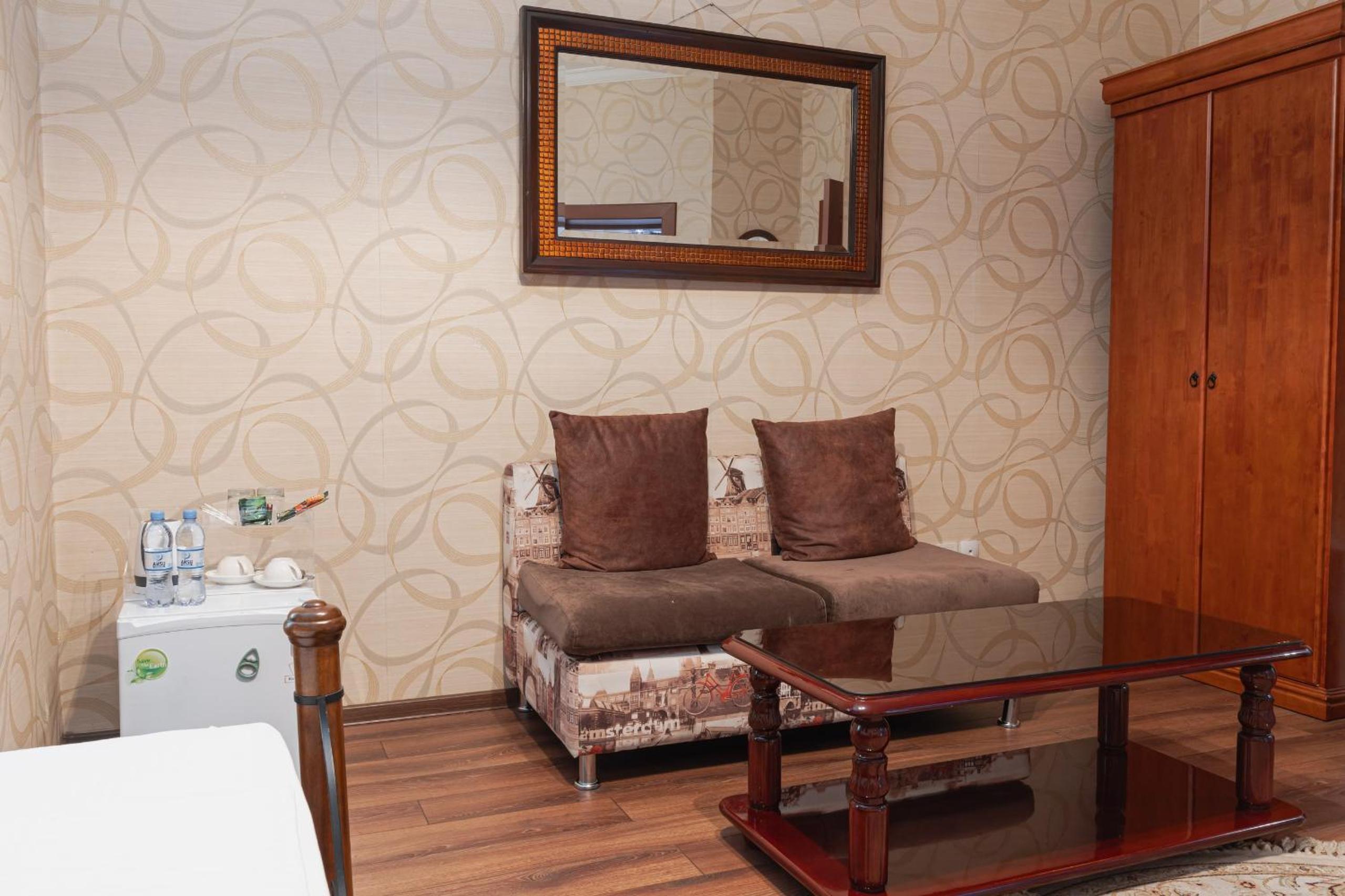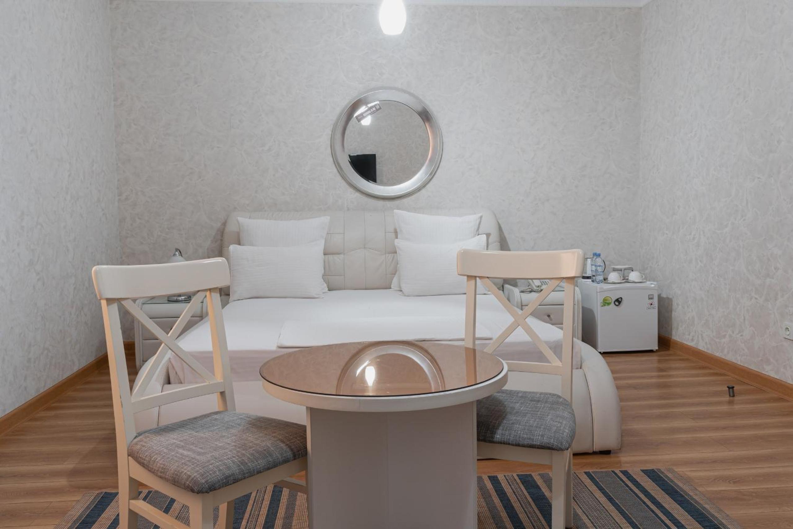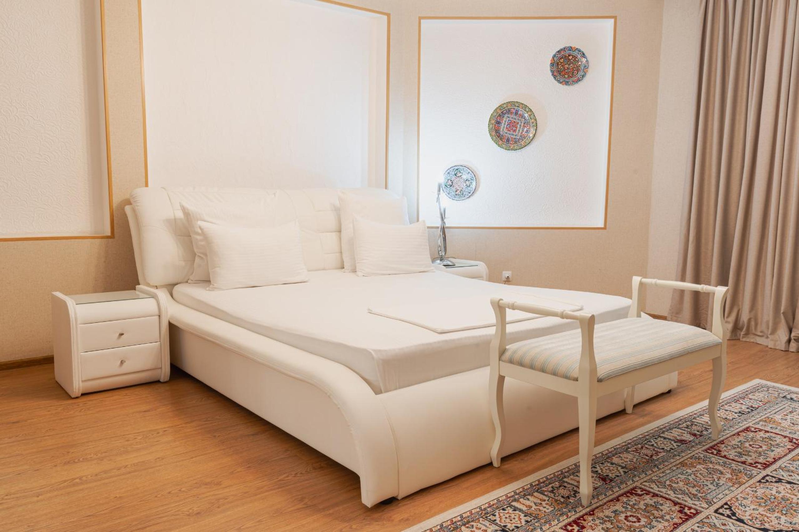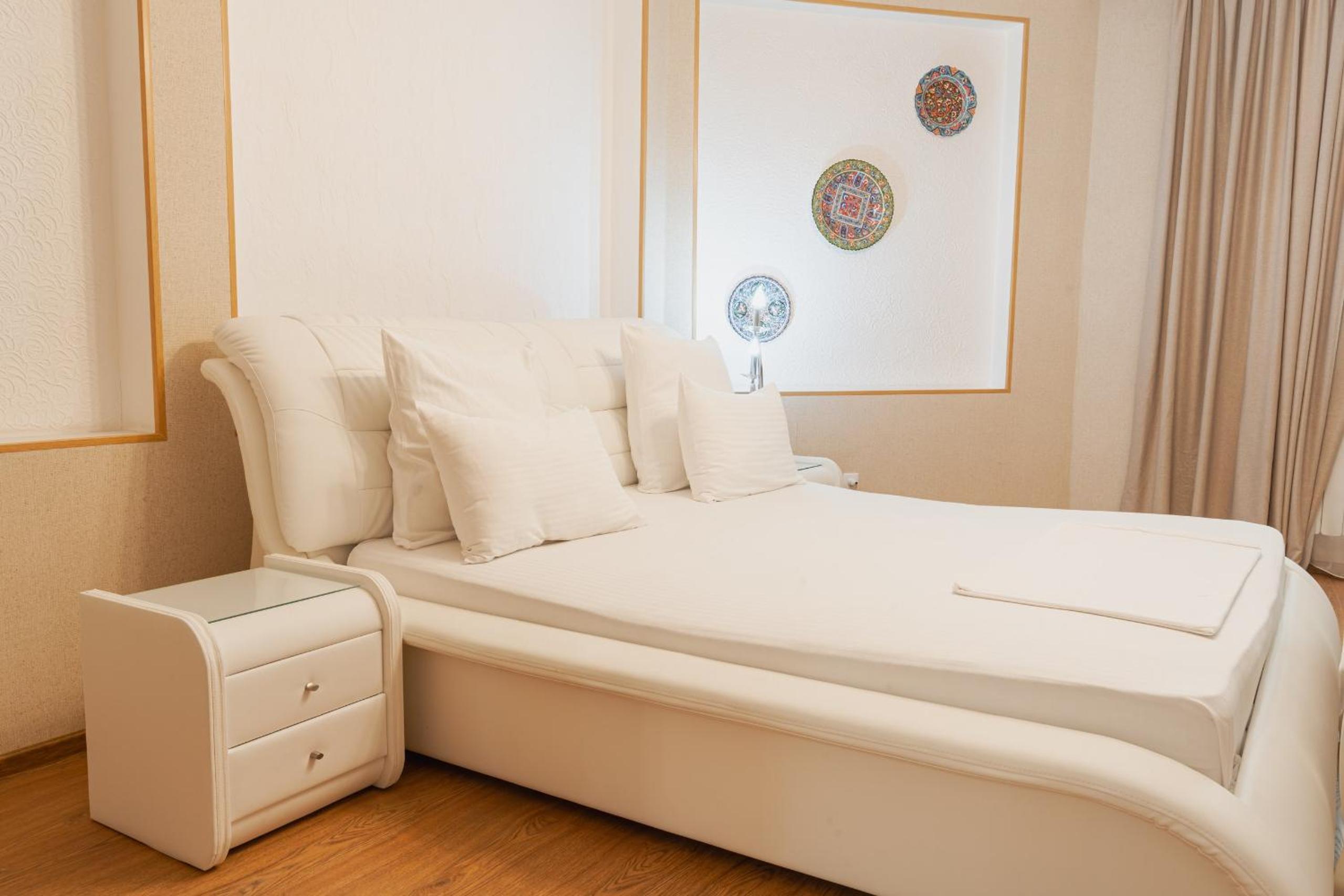 Altair Hotel, located just a 5-minute walk from Shymkent's central square, offers modern rooms with free WiFi access. The vibrant rooms and suites feature flat-screen TVs, minibars, and comfortable bedding options, including round beds in some rooms. The en suite bathrooms are equipped with complimentary toiletries, slippers, and hairdryers for guests' convenience.
