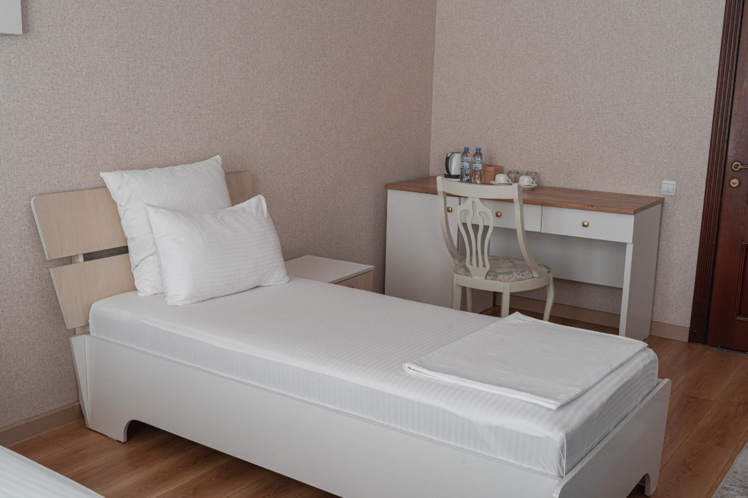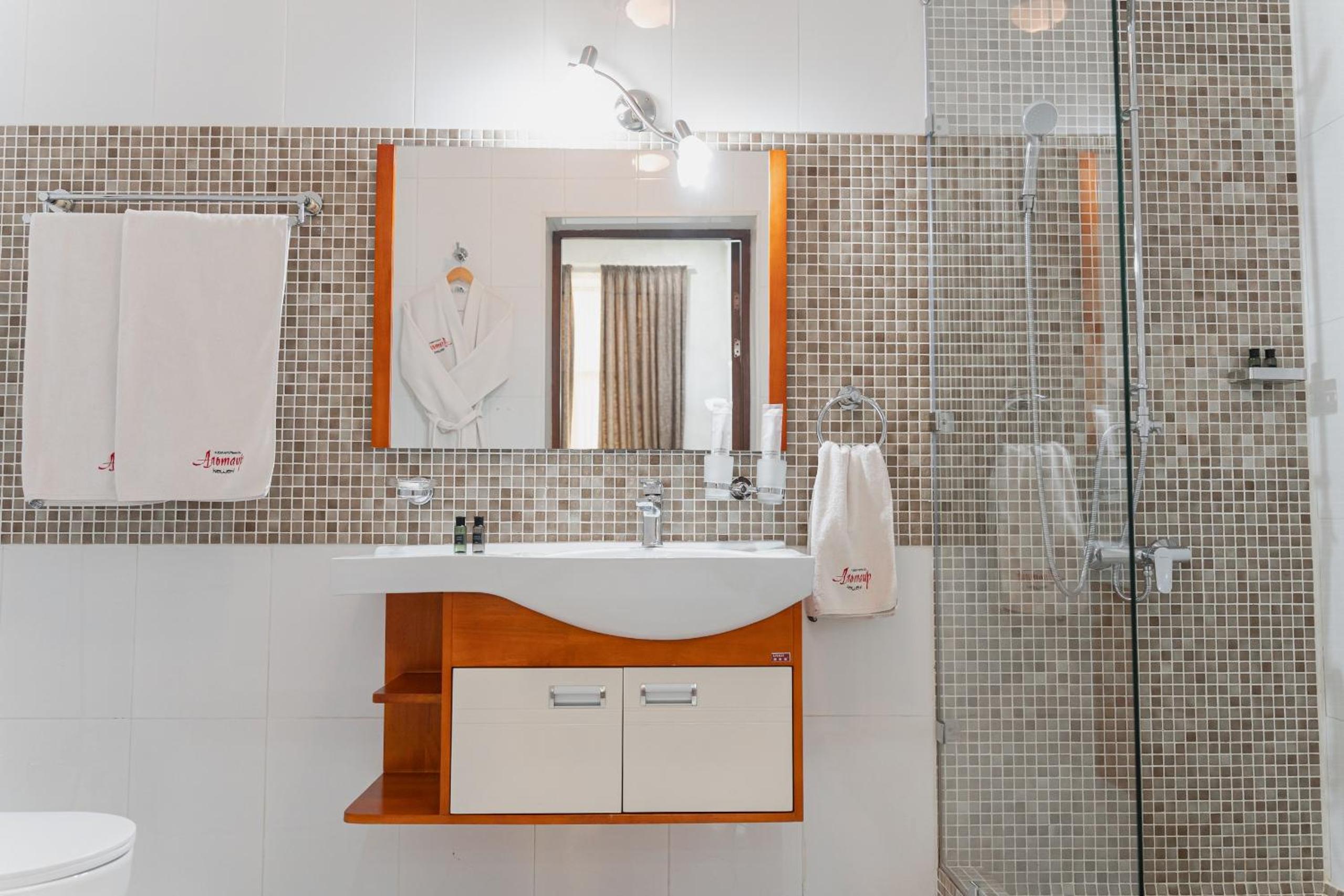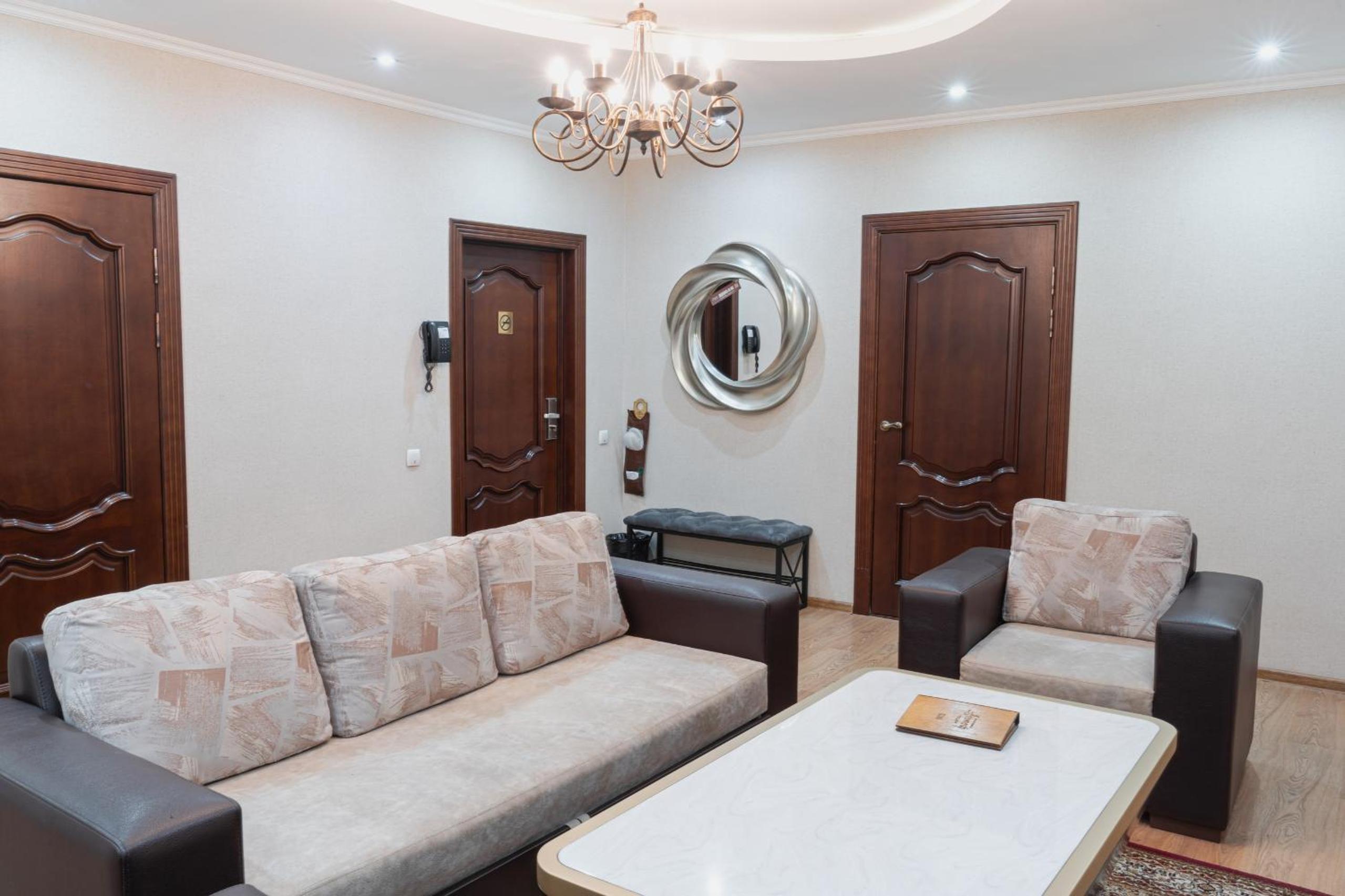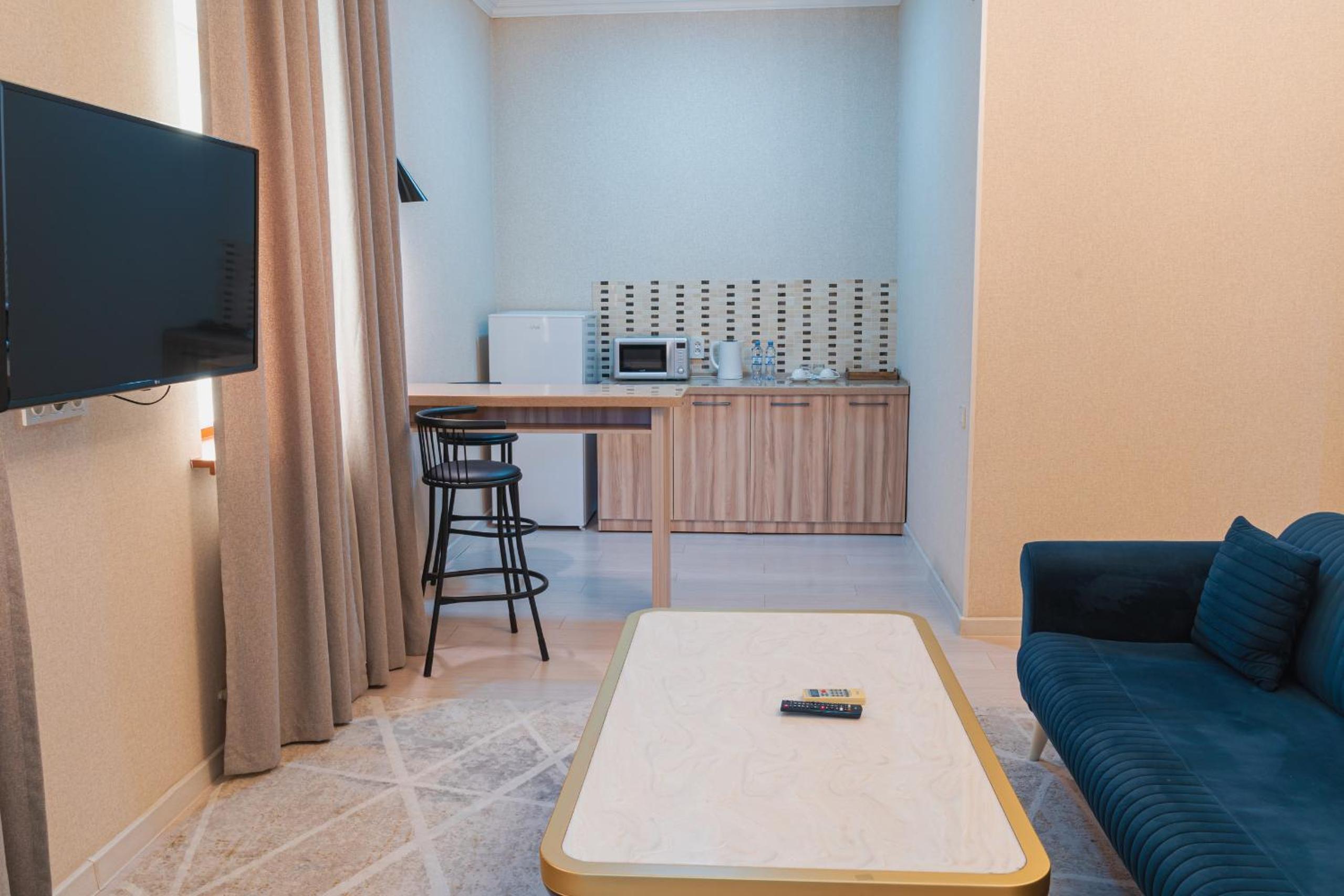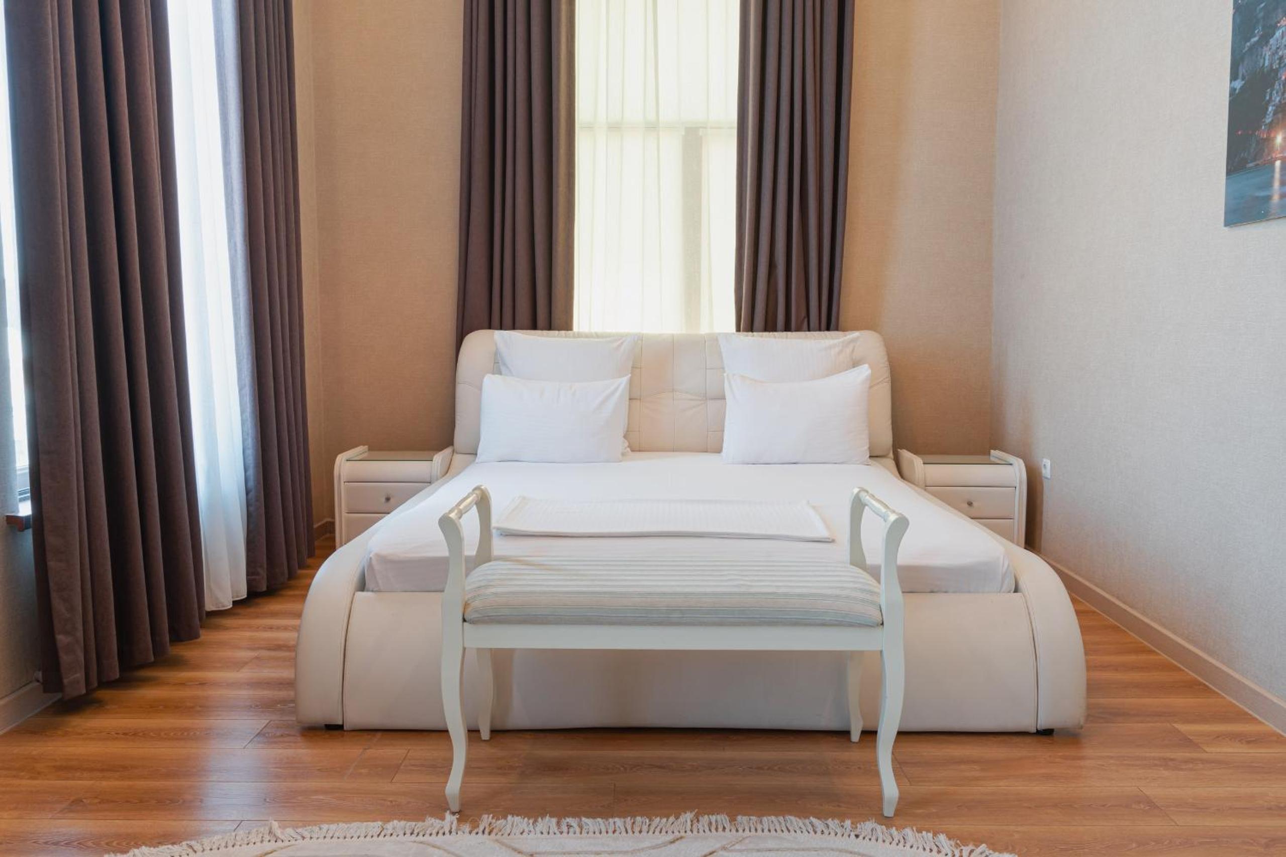 Altair Hotel, located just a 5-minute walk from Shymkent's central square, offers modern rooms with free WiFi access. The vibrant rooms and suites feature flat-screen TVs, minibars, and comfortable bedding options, including round beds in some rooms. The en suite bathrooms are equipped with complimentary toiletries, slippers, and hairdryers for guests' convenience.