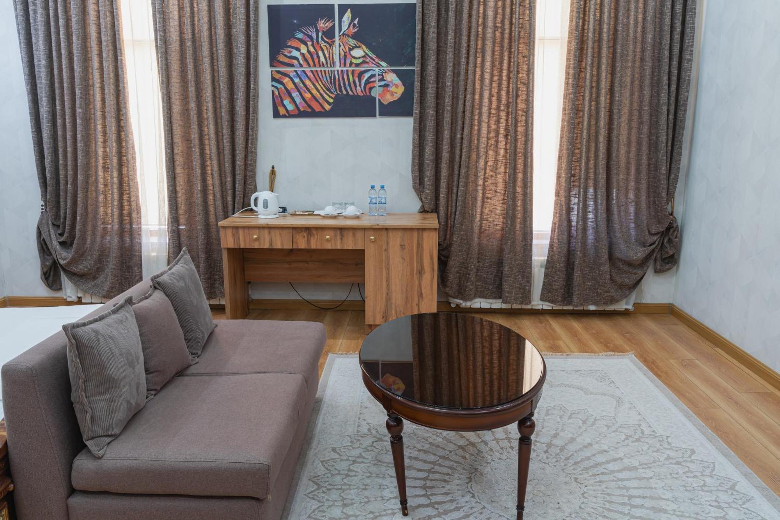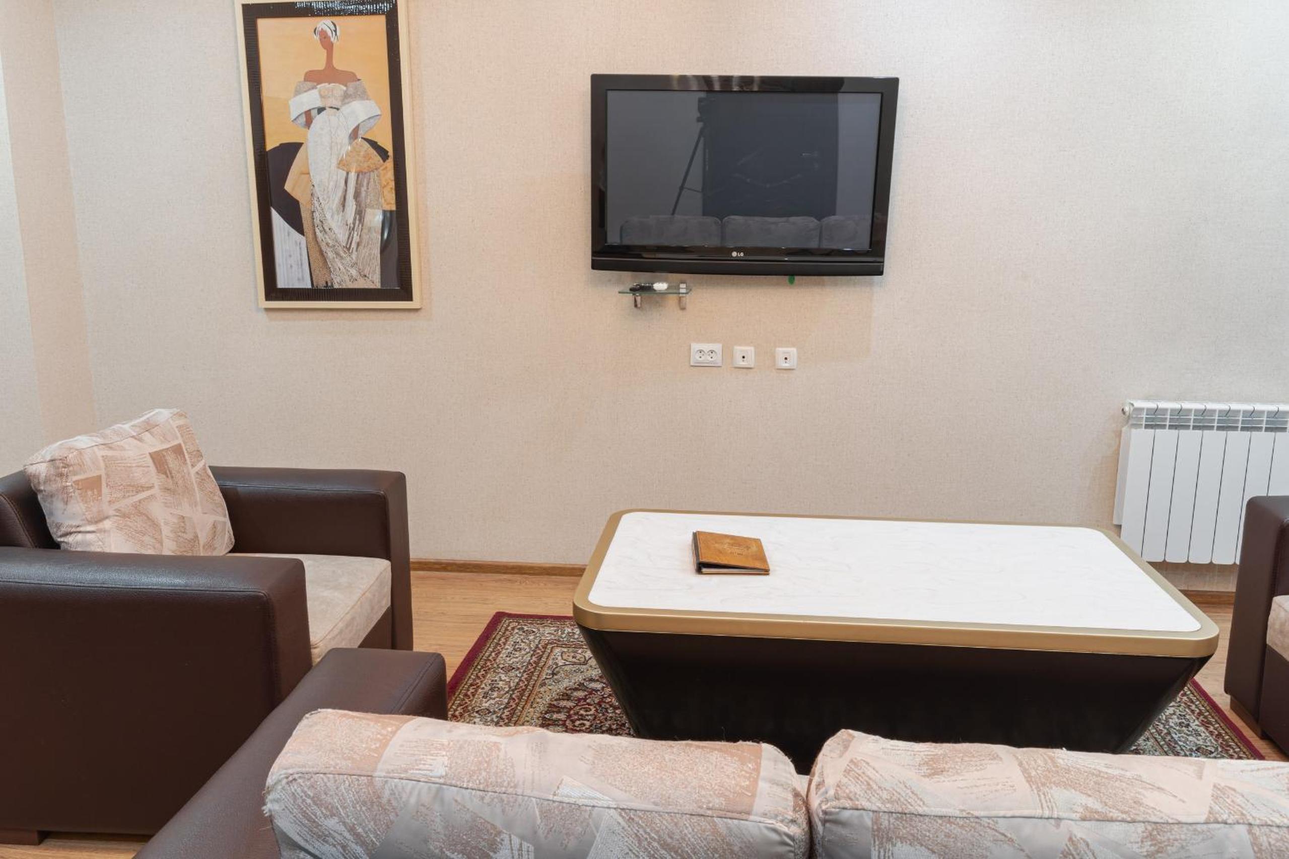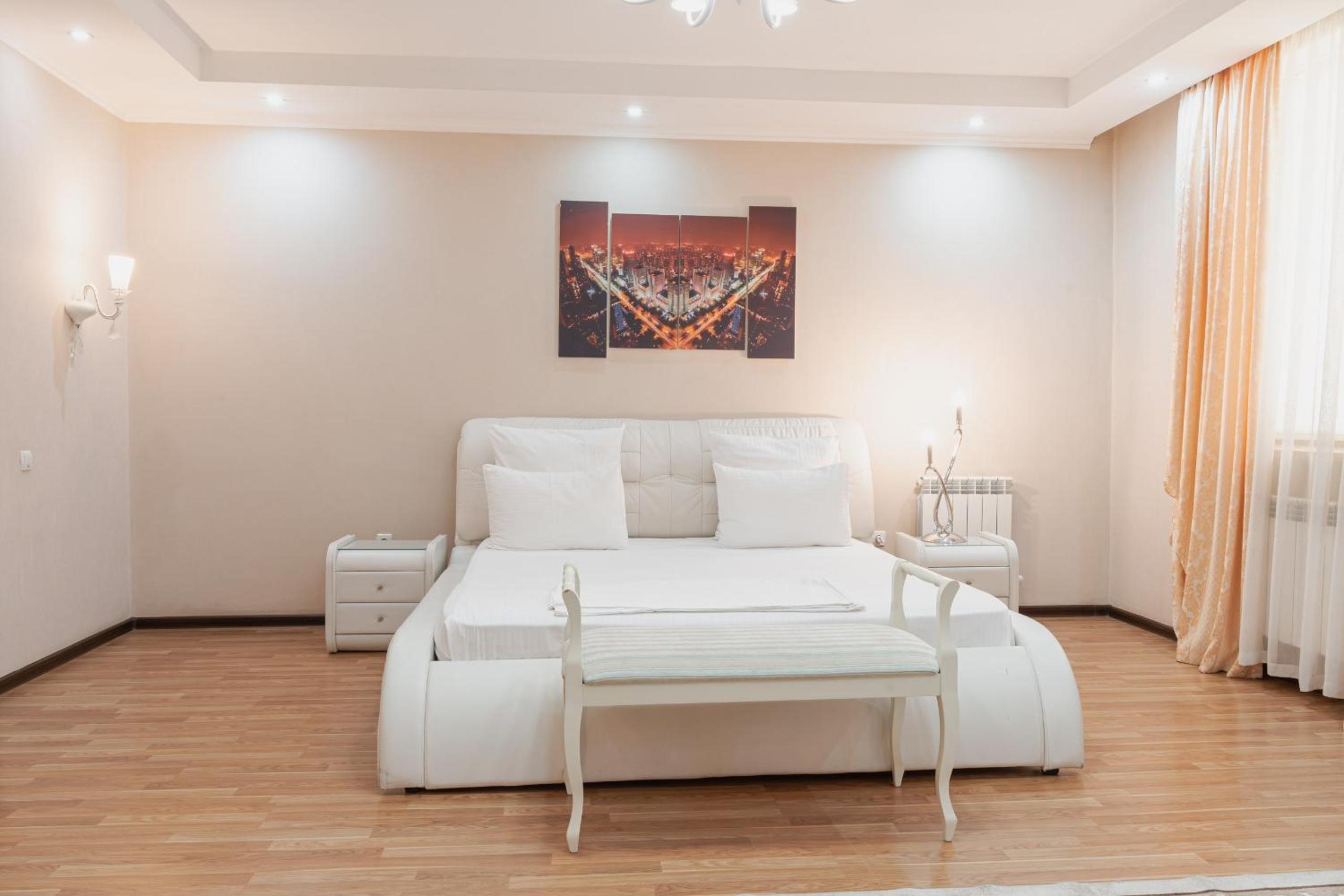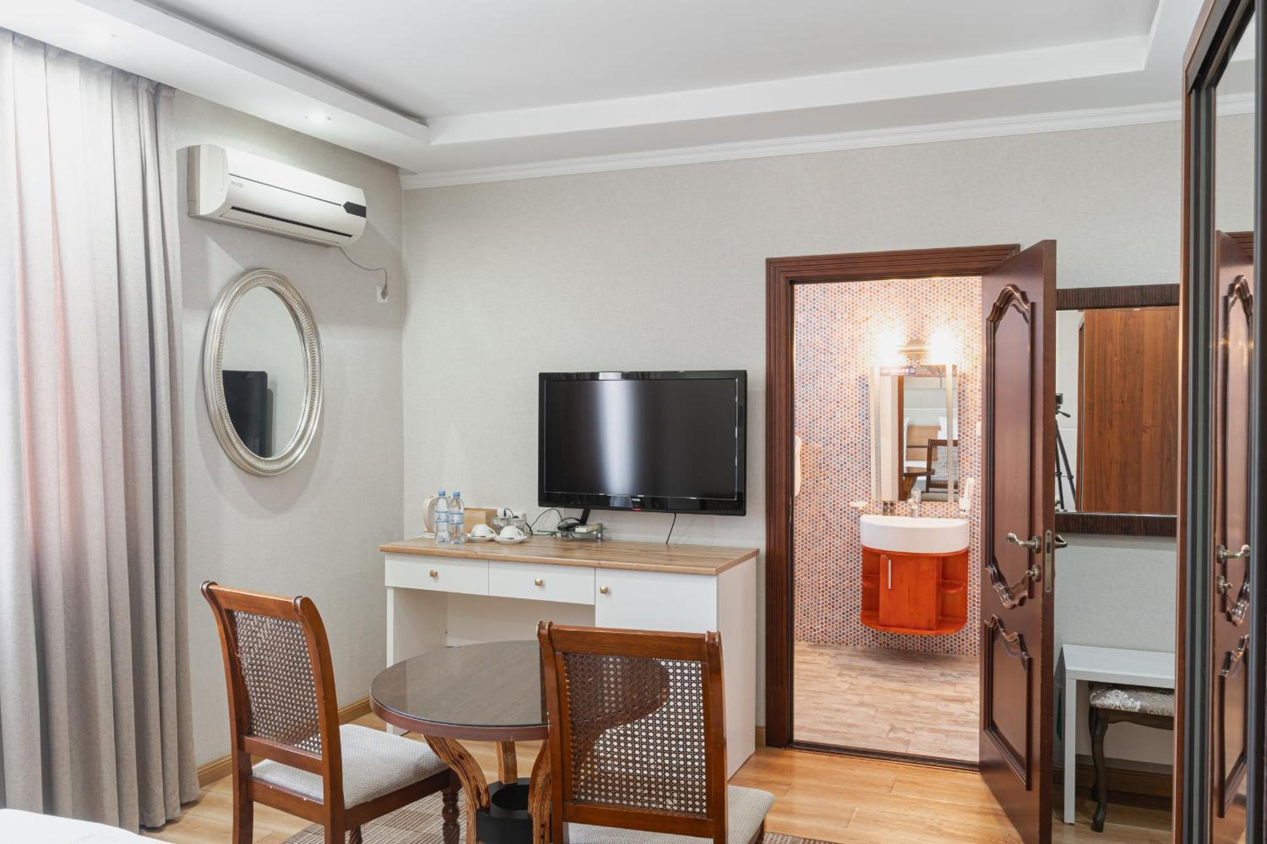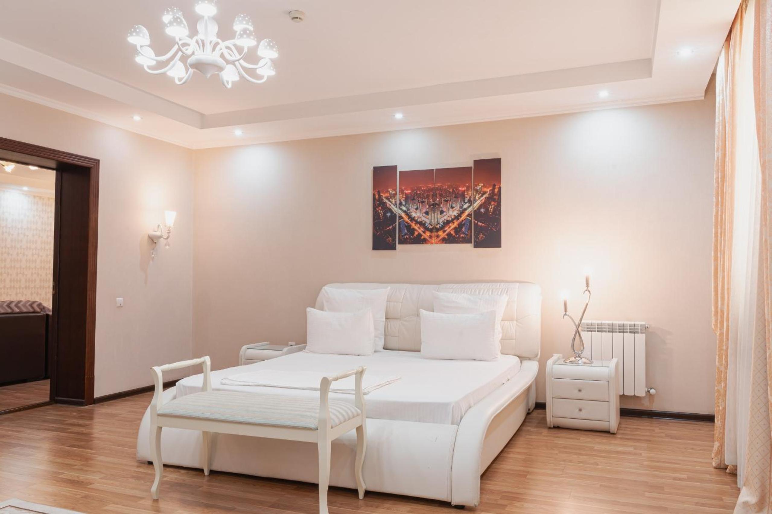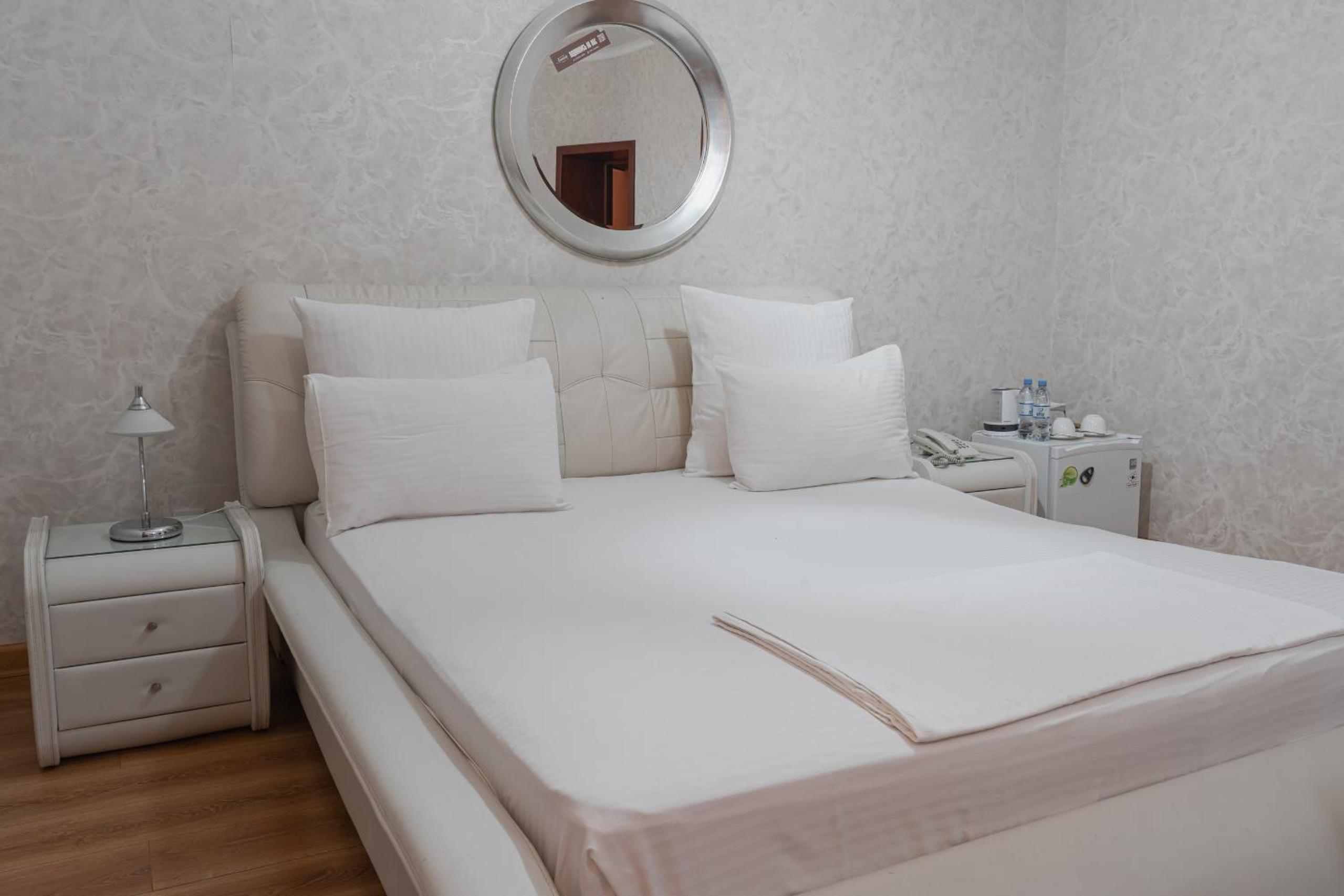 Altair Hotel, located just a 5-minute walk from Shymkent's central square, offers modern rooms with free WiFi access. The vibrant rooms and suites feature flat-screen TVs, minibars, and comfortable bedding options, including round beds in some rooms. The en suite bathrooms are equipped with complimentary toiletries, slippers, and hairdryers for guests' convenience.