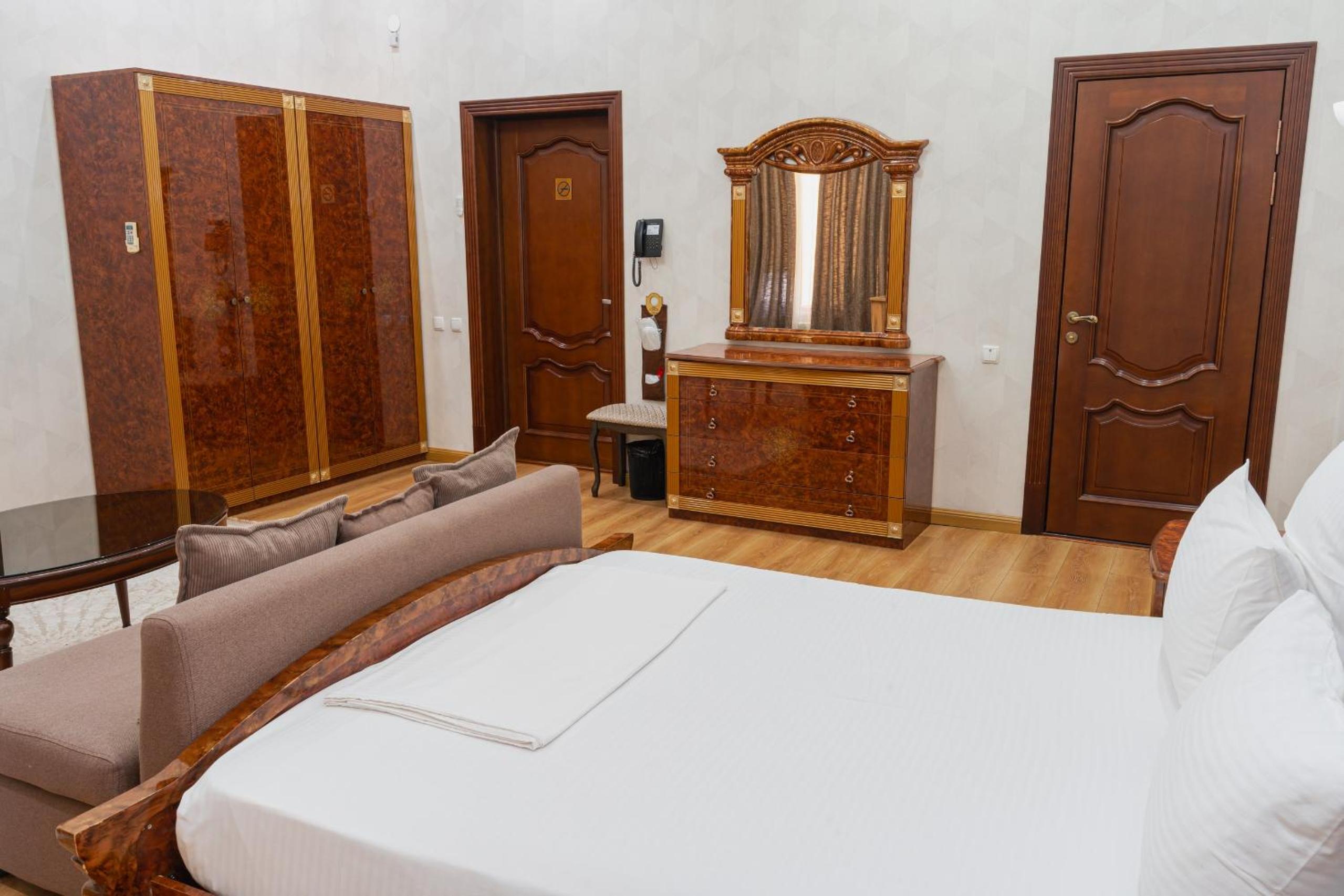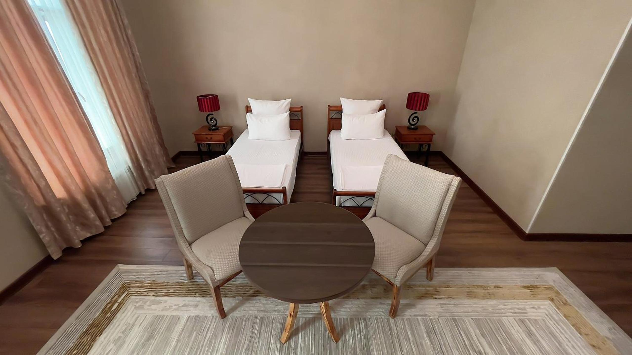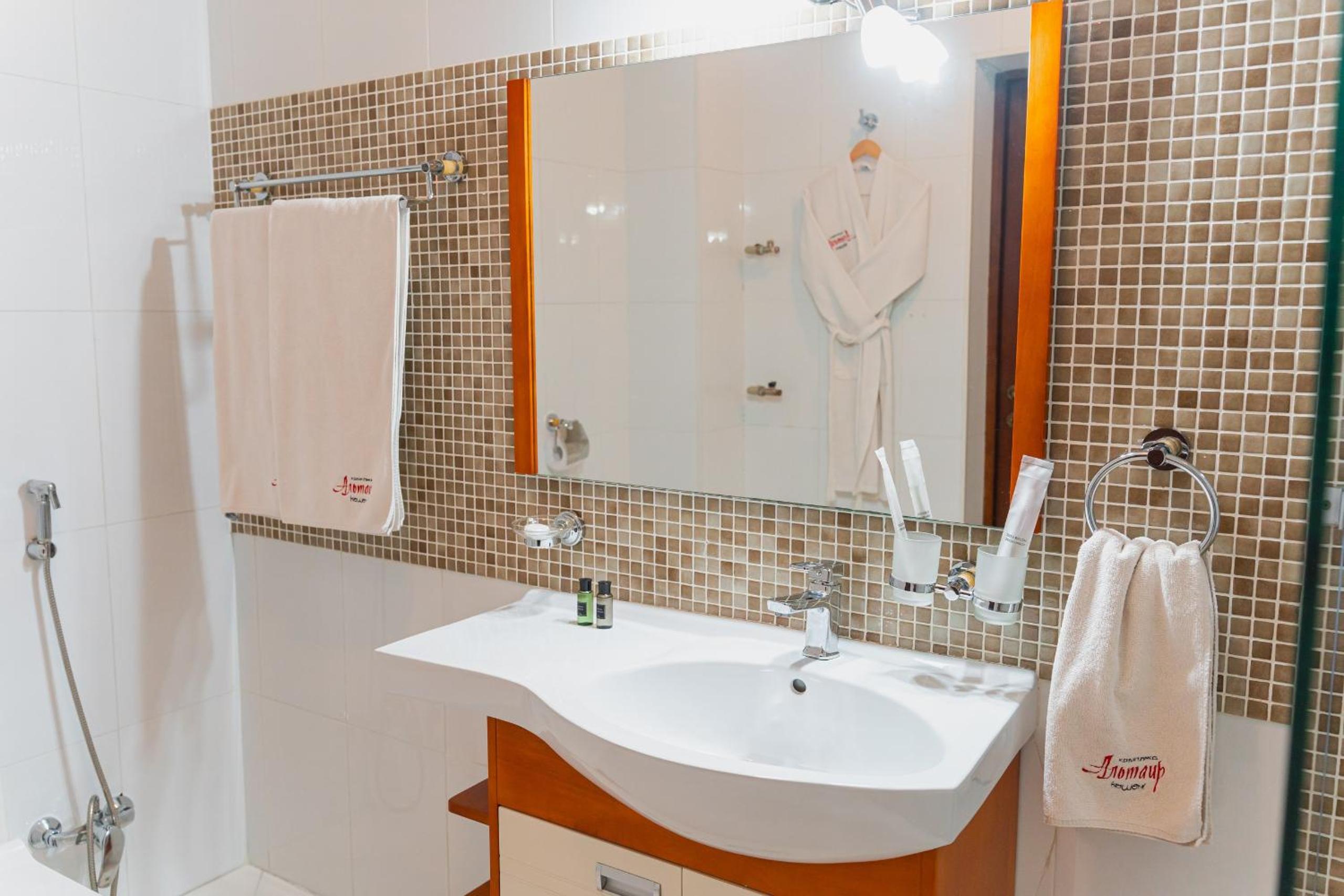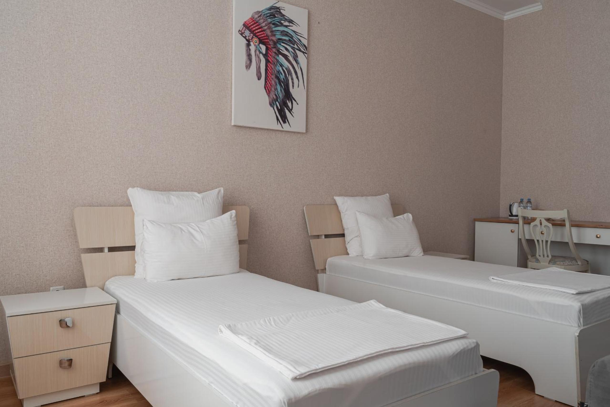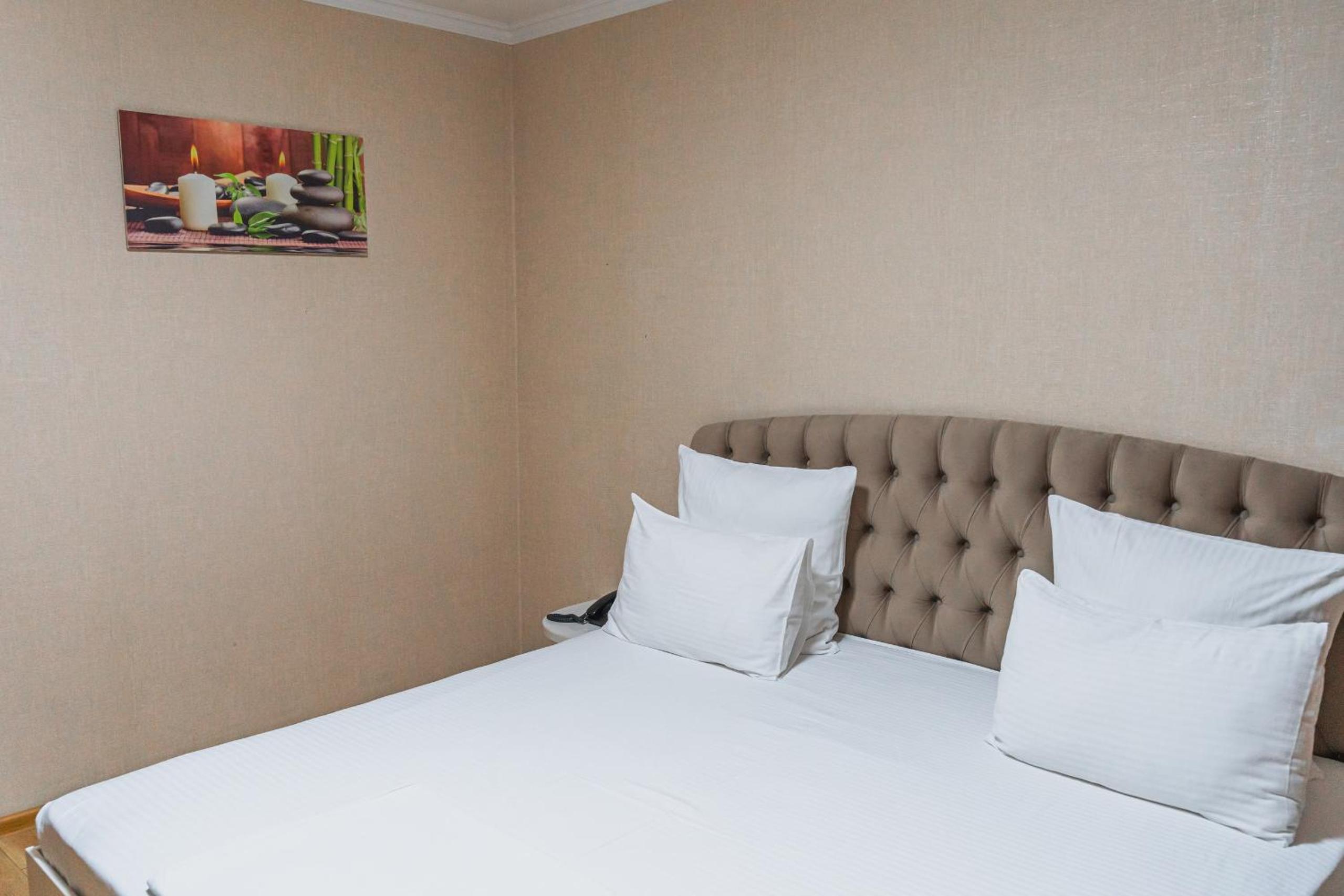 Altair Hotel, located just a 5-minute walk from Shymkent's central square, offers modern rooms with free WiFi access. The vibrant rooms and suites feature flat-screen TVs, minibars, and comfortable bedding options, including round beds in some rooms. The en suite bathrooms are equipped with complimentary toiletries, slippers, and hairdryers for guests' convenience.