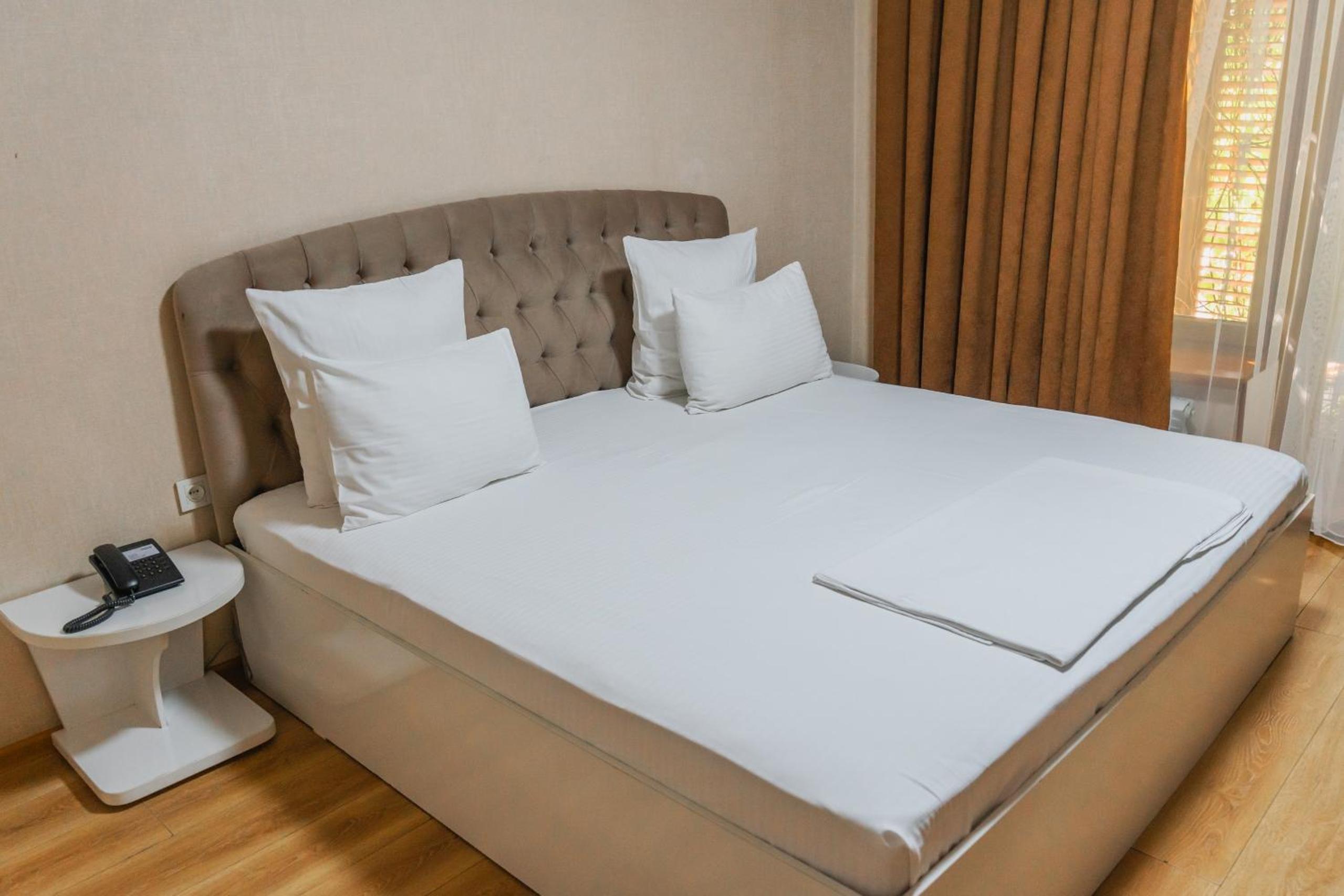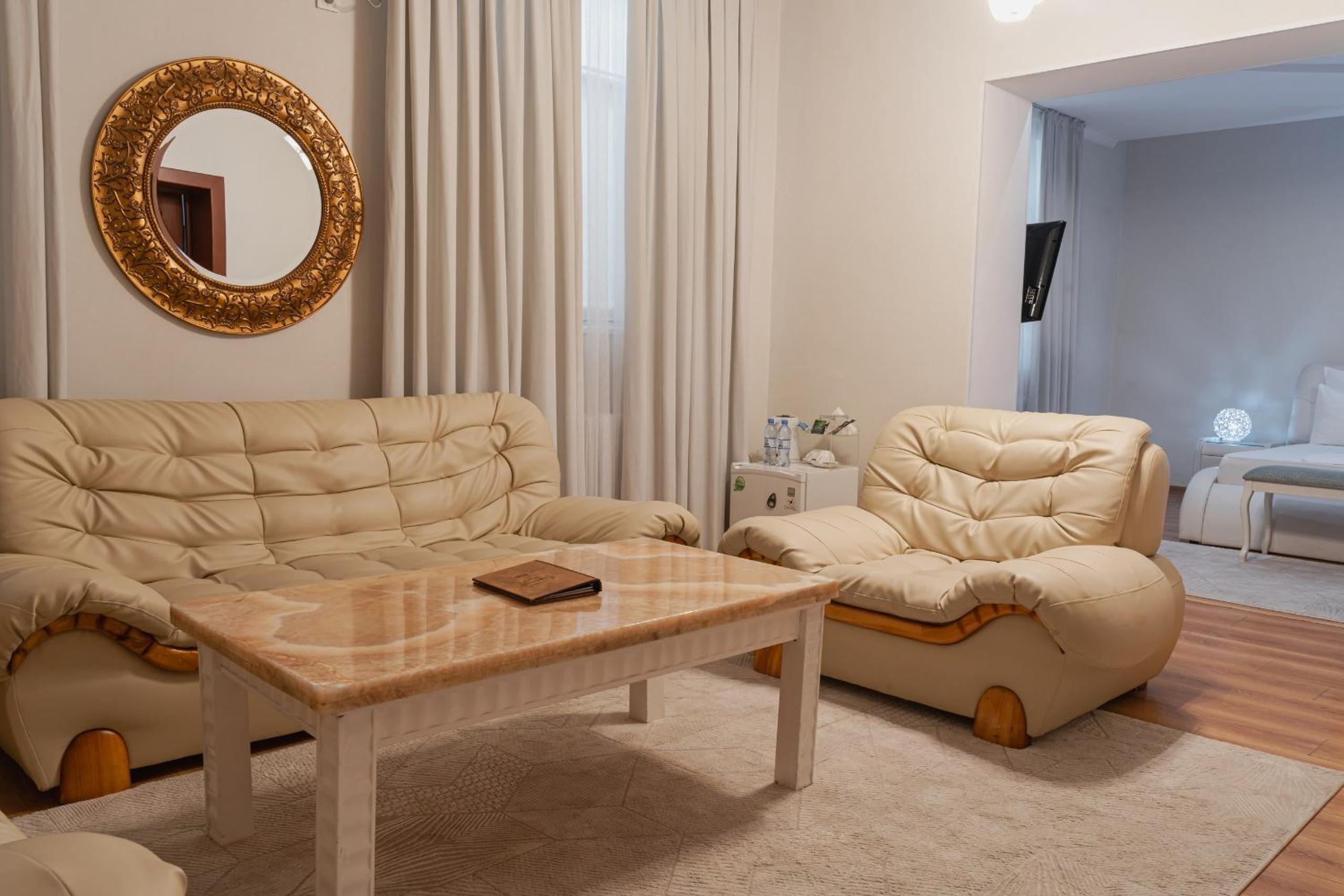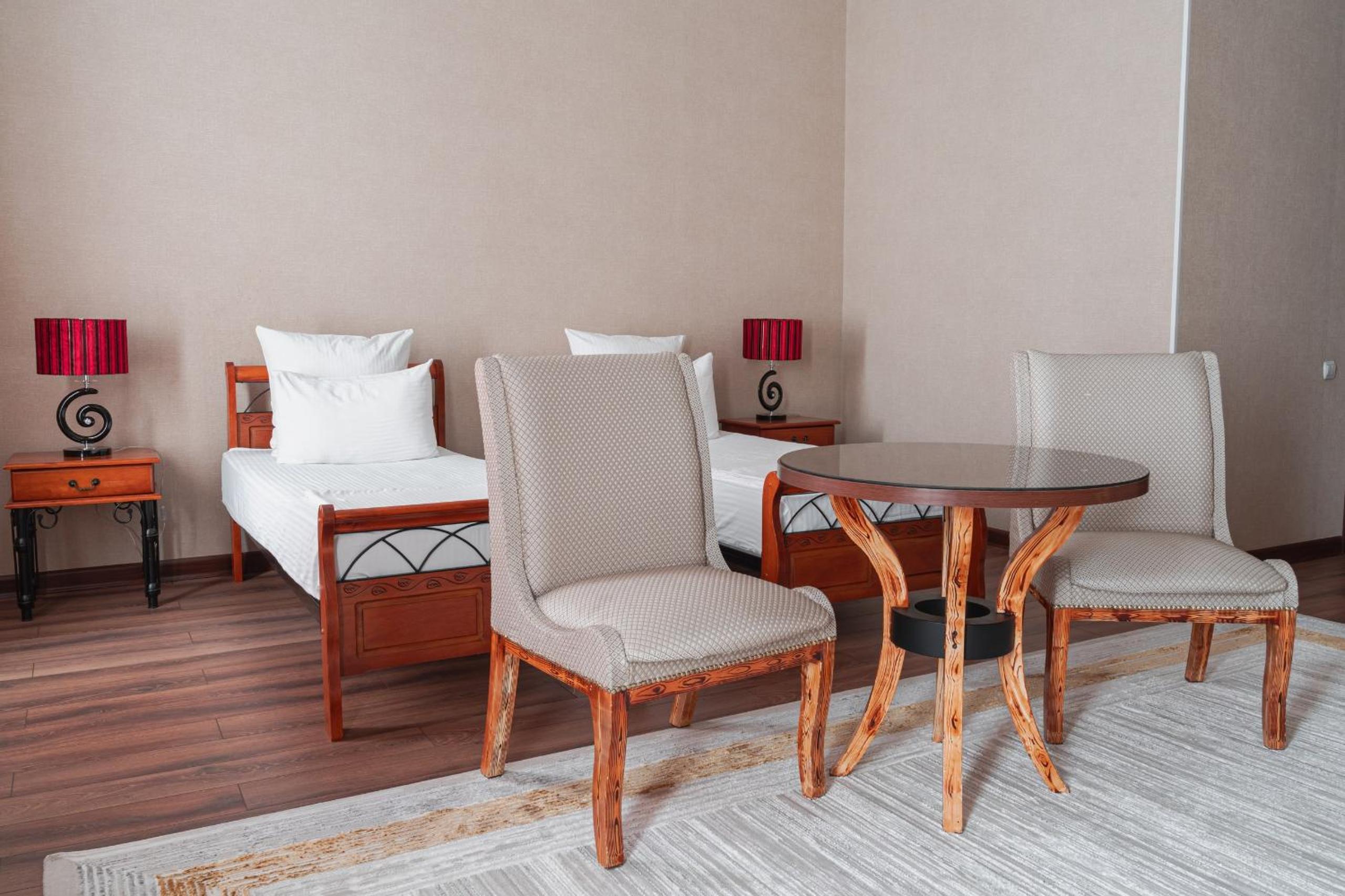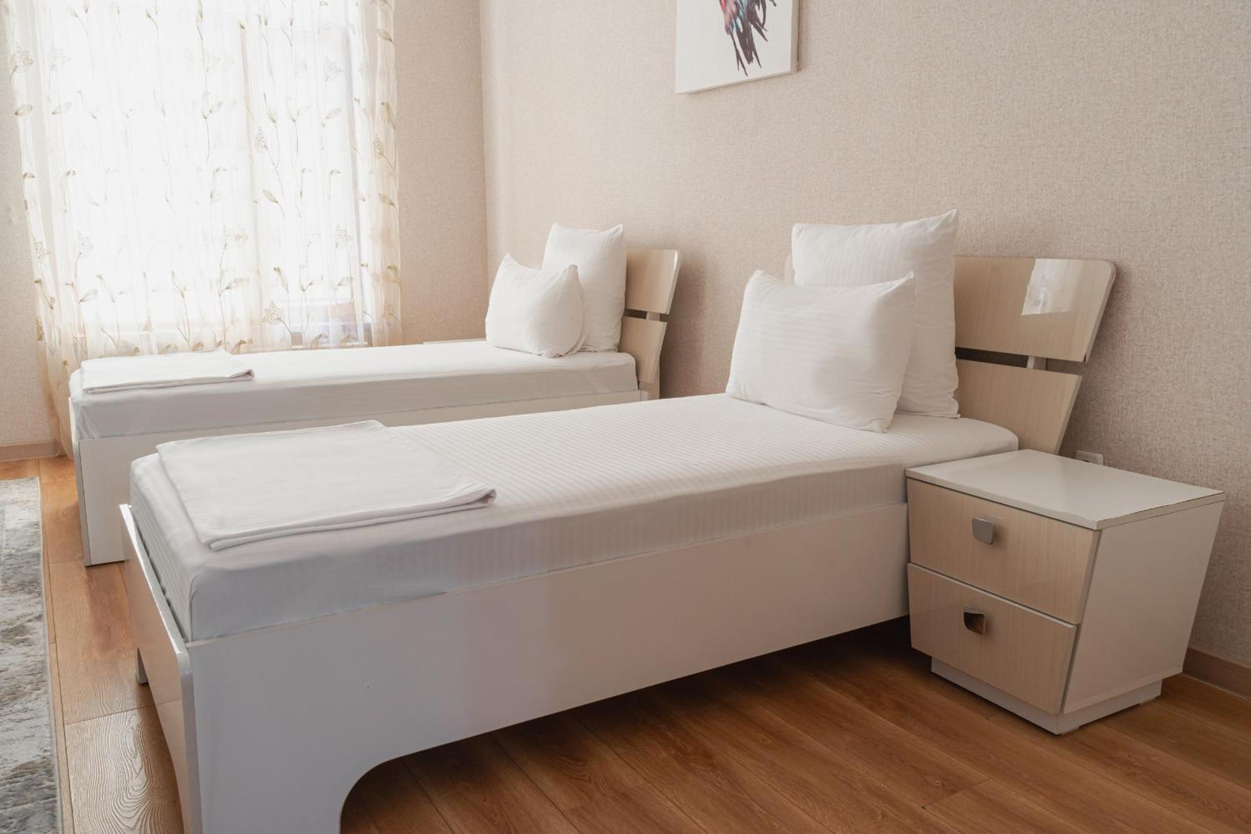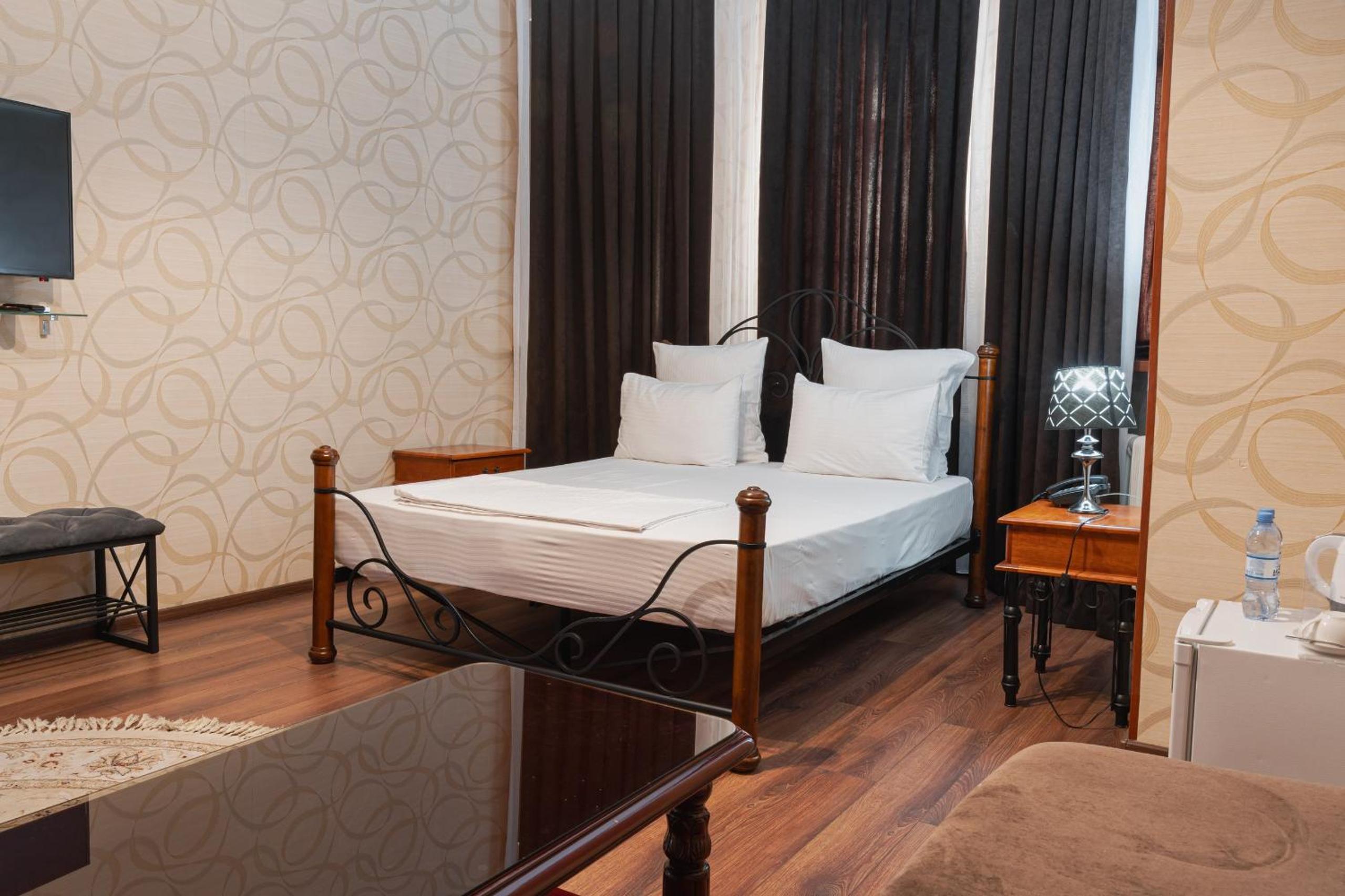 Altair Hotel, located just a 5-minute walk from Shymkent's central square, offers modern rooms with free WiFi access. The vibrant rooms and suites feature flat-screen TVs, minibars, and comfortable bedding options, including round beds in some rooms. The en suite bathrooms are equipped with complimentary toiletries, slippers, and hairdryers for guests' convenience.