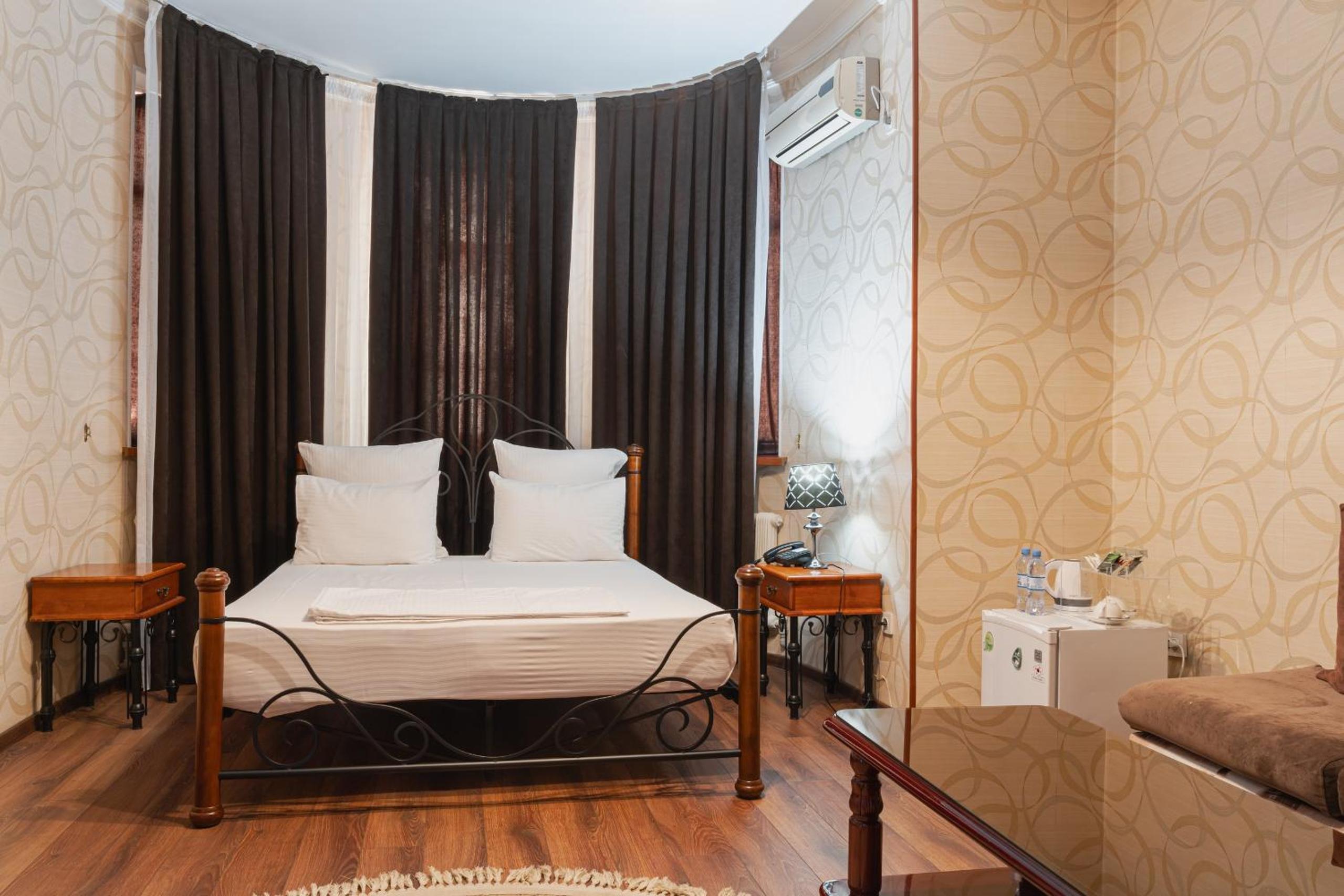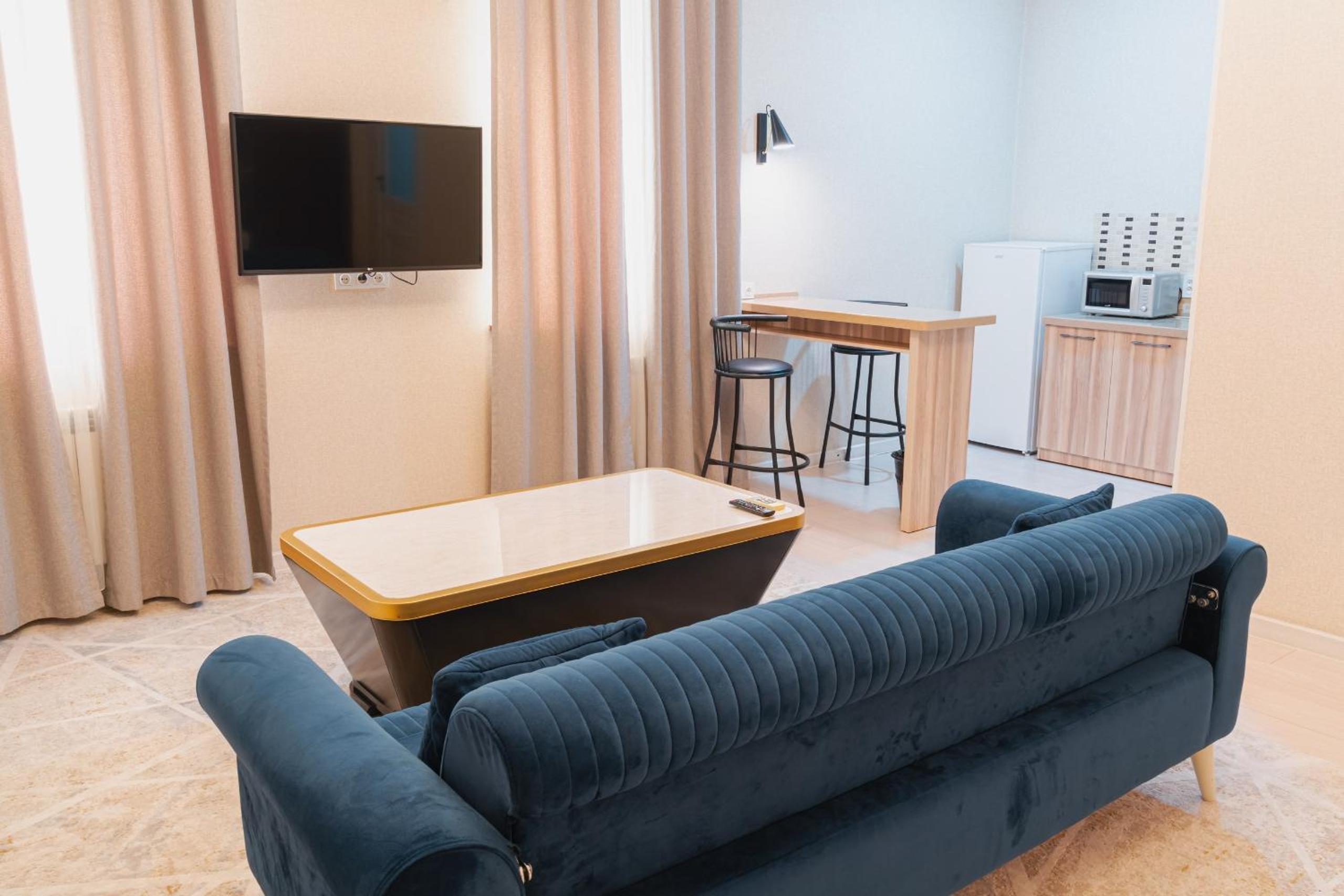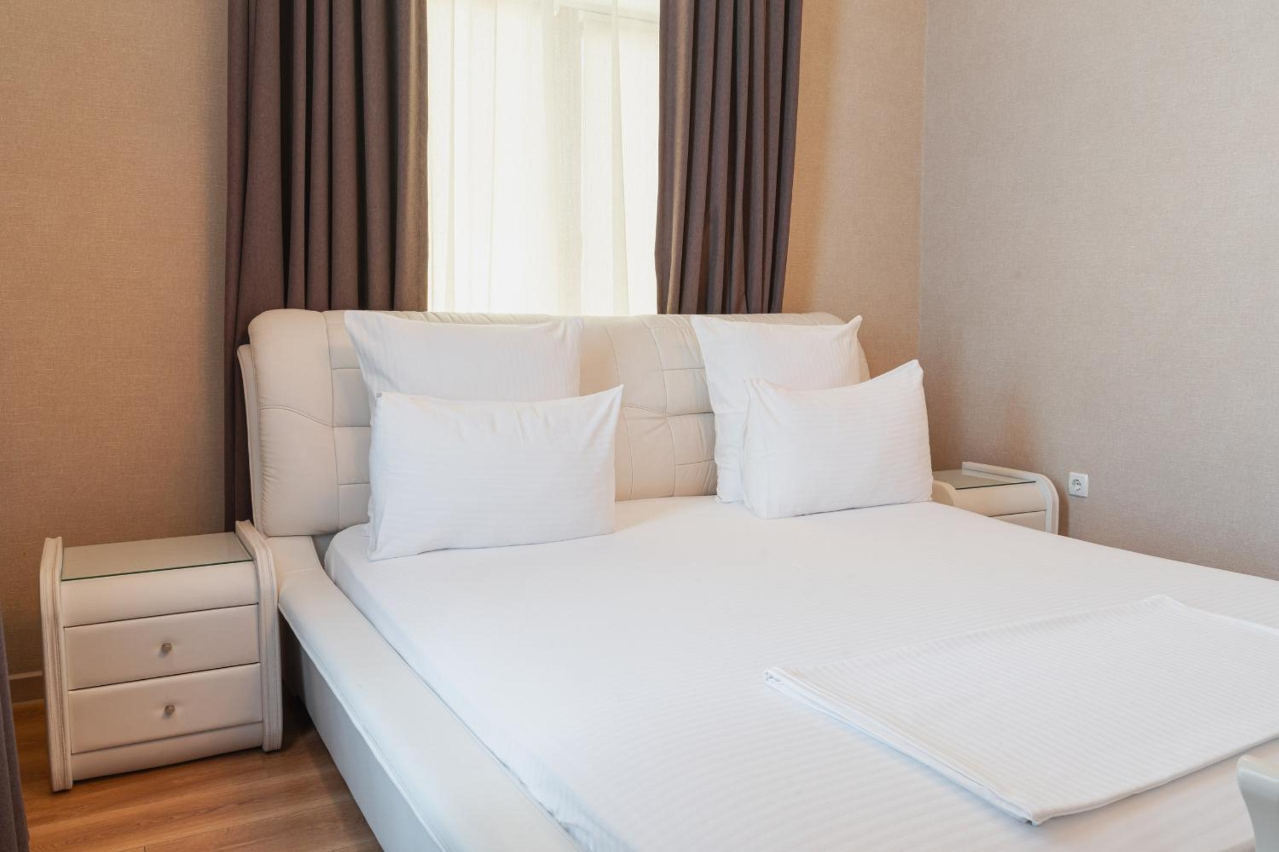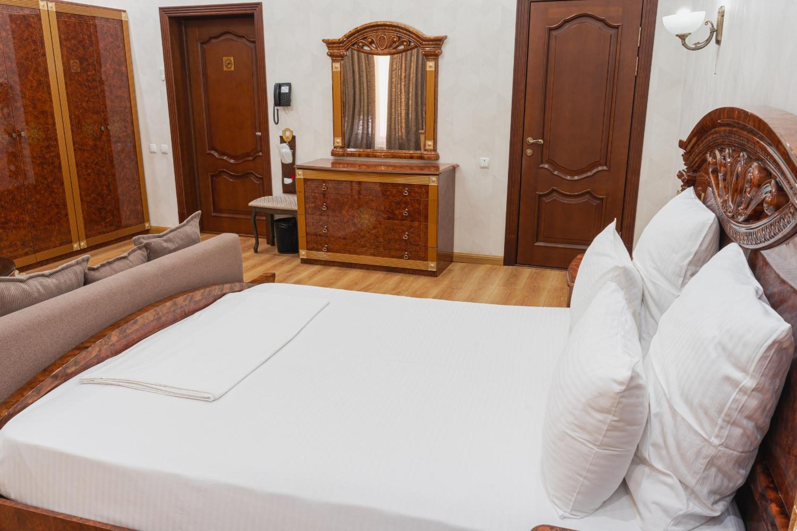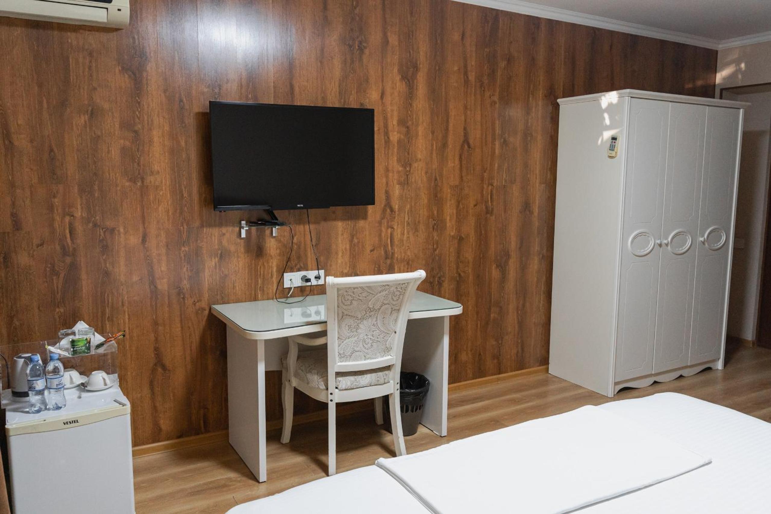 Altair Hotel, located just a 5-minute walk from Shymkent's central square, offers modern rooms with free WiFi access. The vibrant rooms and suites feature flat-screen TVs, minibars, and comfortable bedding options, including round beds in some rooms. The en suite bathrooms are equipped with complimentary toiletries, slippers, and hairdryers for guests' convenience.