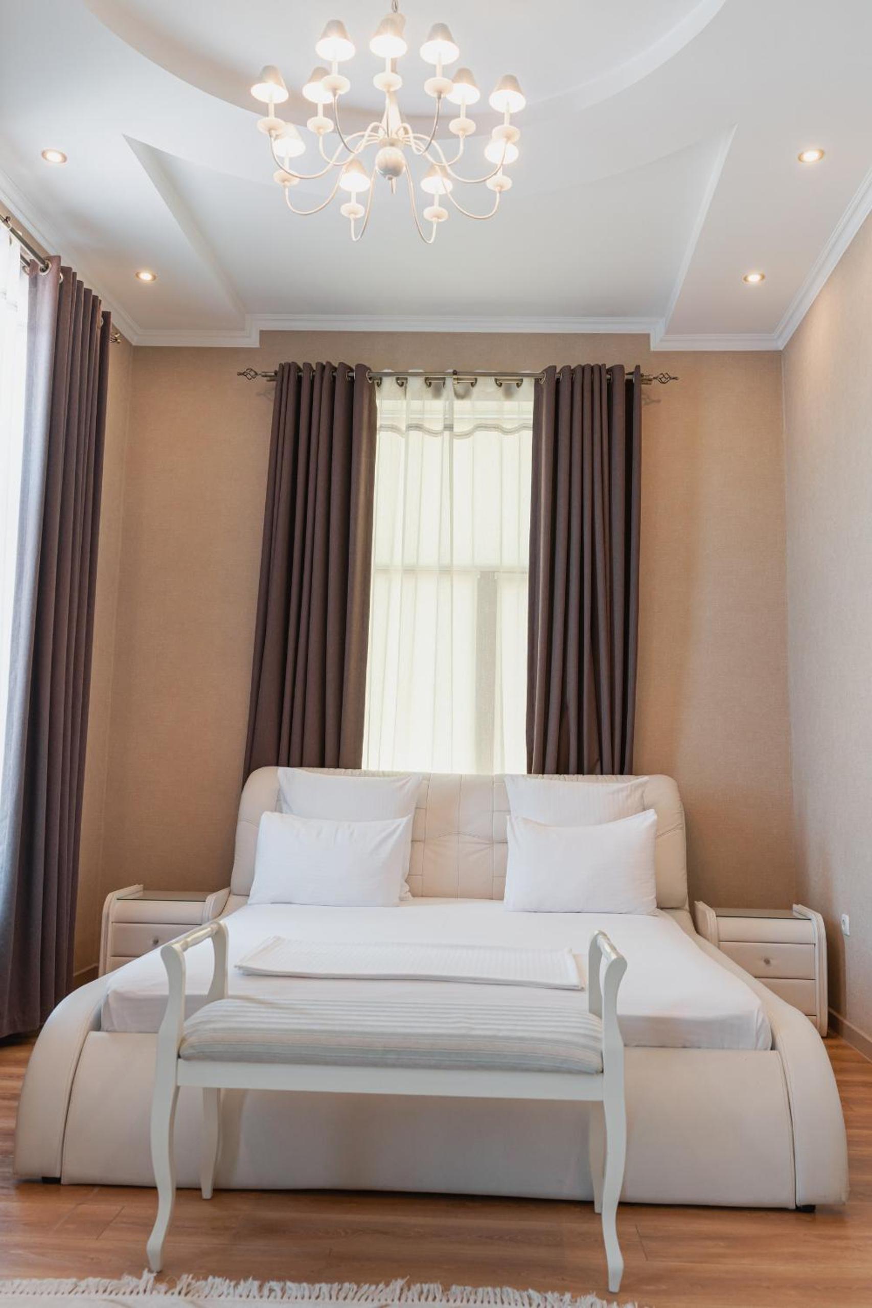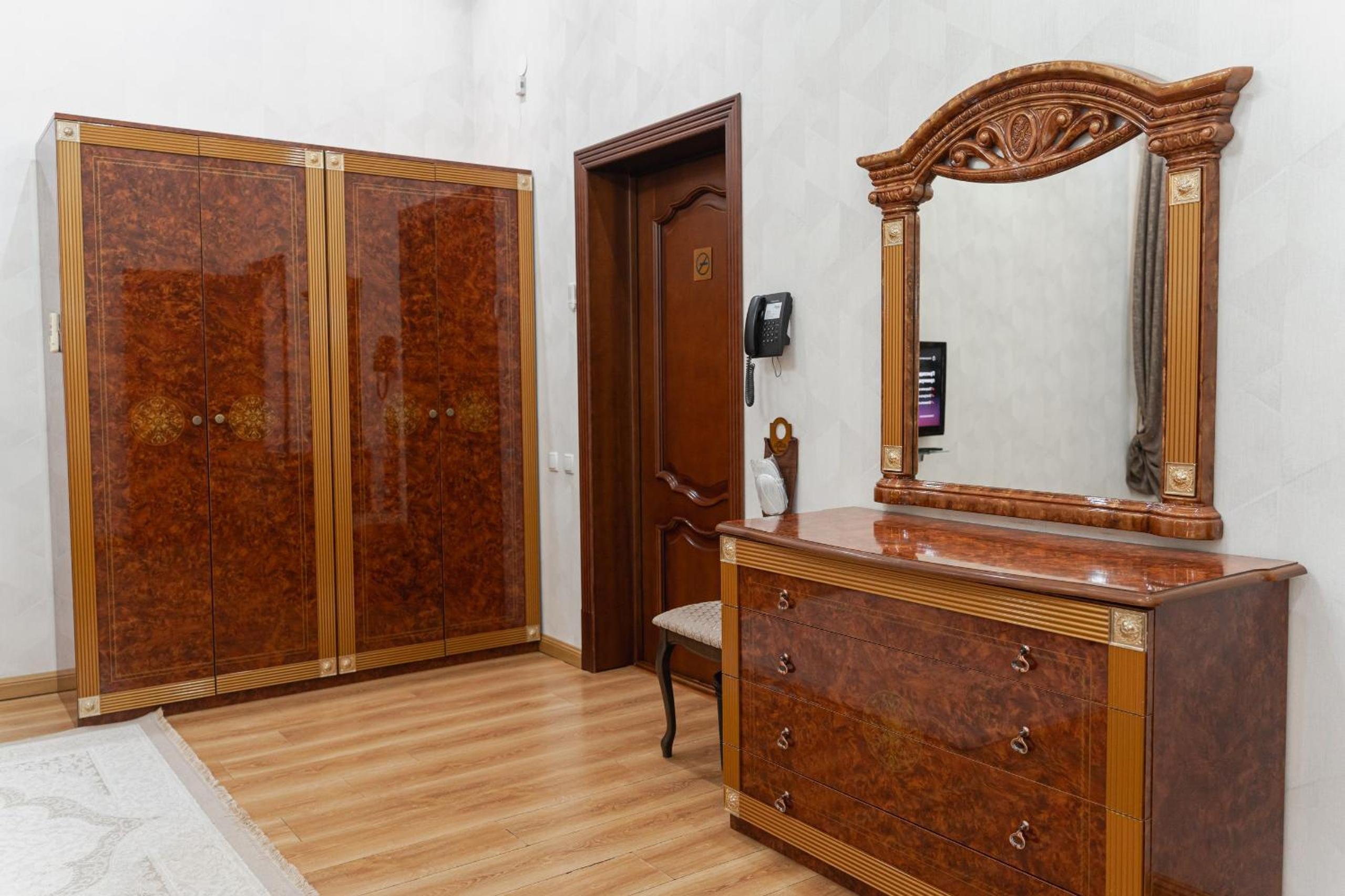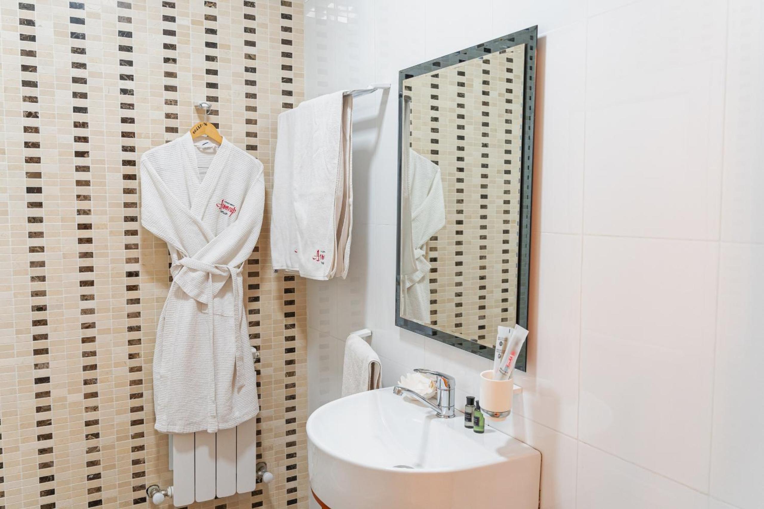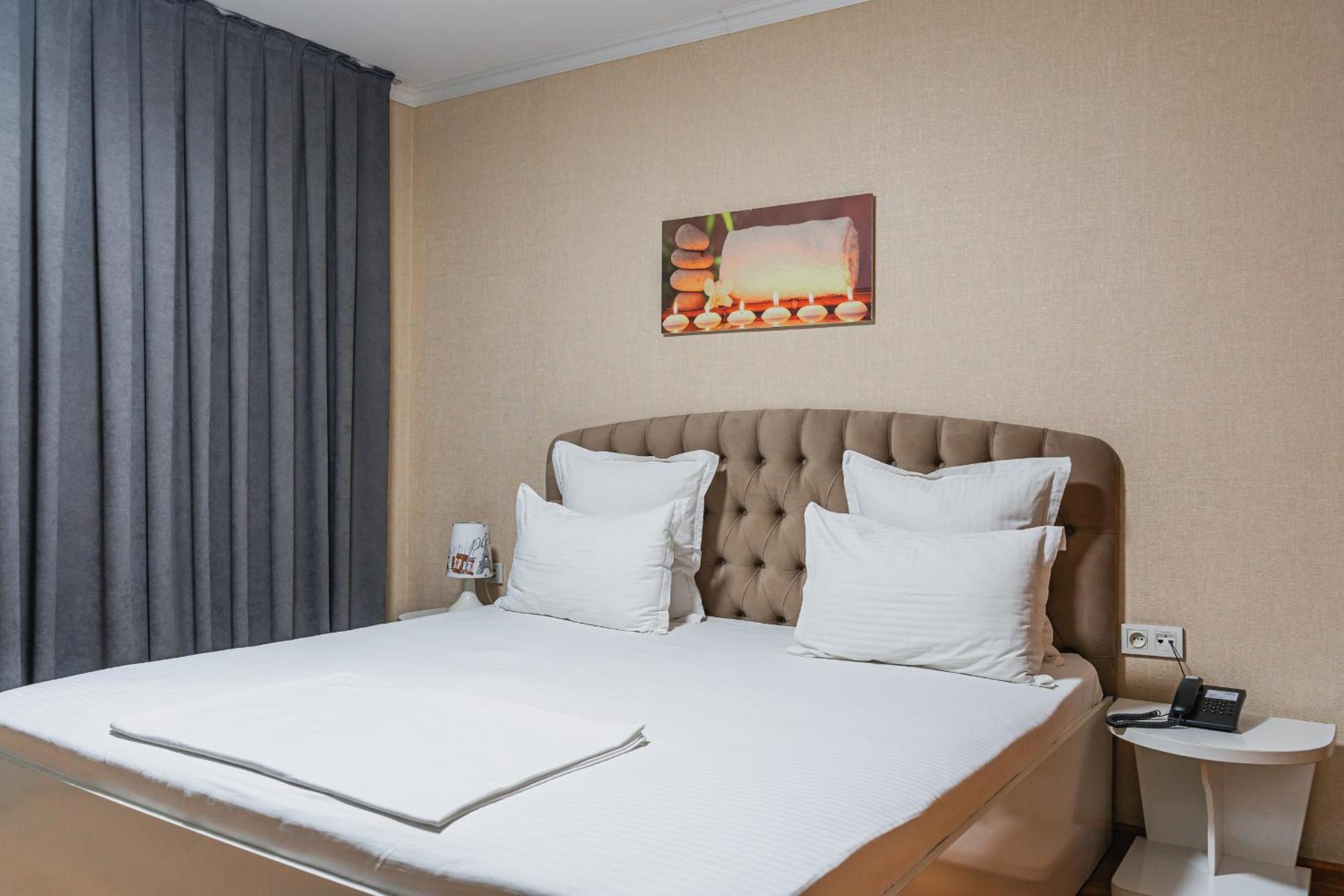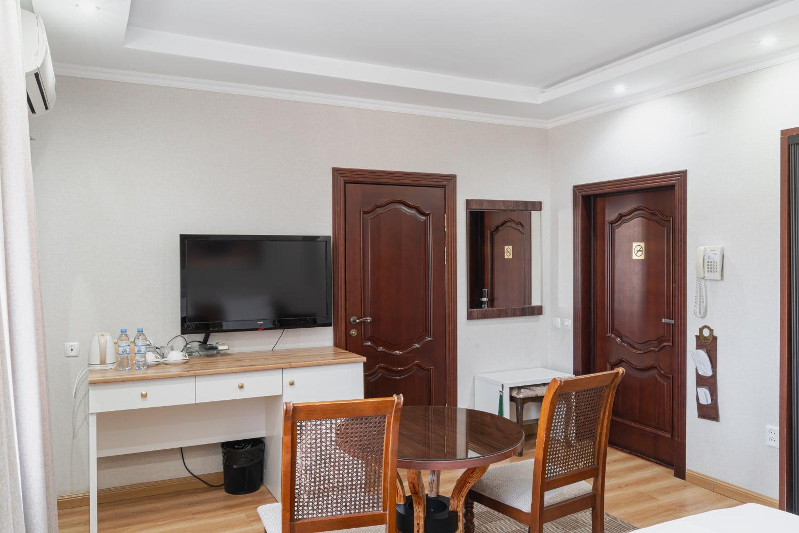 Altair Hotel, located just a 5-minute walk from Shymkent's central square, offers modern rooms with free WiFi access. The vibrant rooms and suites feature flat-screen TVs, minibars, and comfortable bedding options, including round beds in some rooms. The en suite bathrooms are equipped with complimentary toiletries, slippers, and hairdryers for guests' convenience.