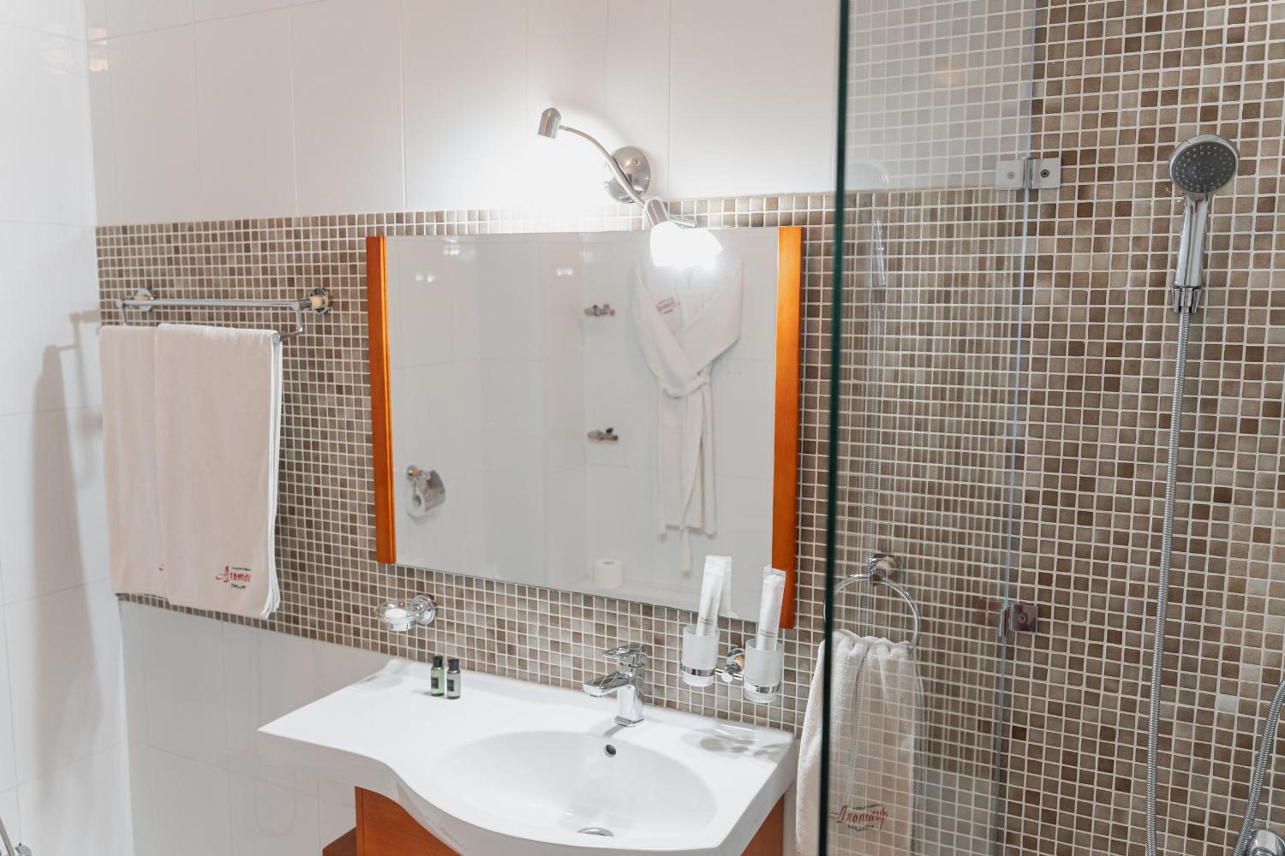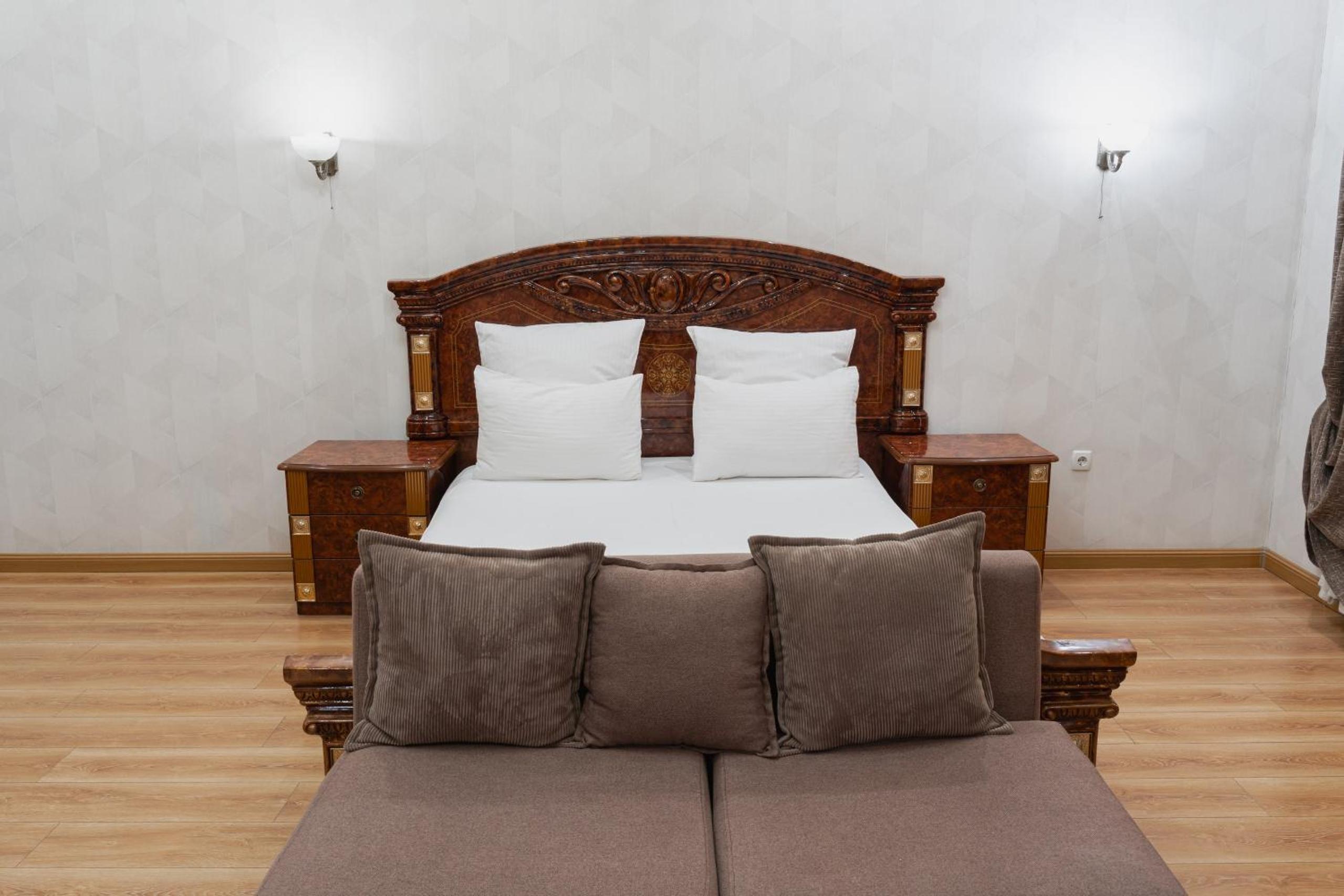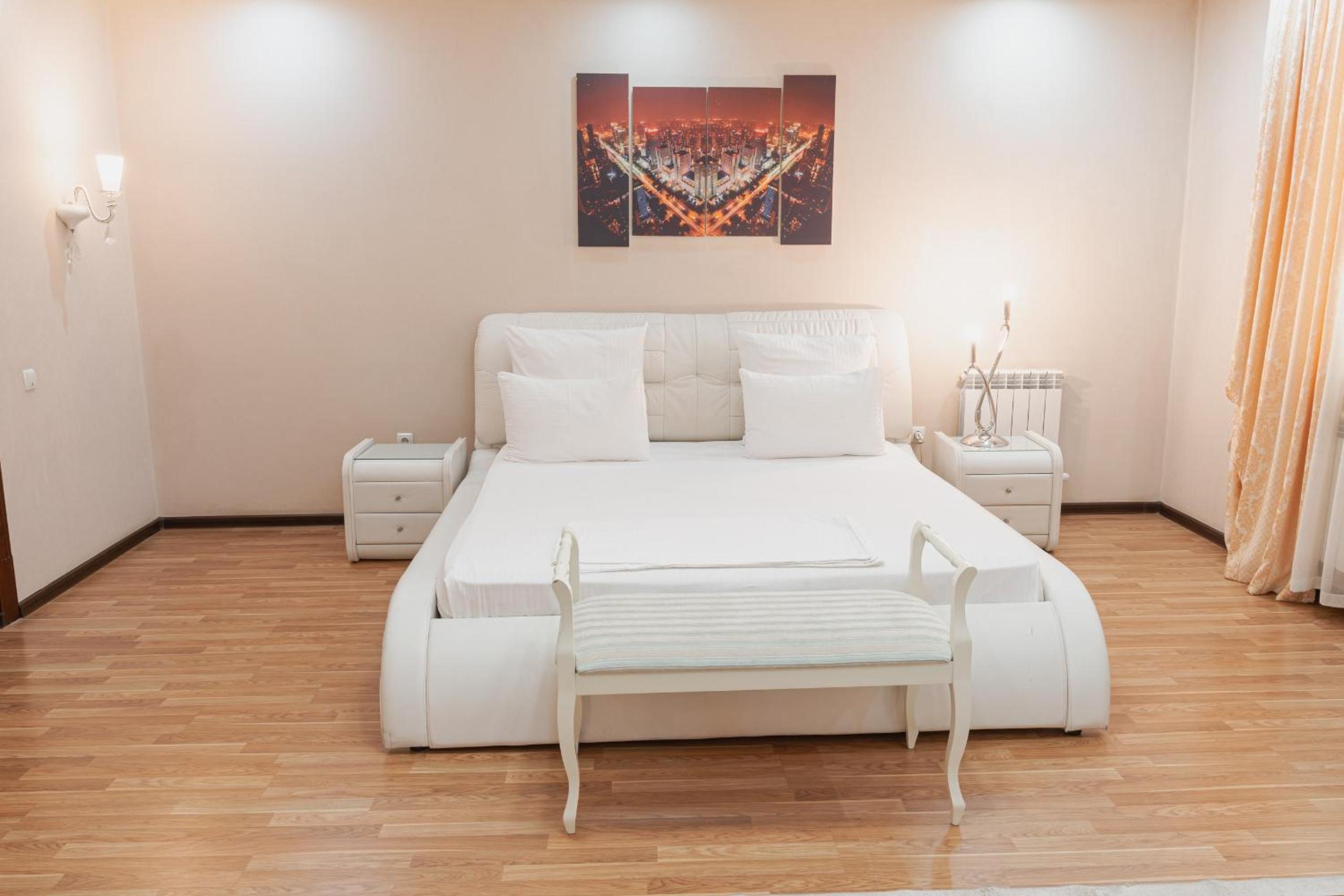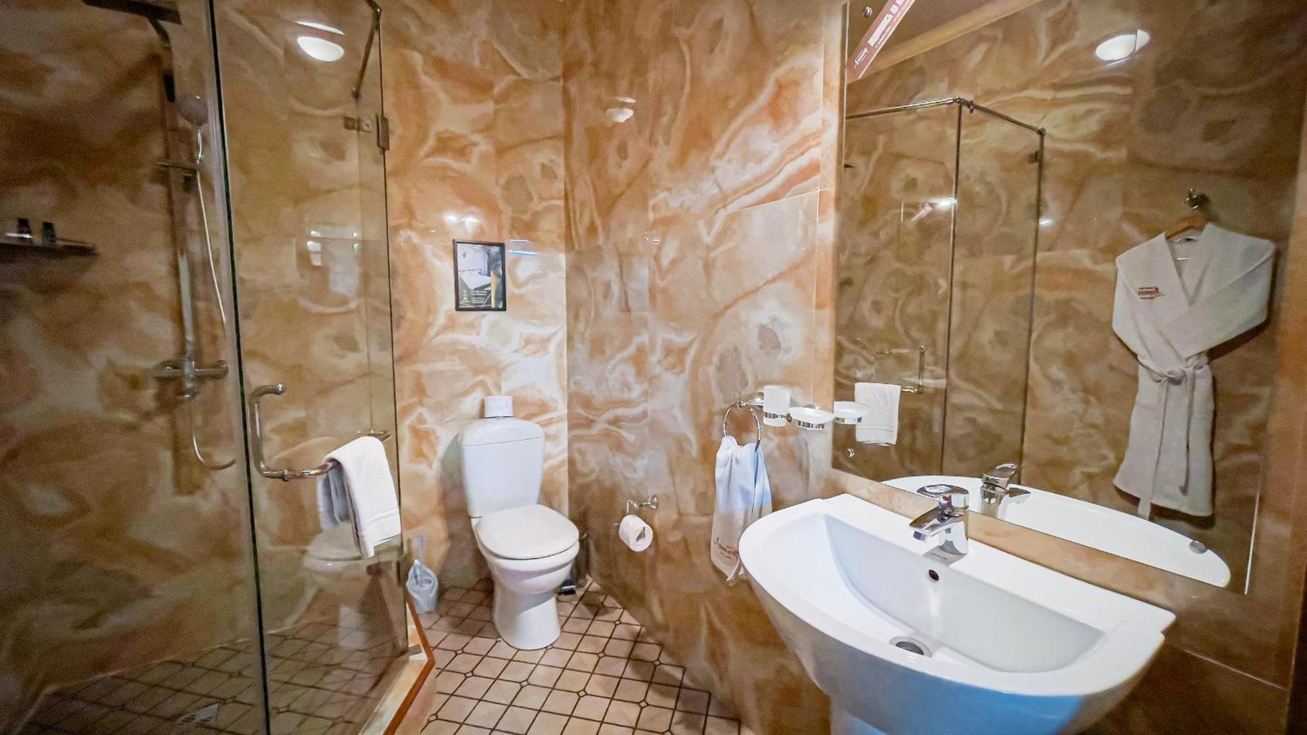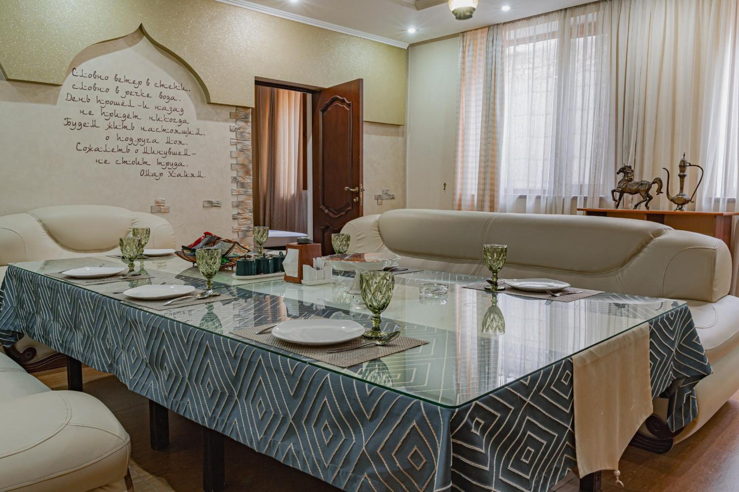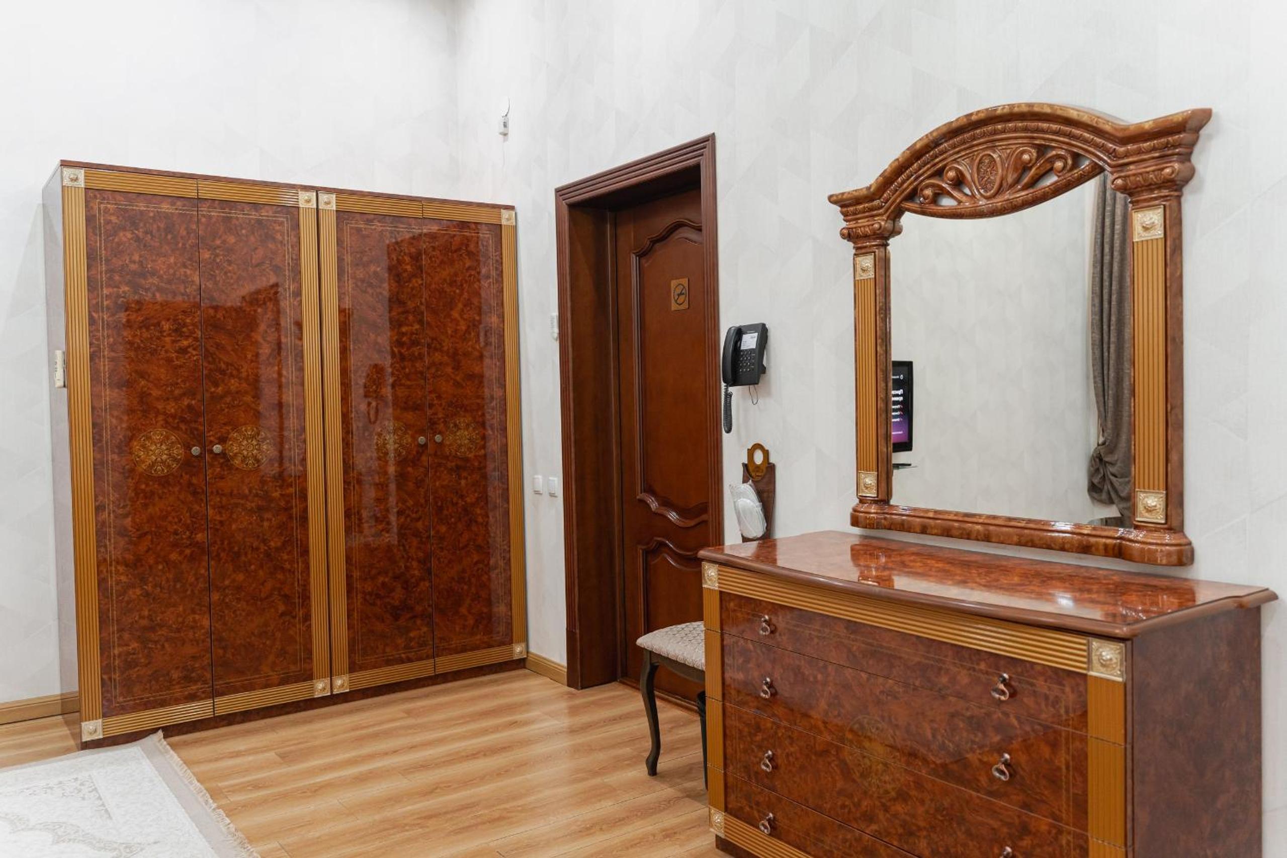 Altair Hotel, located just a 5-minute walk from Shymkent's central square, offers modern rooms with free WiFi access. The vibrant rooms and suites feature flat-screen TVs, minibars, and comfortable bedding options, including round beds in some rooms. The en suite bathrooms are equipped with complimentary toiletries, slippers, and hairdryers for guests' convenience.