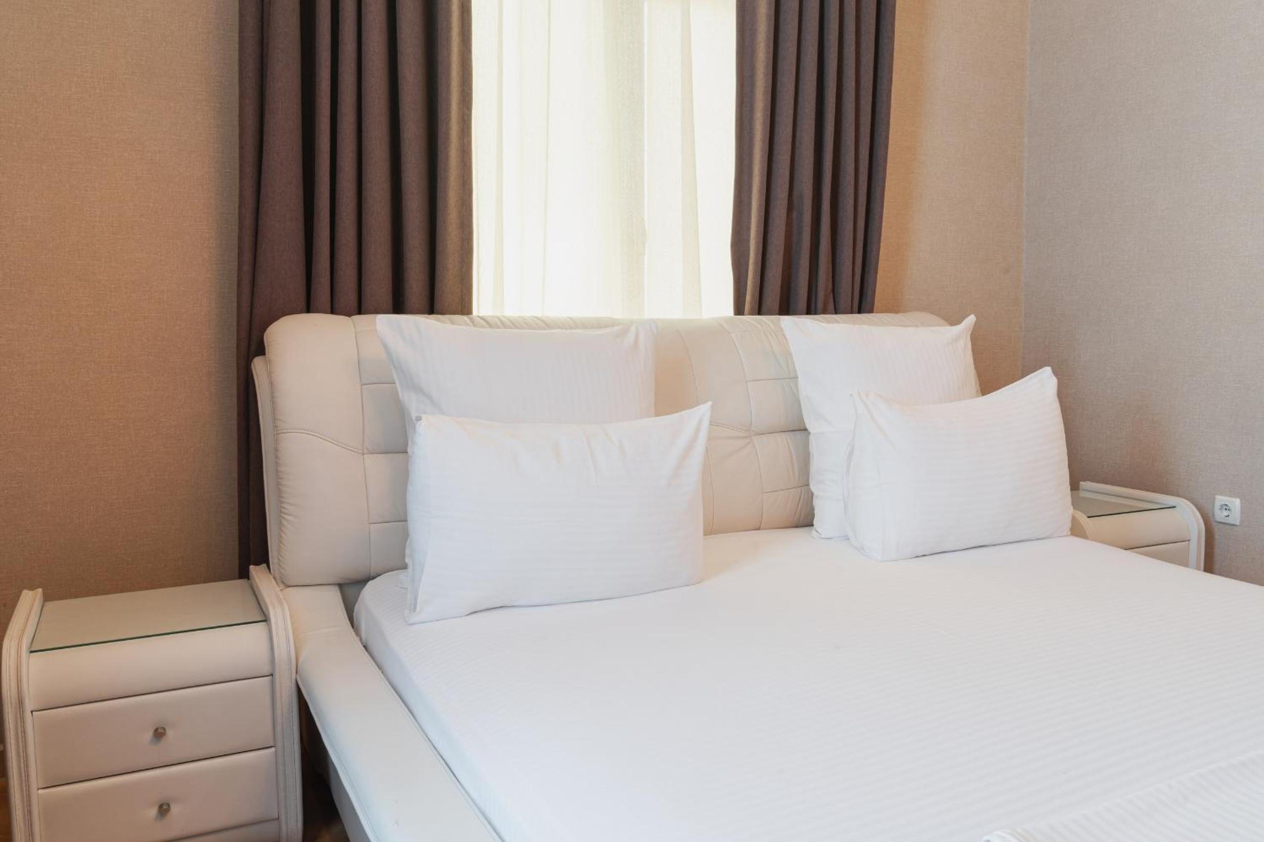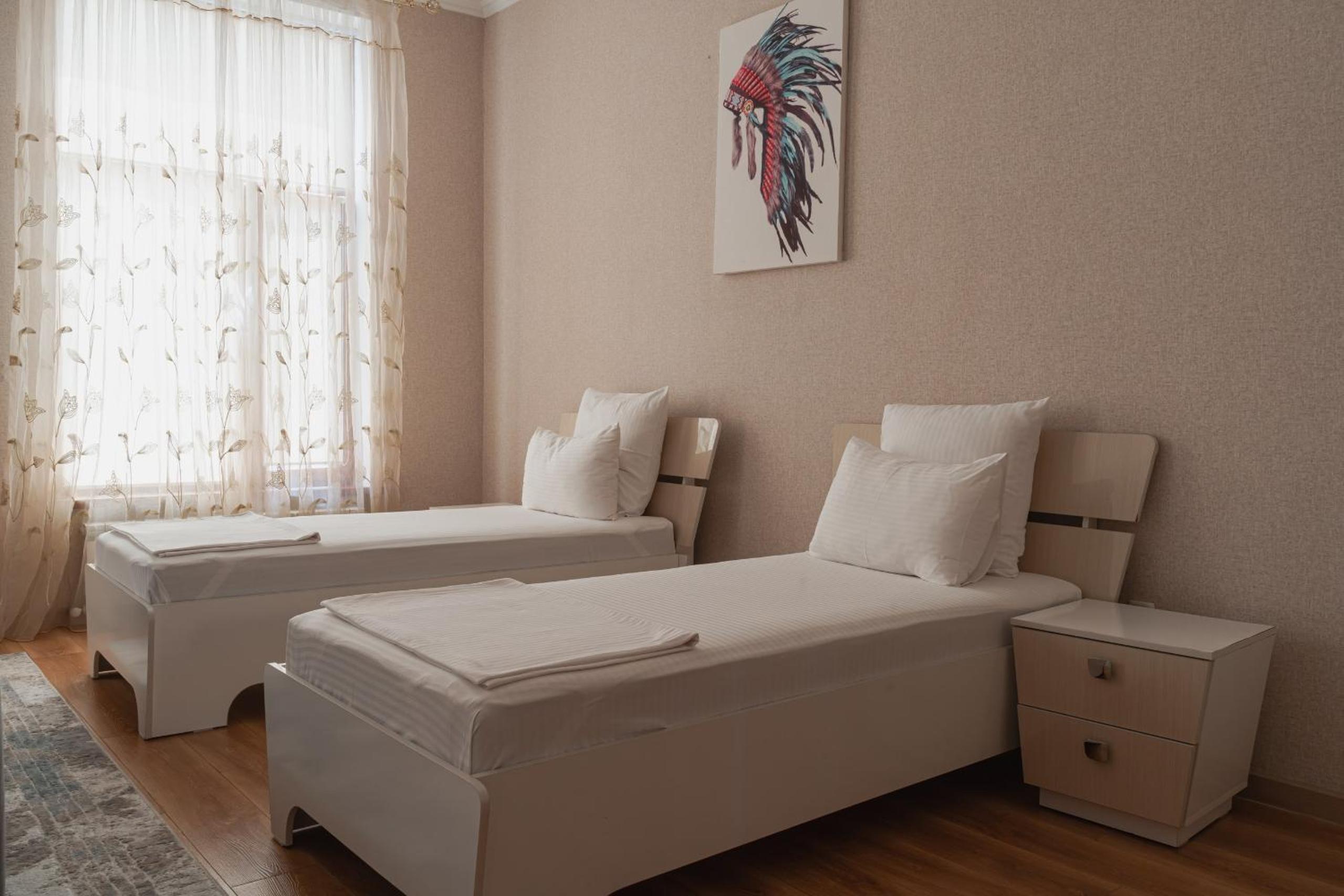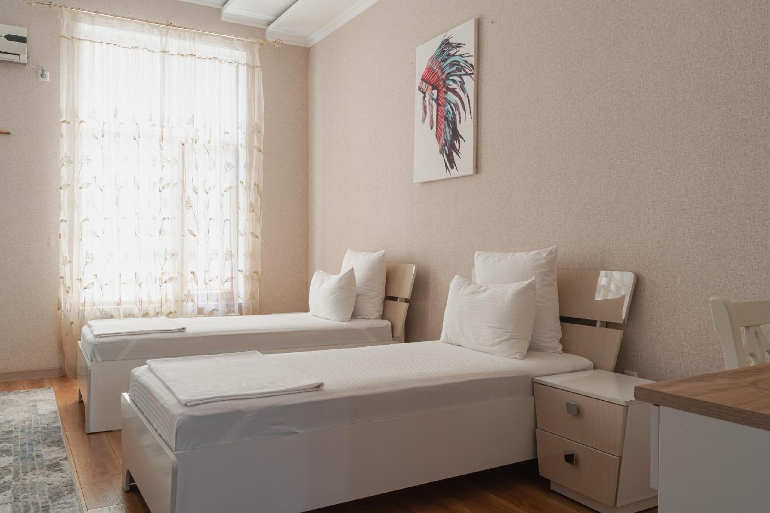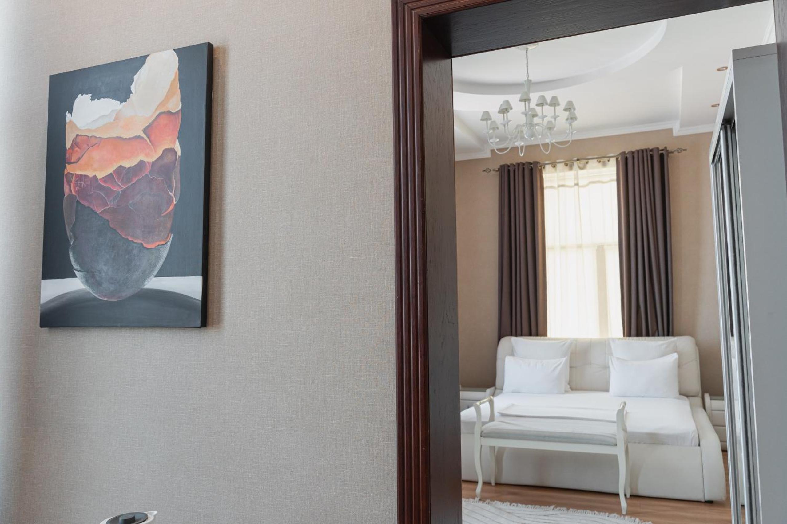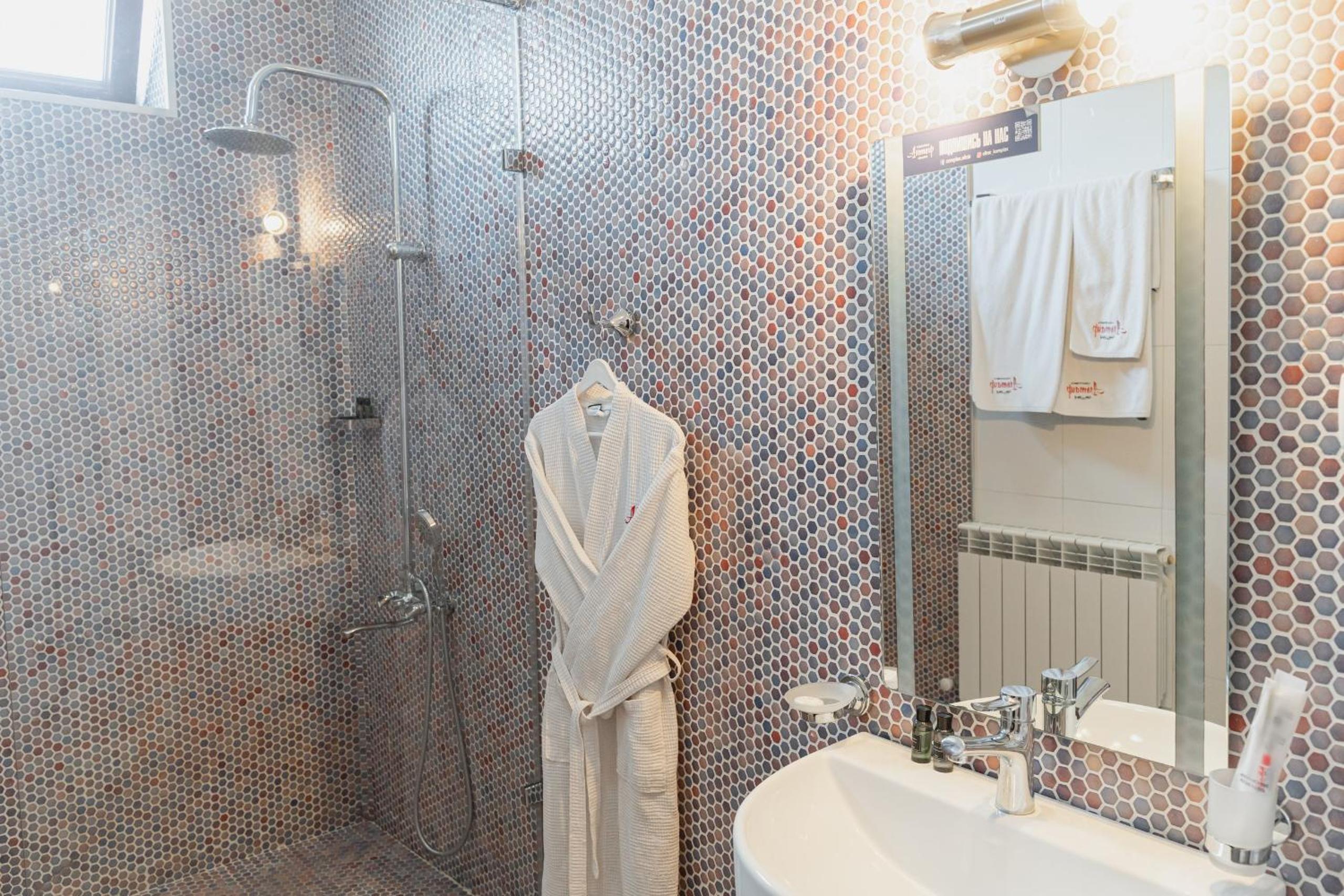 Altair Hotel, located just a 5-minute walk from Shymkent's central square, offers modern rooms with free WiFi access. The vibrant rooms and suites feature flat-screen TVs, minibars, and comfortable bedding options, including round beds in some rooms. The en suite bathrooms are equipped with complimentary toiletries, slippers, and hairdryers for guests' convenience.