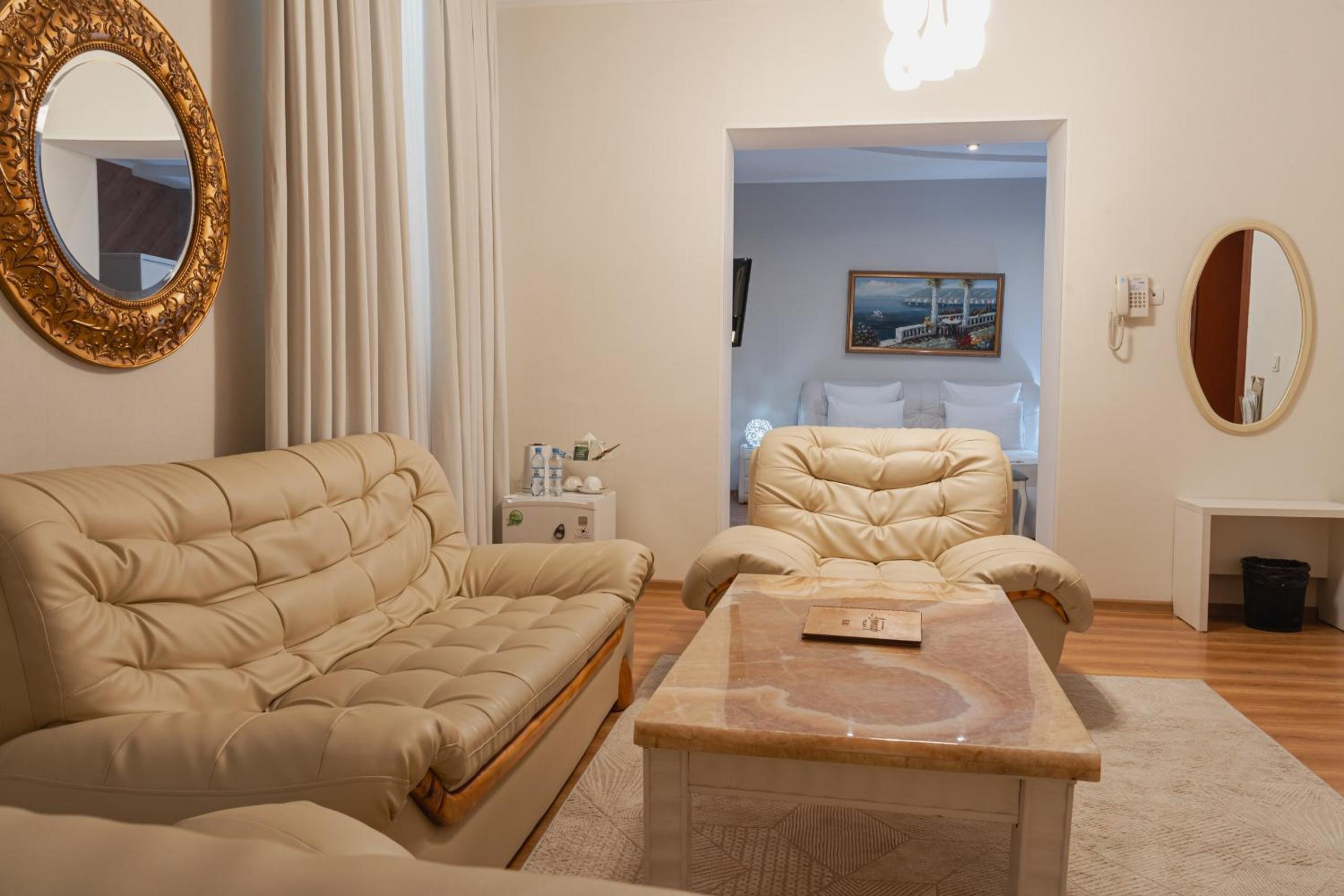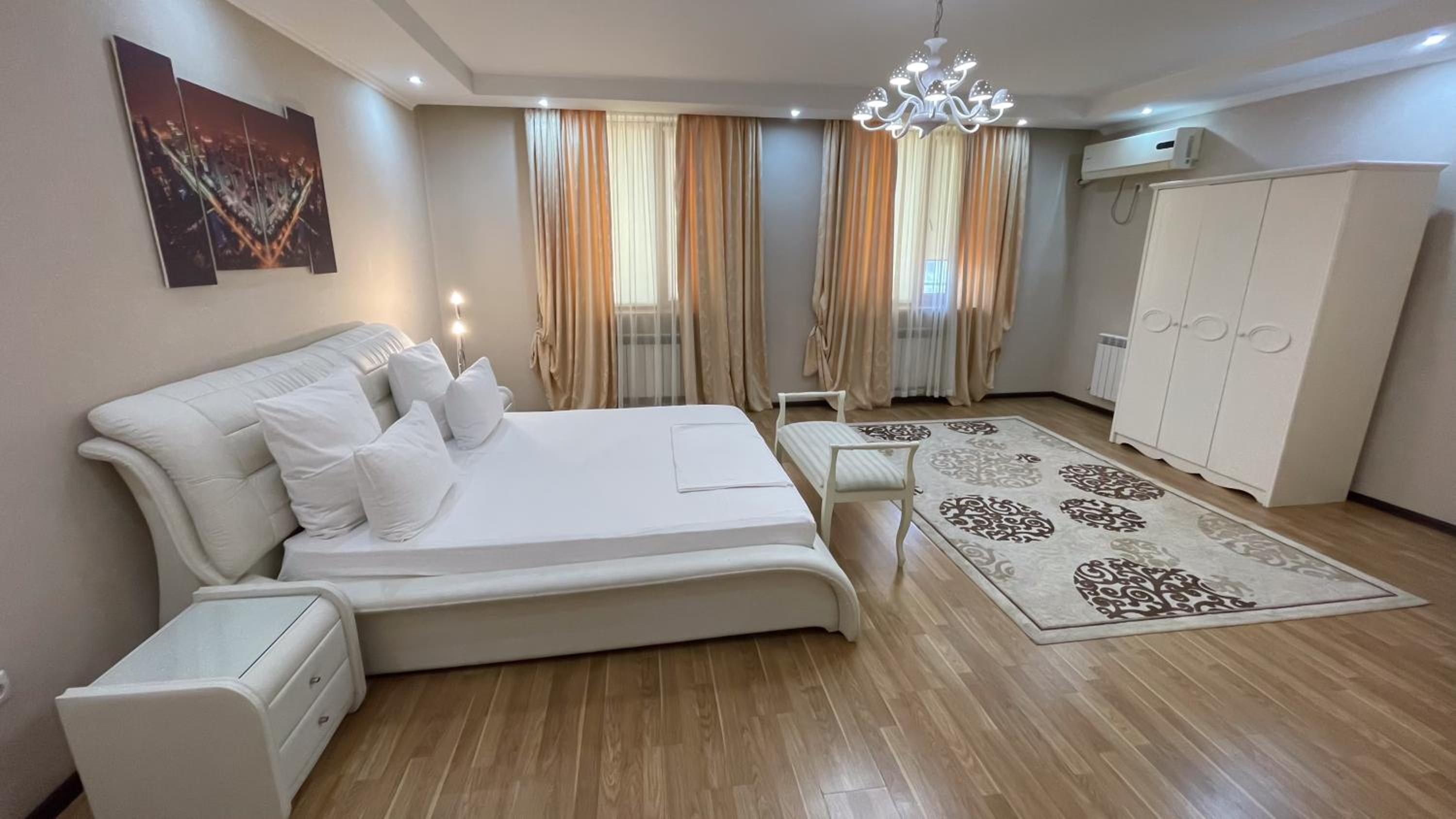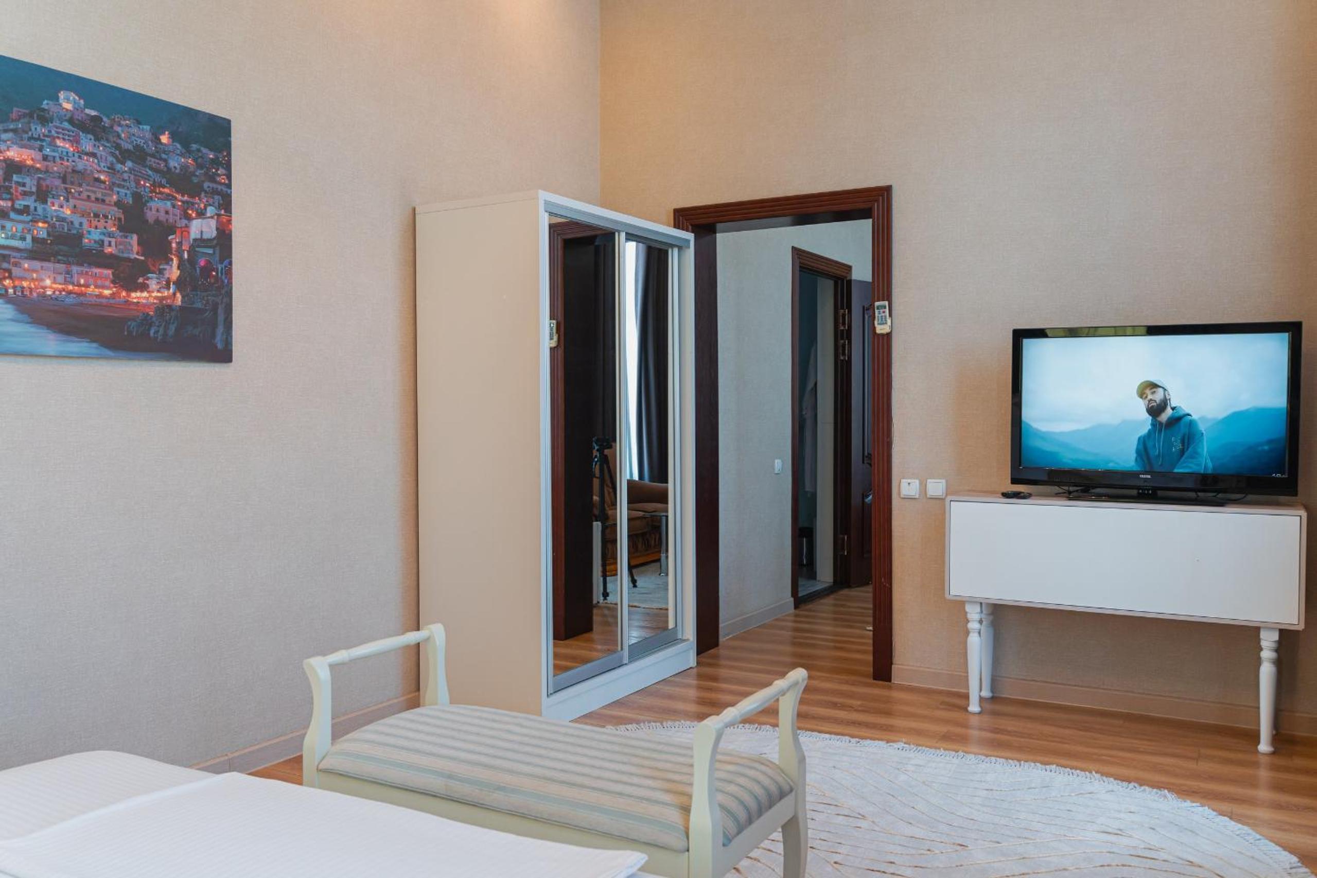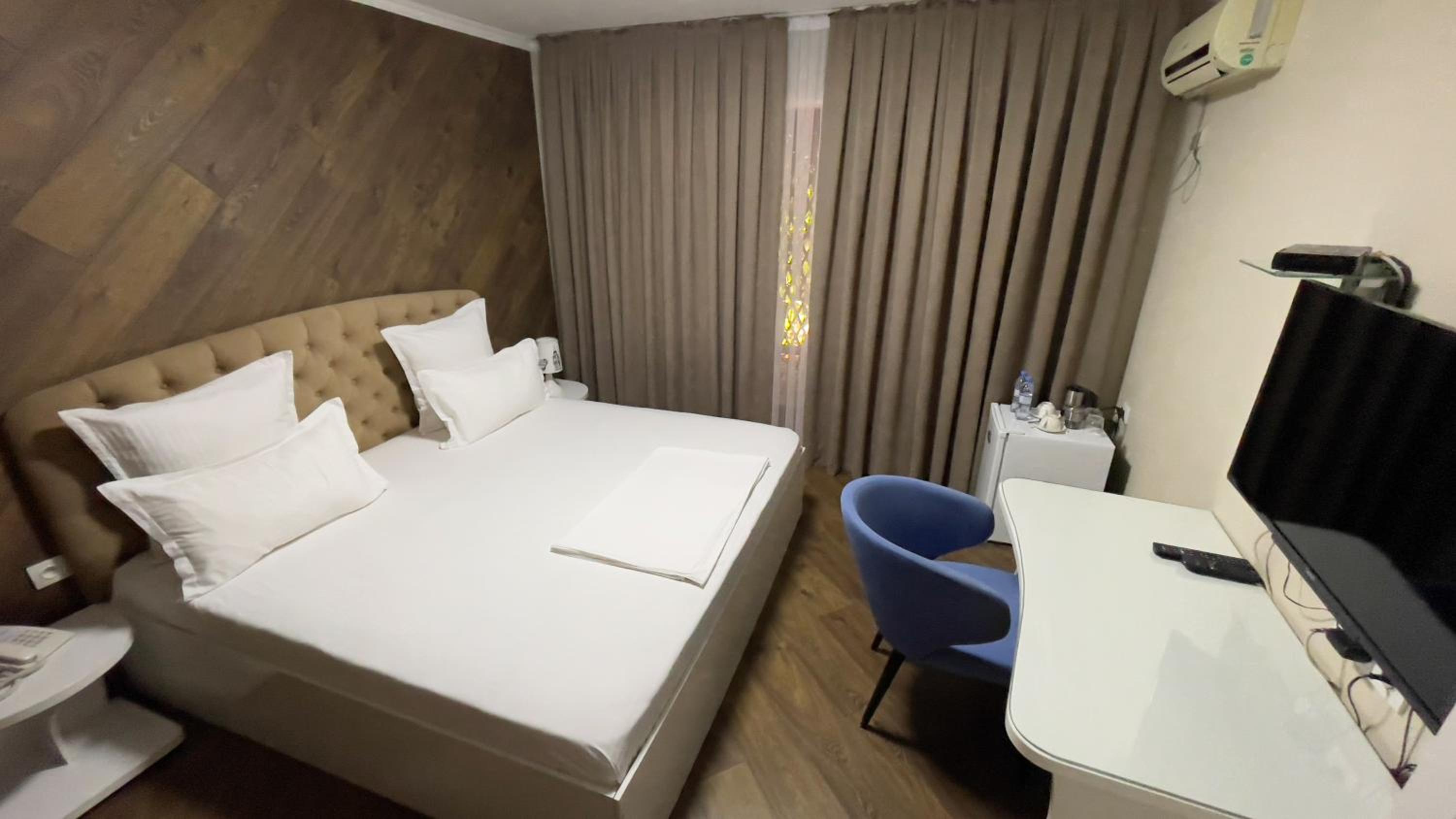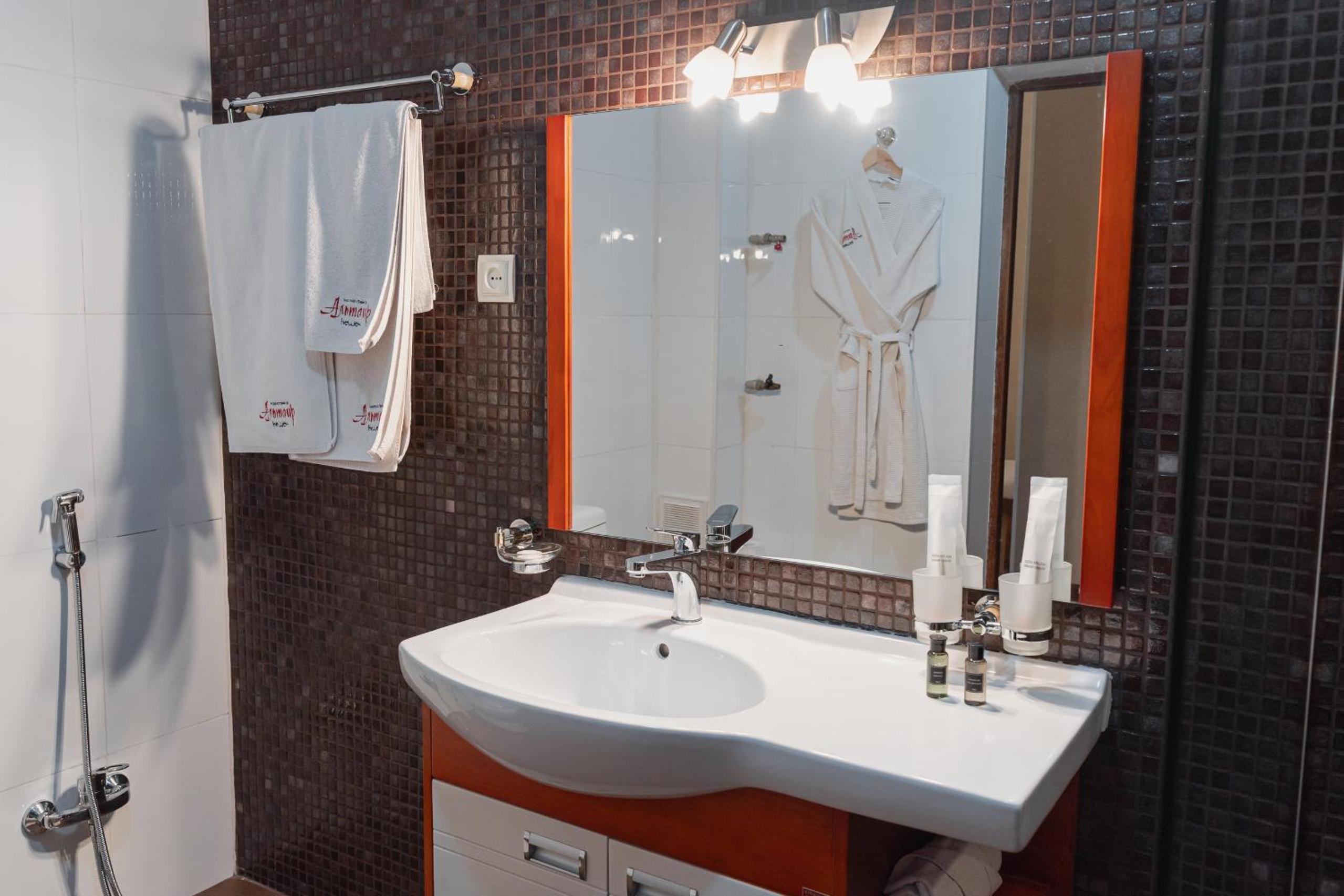 Altair Hotel, located just a 5-minute walk from Shymkent's central square, offers modern rooms with free WiFi access. The vibrant rooms and suites feature flat-screen TVs, minibars, and comfortable bedding options, including round beds in some rooms. The en suite bathrooms are equipped with complimentary toiletries, slippers, and hairdryers for guests' convenience.
