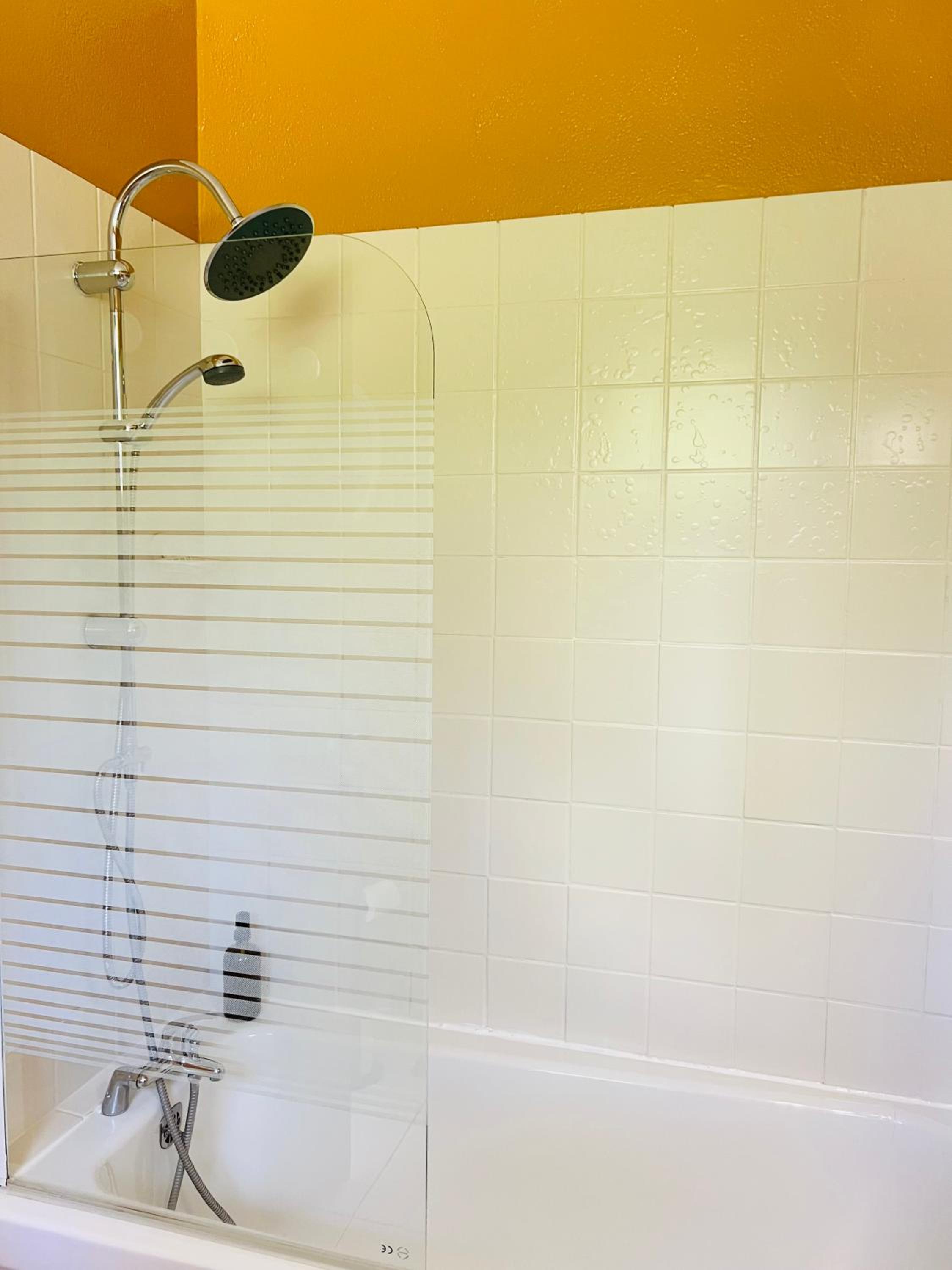 La douche vieillissante mais les propriétaires font des travaux petit à petit.