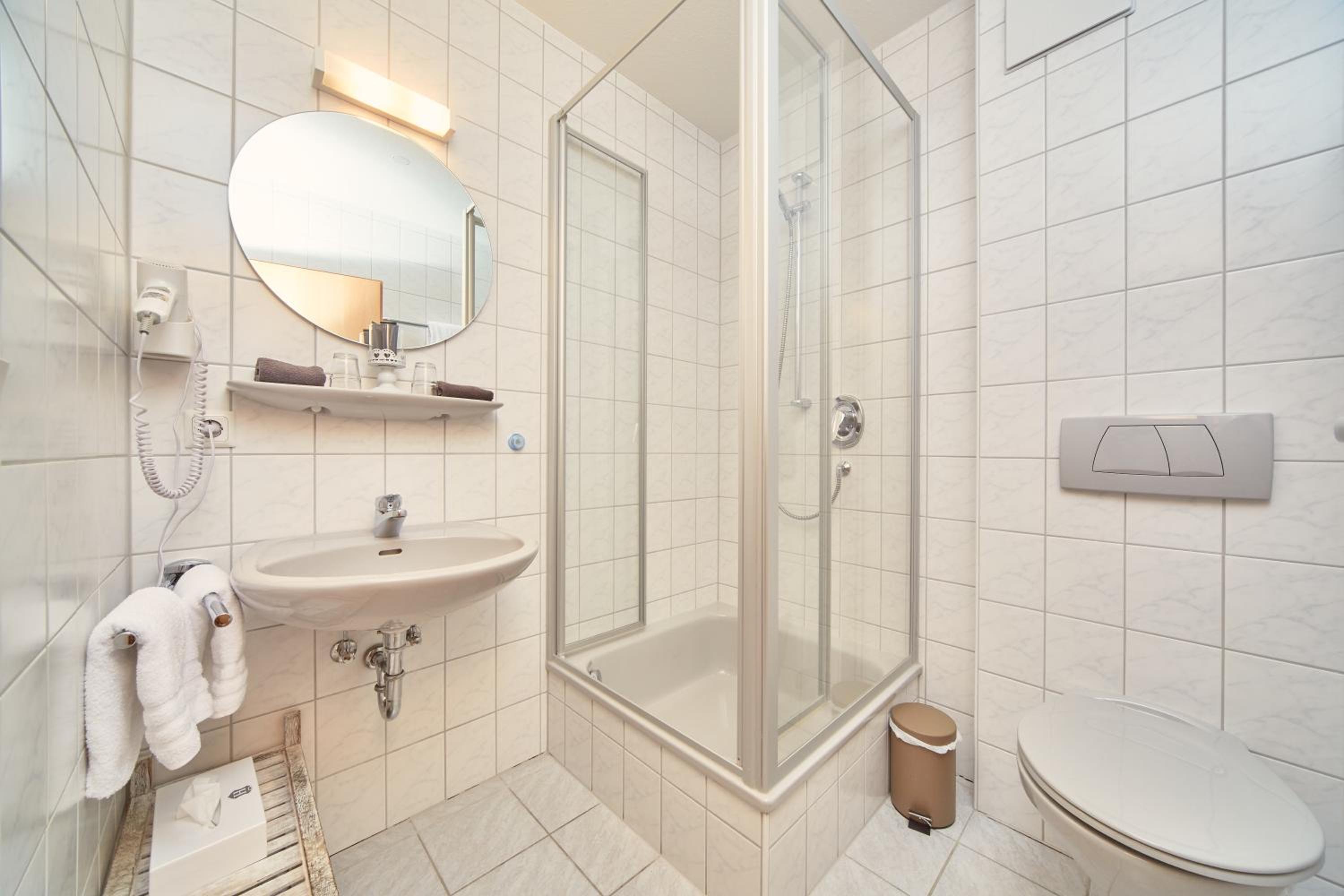 Large, well appointed rooms. Very clean with a large bathroom and comfortable beds. Host was very kind and helpful, even though her English was as limited as my German. Elevator in this little hotel was a lovely bonus.