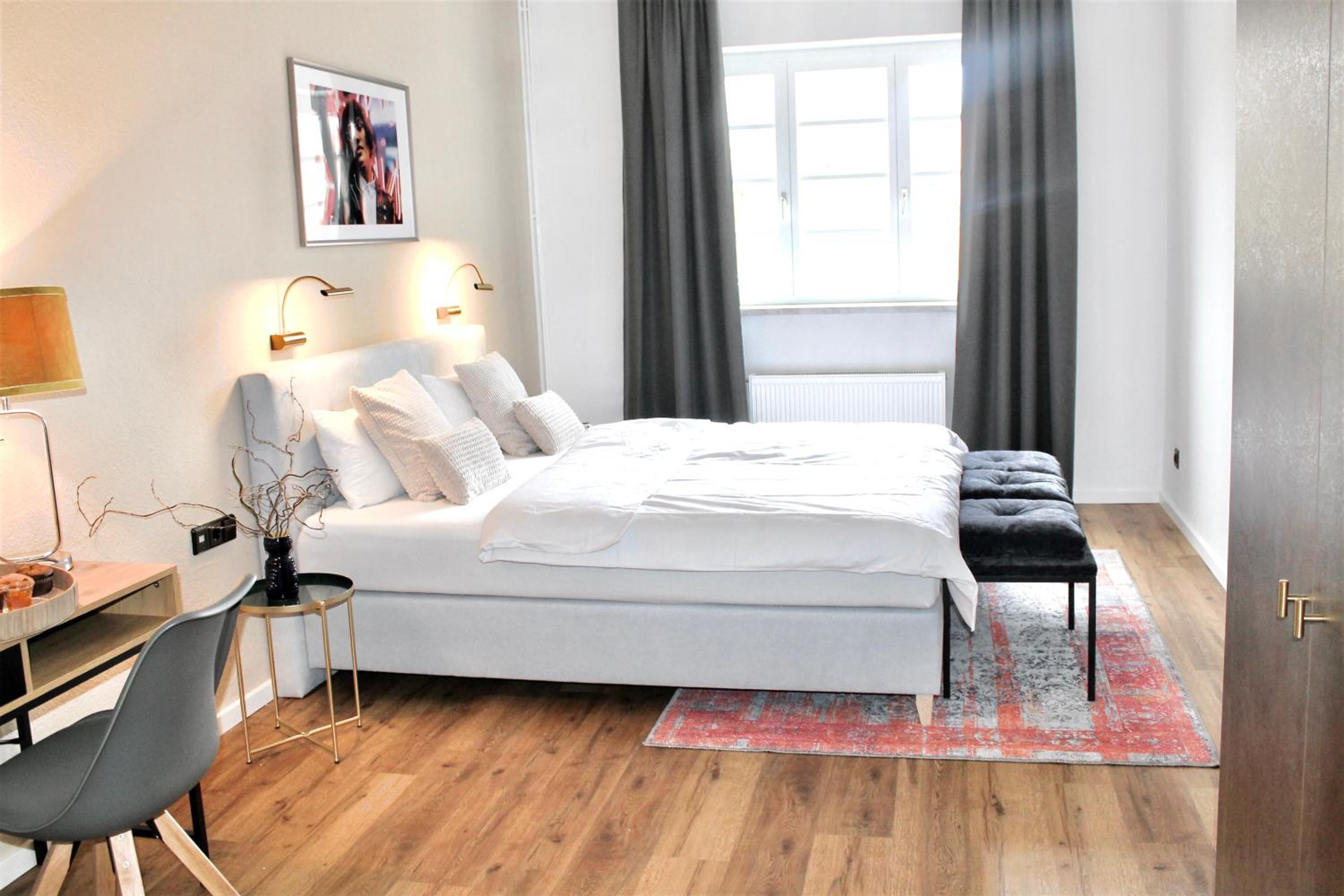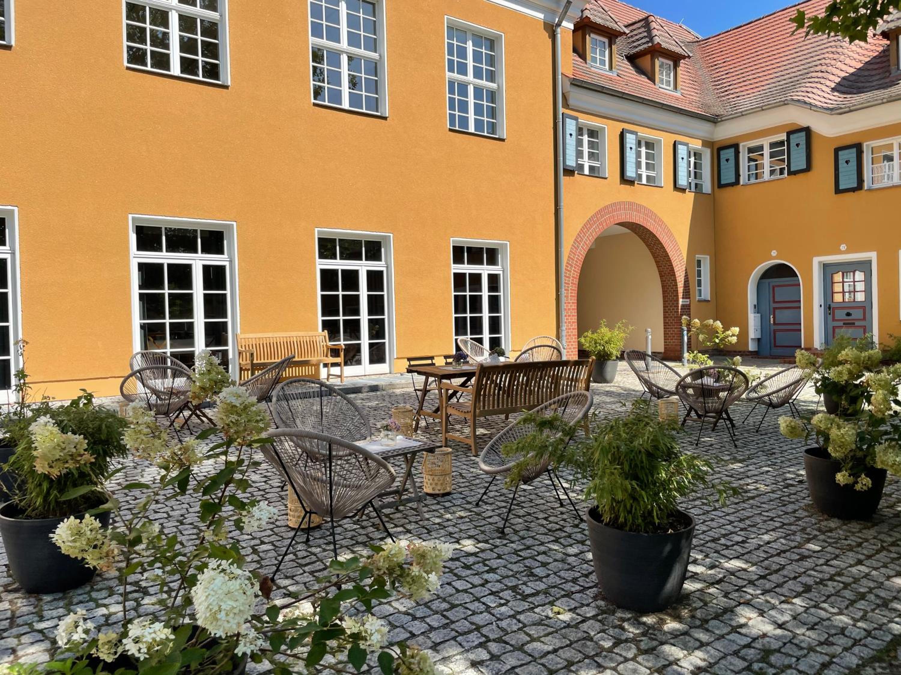 Sehr stilvolles Gebäudeensemble mit Geschichte - Hotel "über den Hof". Frisches Interieur. Sehr leckeres Frühstück. Freundliches, unkompliziertes Personal. Kostenlose Parkplätze direkt vor der Tür