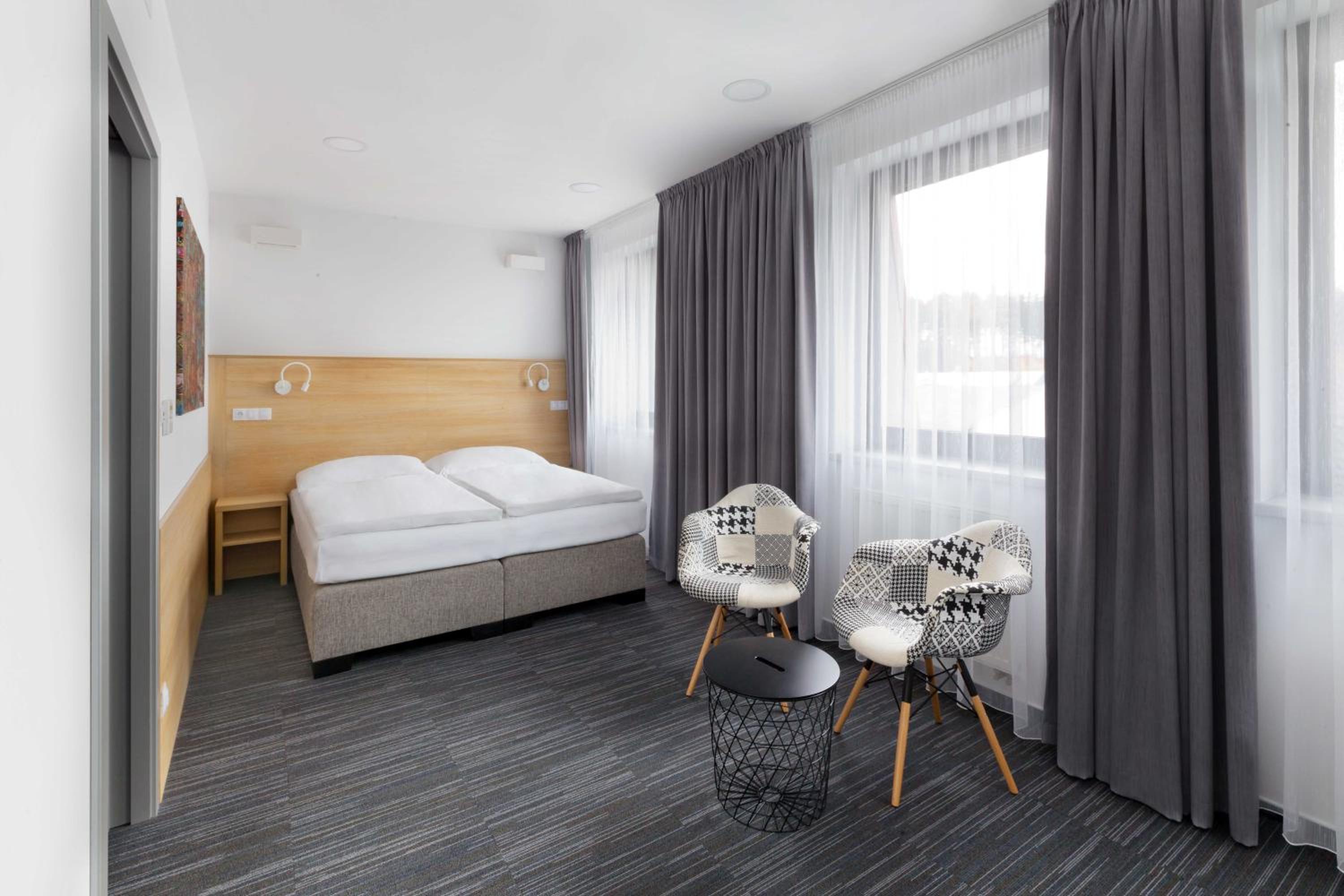 Moderní hotýlek, na kraji města s wellness centrem (za příplatek). Parkování před a za hotelem zdarma. Milý a ochotný personál. Velmi dobré snídaně formou studeného i teplého bufetu, dobrá káva.