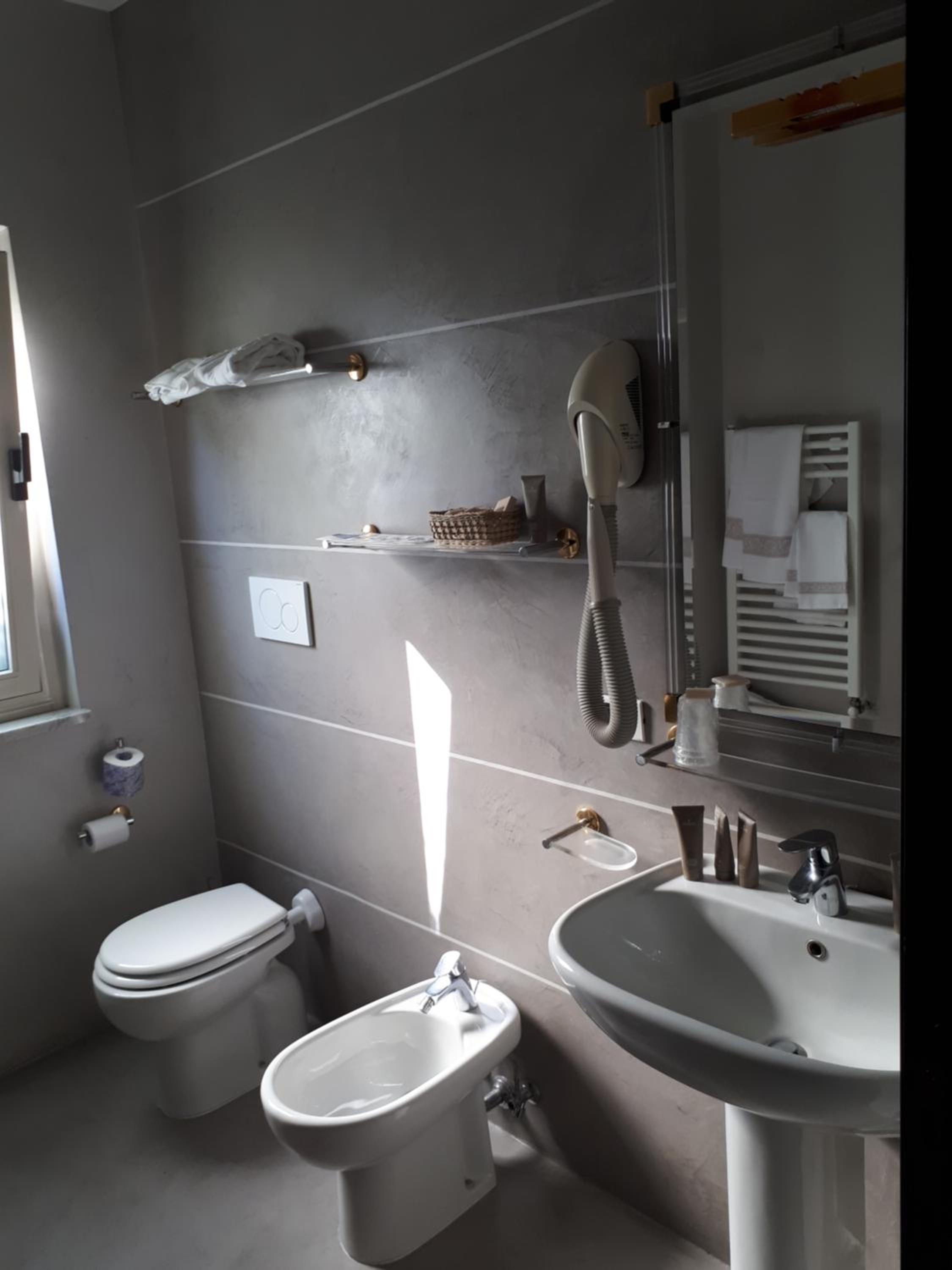Bagno essenziale, forse un po' datato.