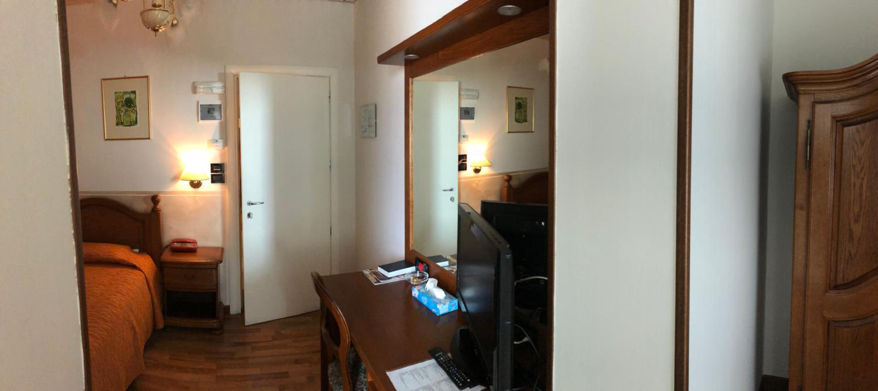 Ottimo posizione a 2 minuti a piedi dal centro e dal ponte .. parcheggio per moto coperto adiacente l albergo..camera e bagno molto ampio e puliti