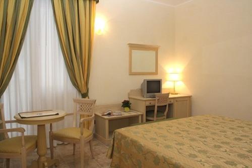 Premetto che non abbiamo cenato nella struttura. Il soggiorno è stato molto buono,nonostante la camera un po' datata. La colazione direi ottima,vista la presenza anche di prodotti senza glutine. È un albergo che ha conosciuto sicuramente alti prestigi,vista la presenza di numerosissime foto di personaggi famosi dagli anni 60 e anni 80. Ciò nonostante ora avrebbe bisogno di un restyling,visto che la camera che mi ha ospitato è molto datata.