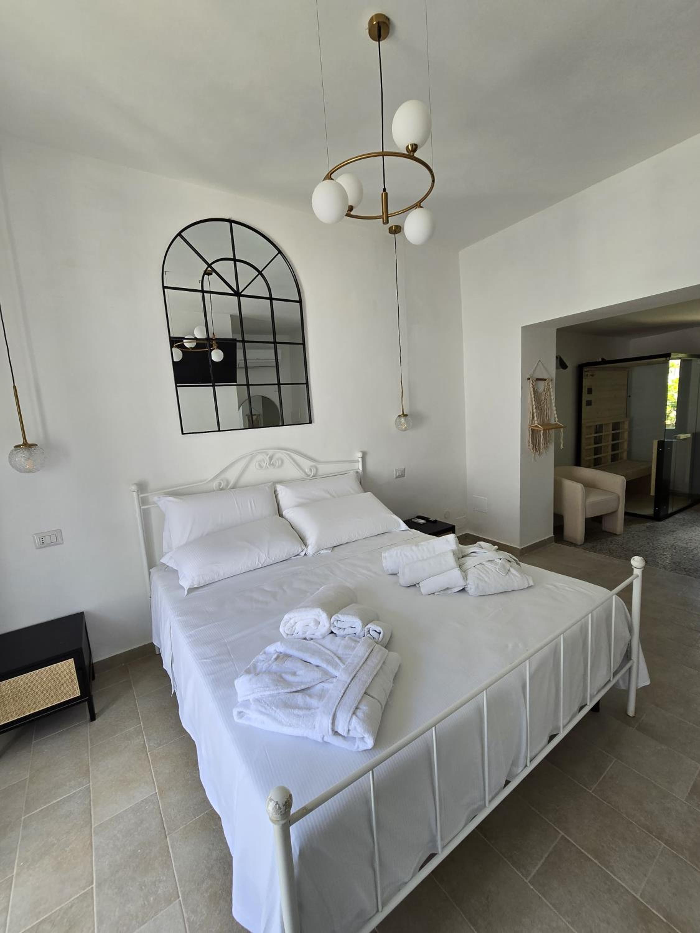 Terra Muronis Hotel Diffuso in Castel Morrone offers a luxurious stay just 11 km from the Royal Palace of Caserta. Guests can enjoy air-conditioned rooms equipped with modern amenities like a flat-screen TV, minibar, and private bathroom. The hotel also provides free WiFi, room service, and a concierge service for a comfortable stay.