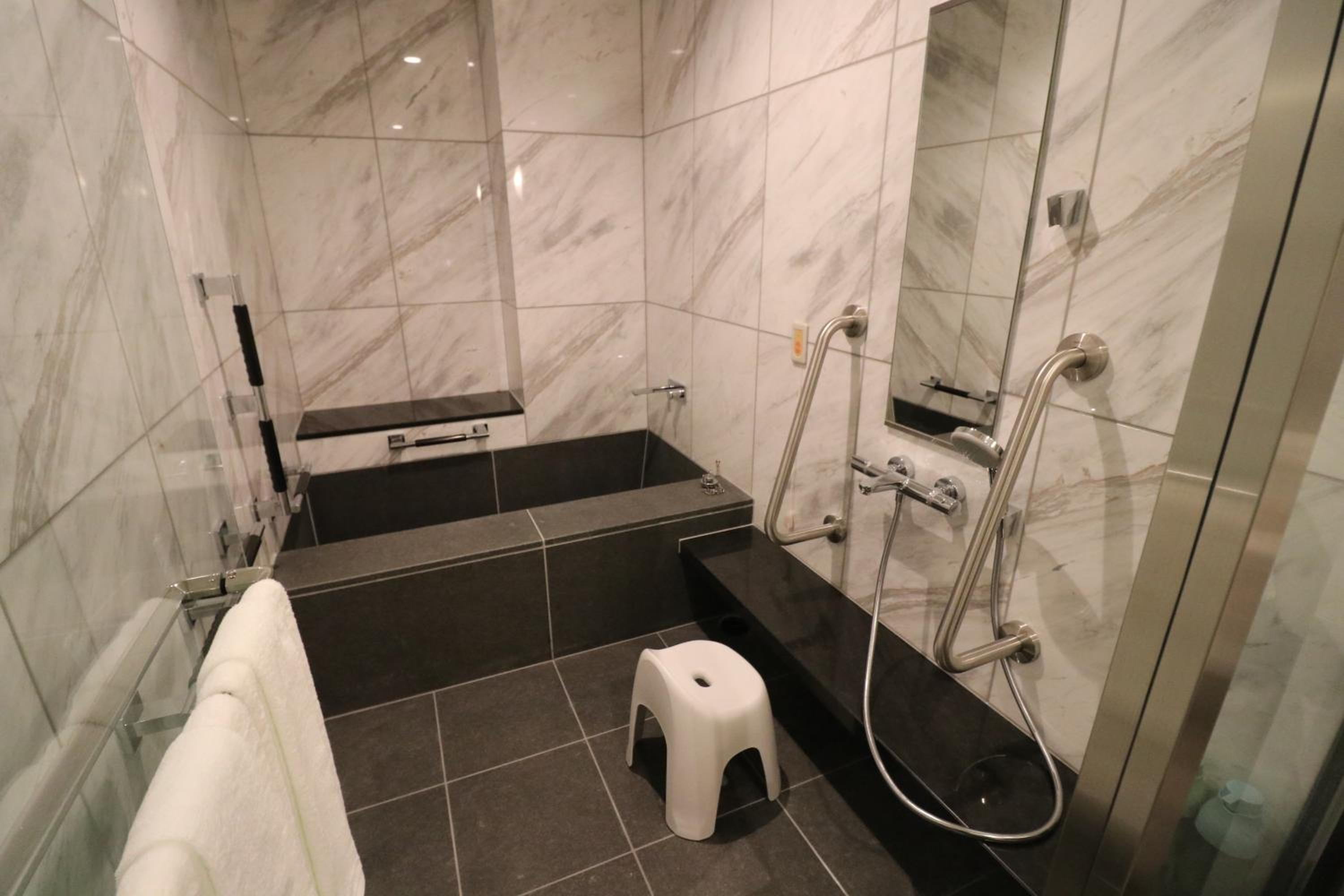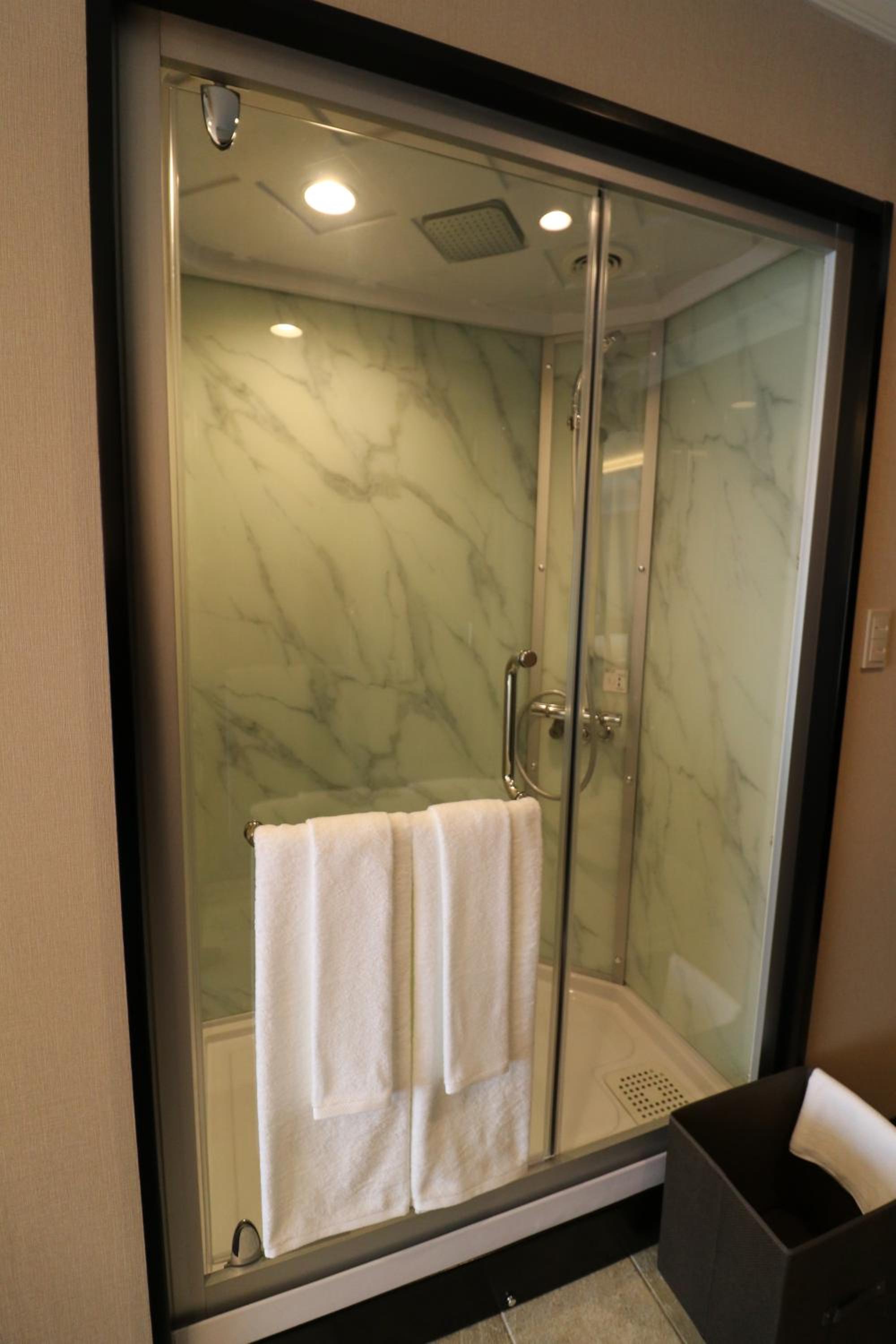 The shower was not in a separate room / no privacy.