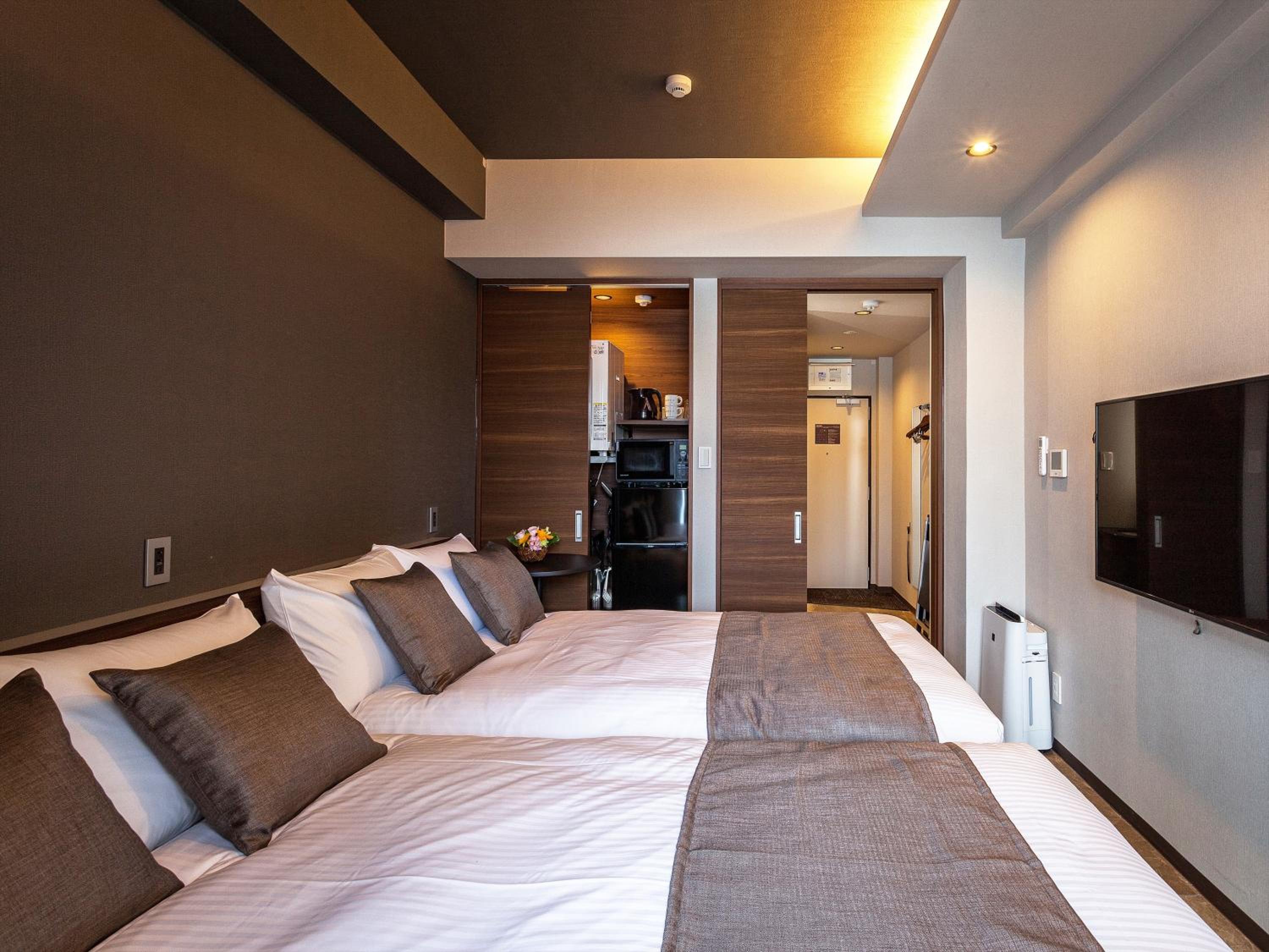 飯店及房間都很乾淨,2張雙人床,床也很舒服, 隔音不錯 沒有聽到隔壁的聲音。
