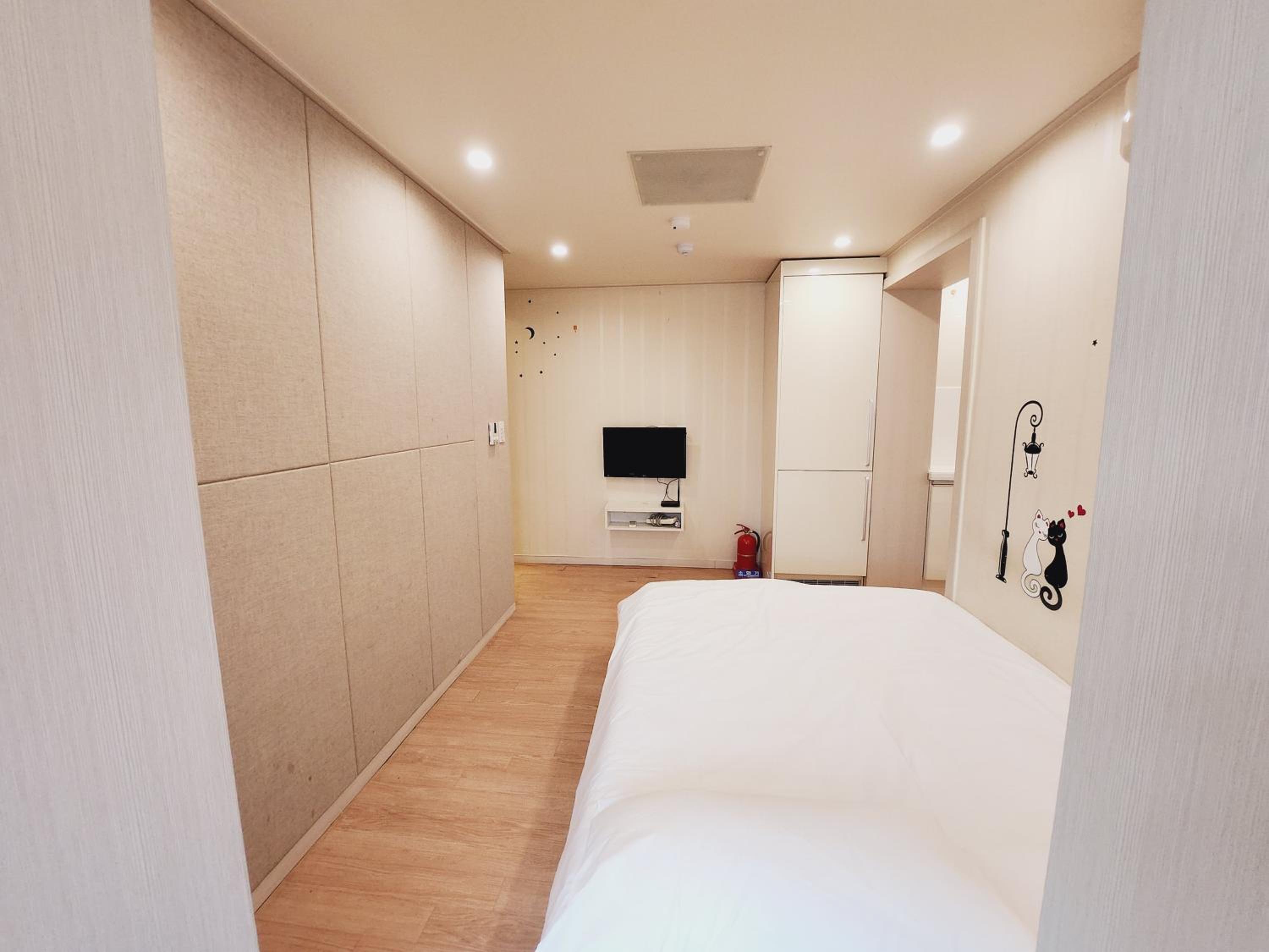 Being in meyongdong is nice. There's alot to do in the area and a good subway stop fairly close. The room had a big fridge and freezer, plus dishes if you want to eat in the room