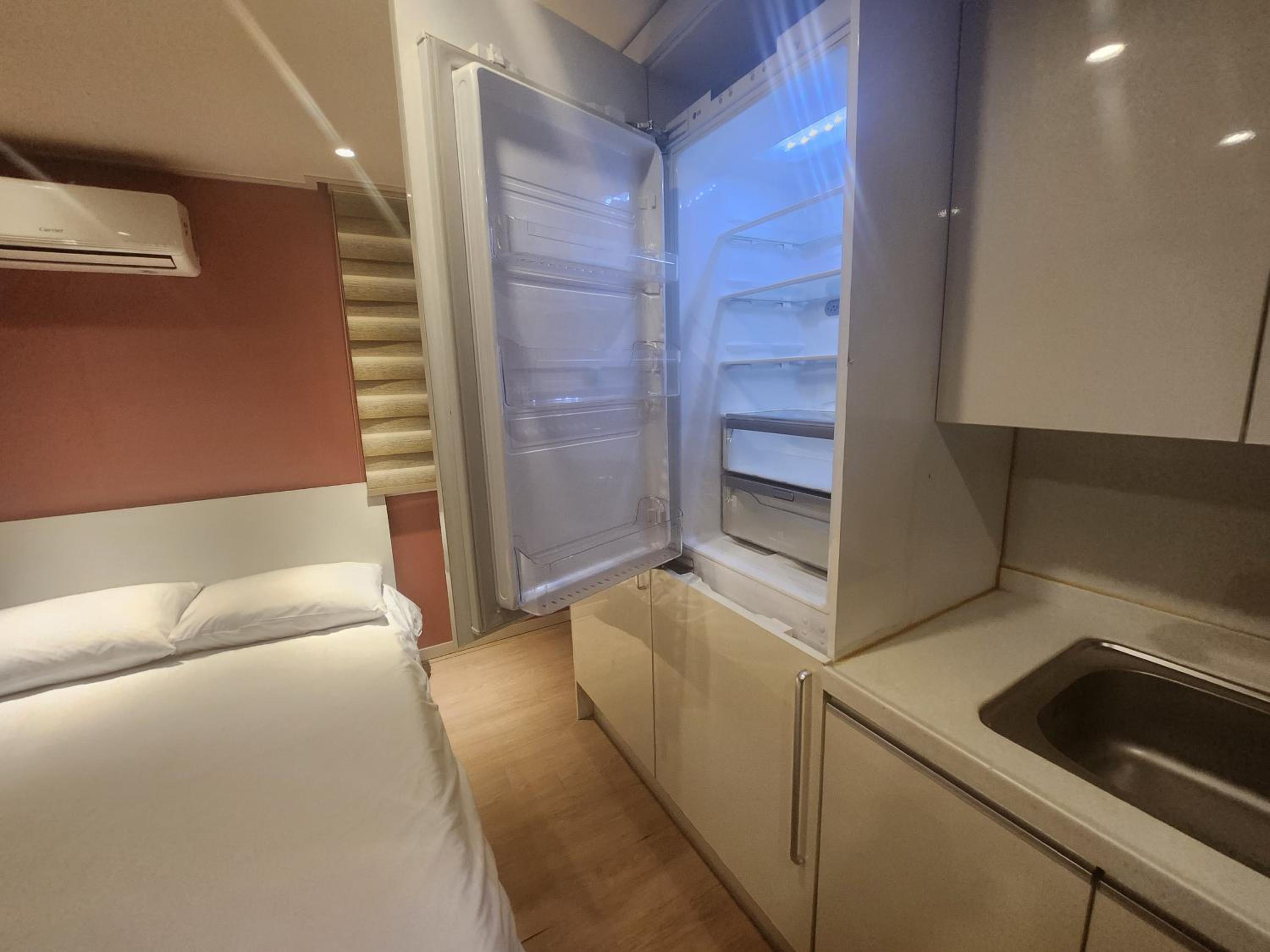 You're up a pretty big hill so it's a tough walk back from the subway. The shower head is too small and not enjoyable. A nicer $20 USD would be advised. The heating was inconsistent. Hotter than we set the temp for the first 2 days so we had to open windows too.. The towels were hand towel sized, so drying off after a shower was hard / annoying. There was no free laundry detergent like they said. Not much room for a suitcase/clothing storage either. The bed blocked room extension which made it hard to use part of the room.