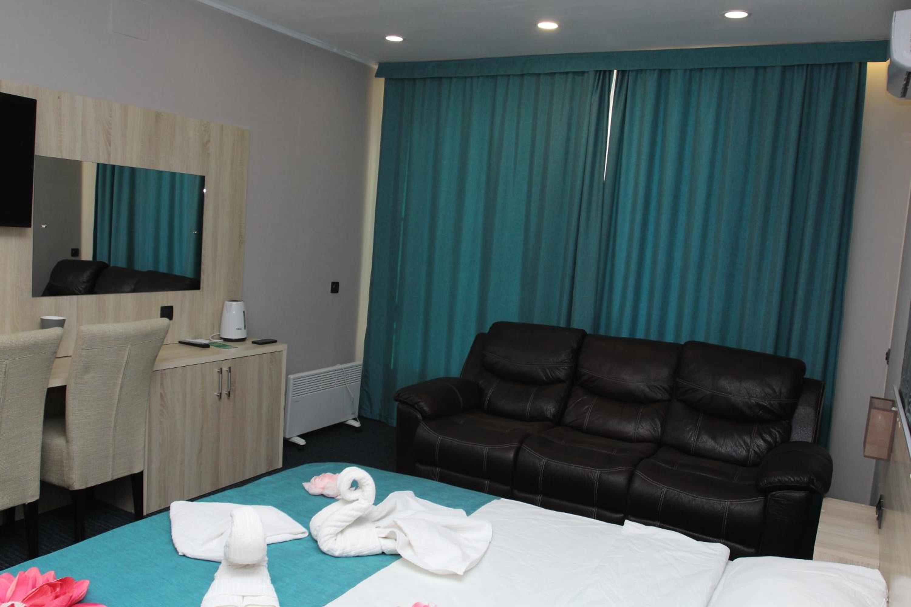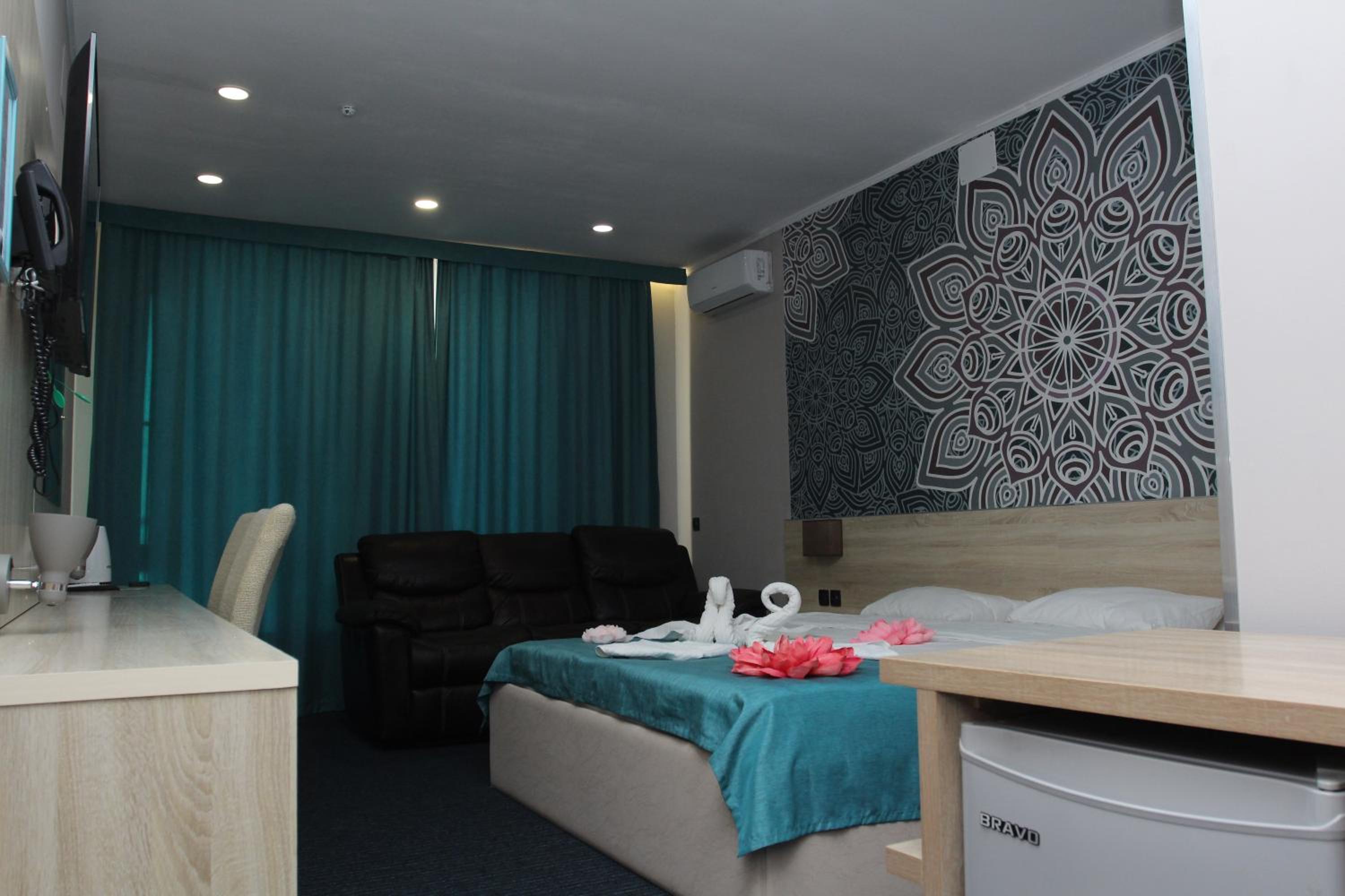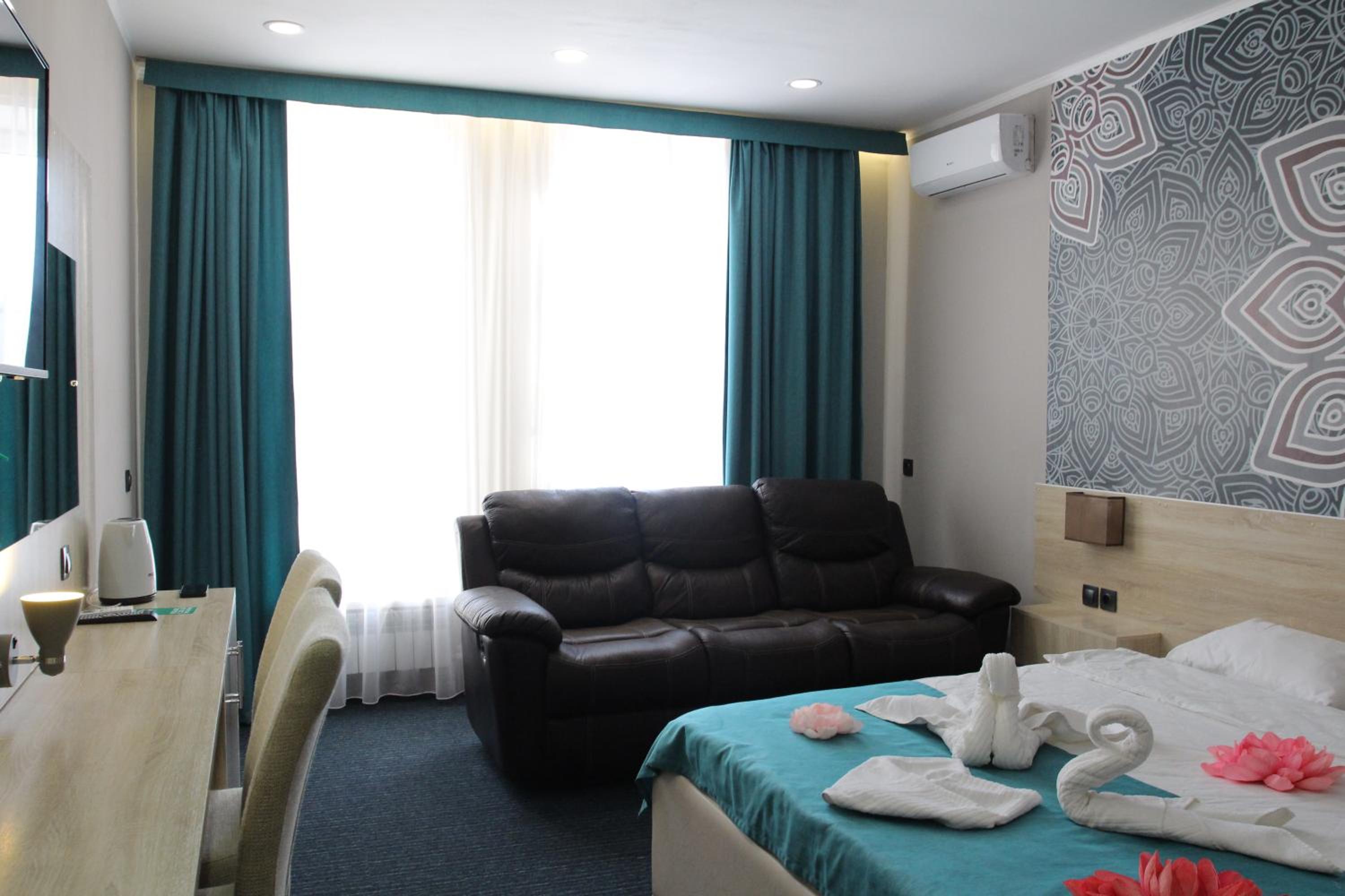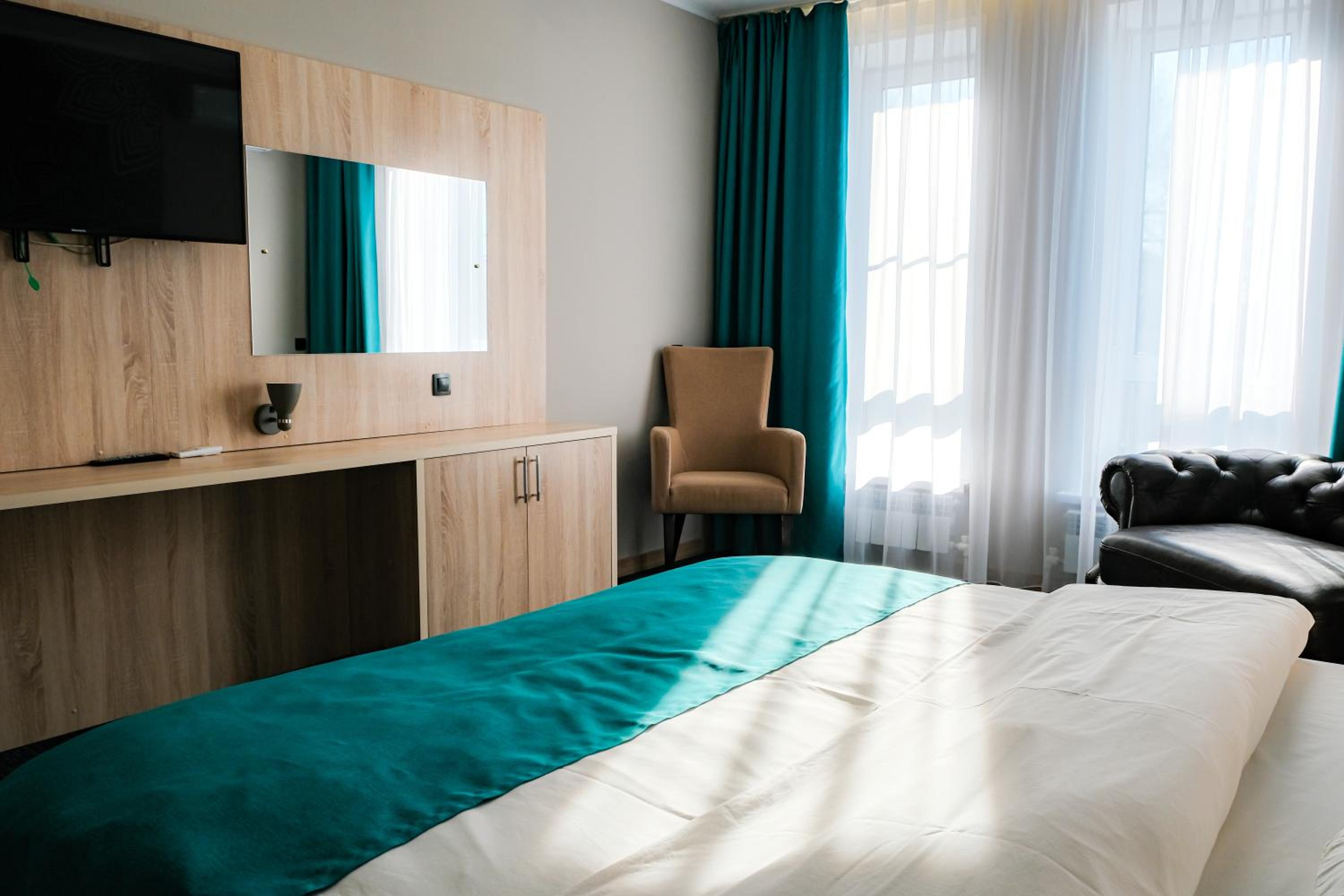 Each room at Altyn Shatyr Hotel is thoughtfully designed with a wardrobe, flat-screen TV, private bathroom, and cozy bed linens and towels. Some rooms even boast stunning city views, adding an extra touch of elegance to your experience.