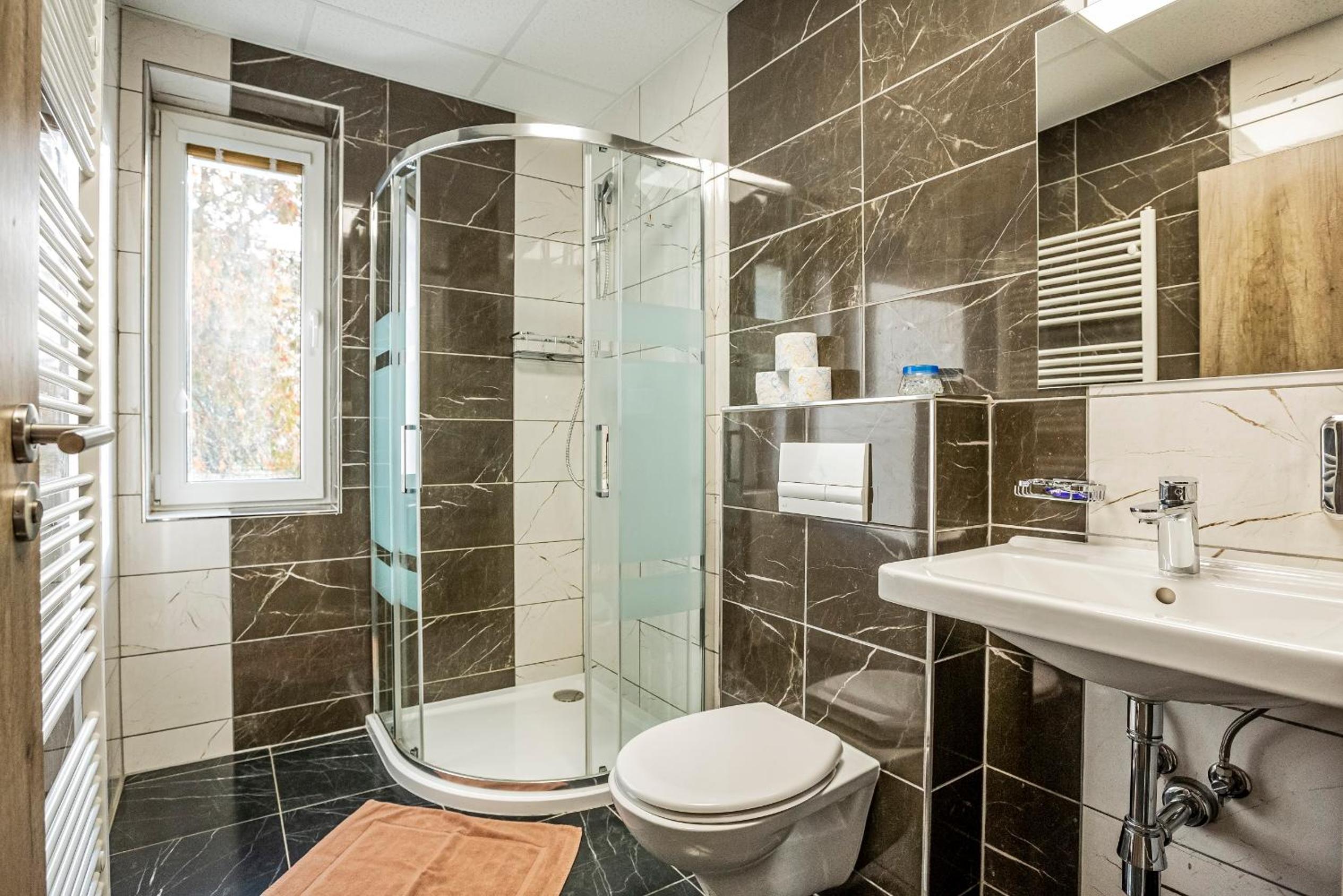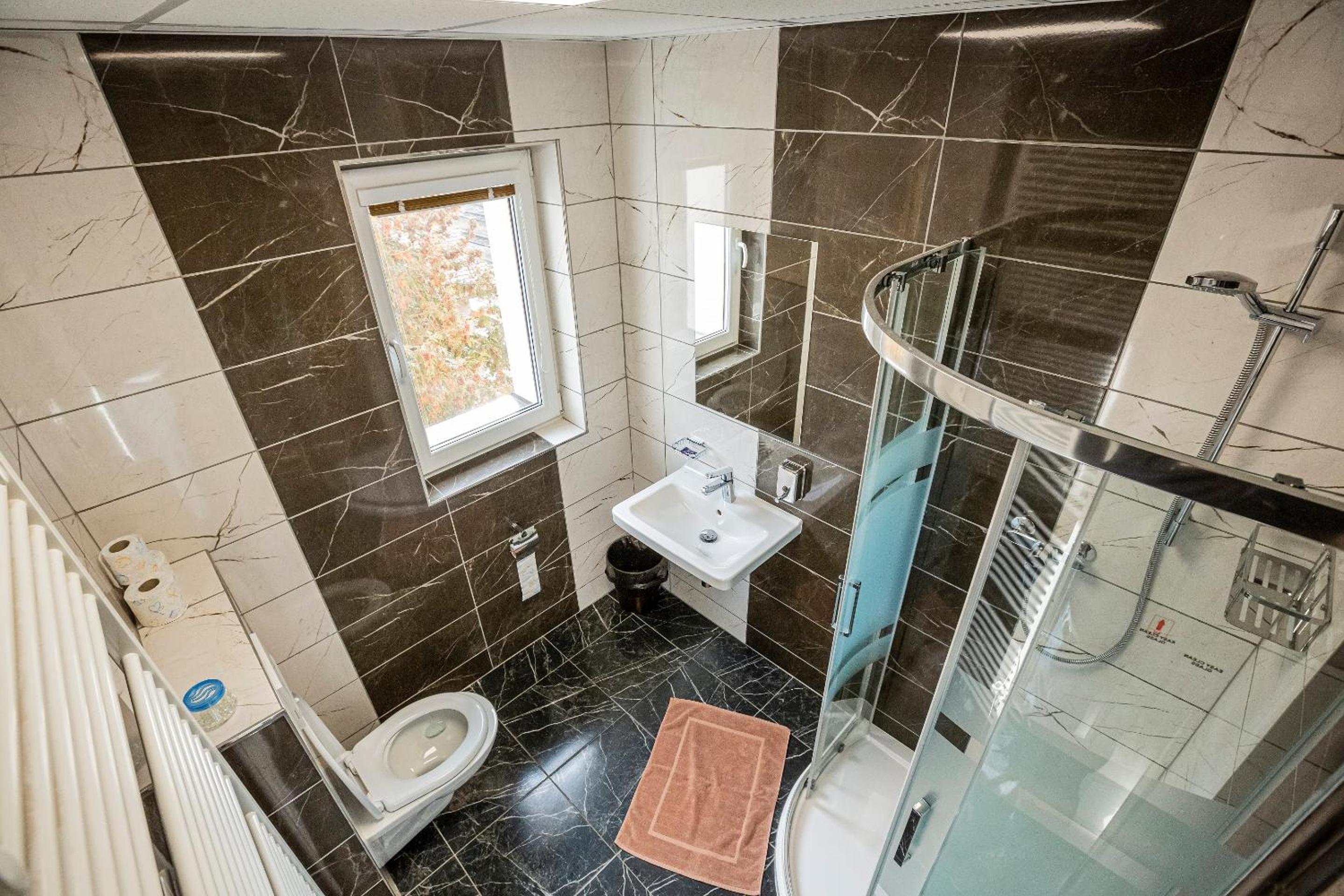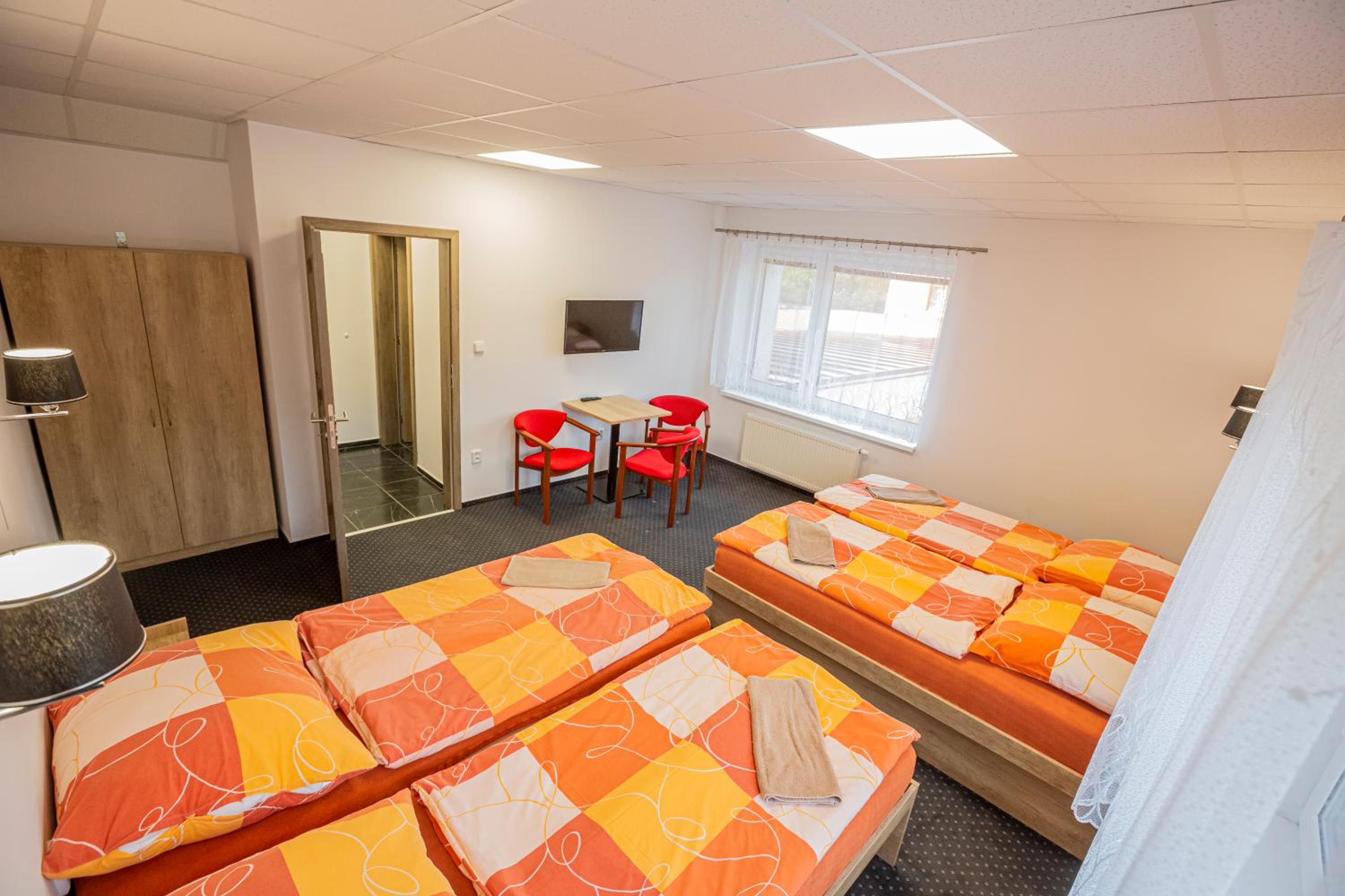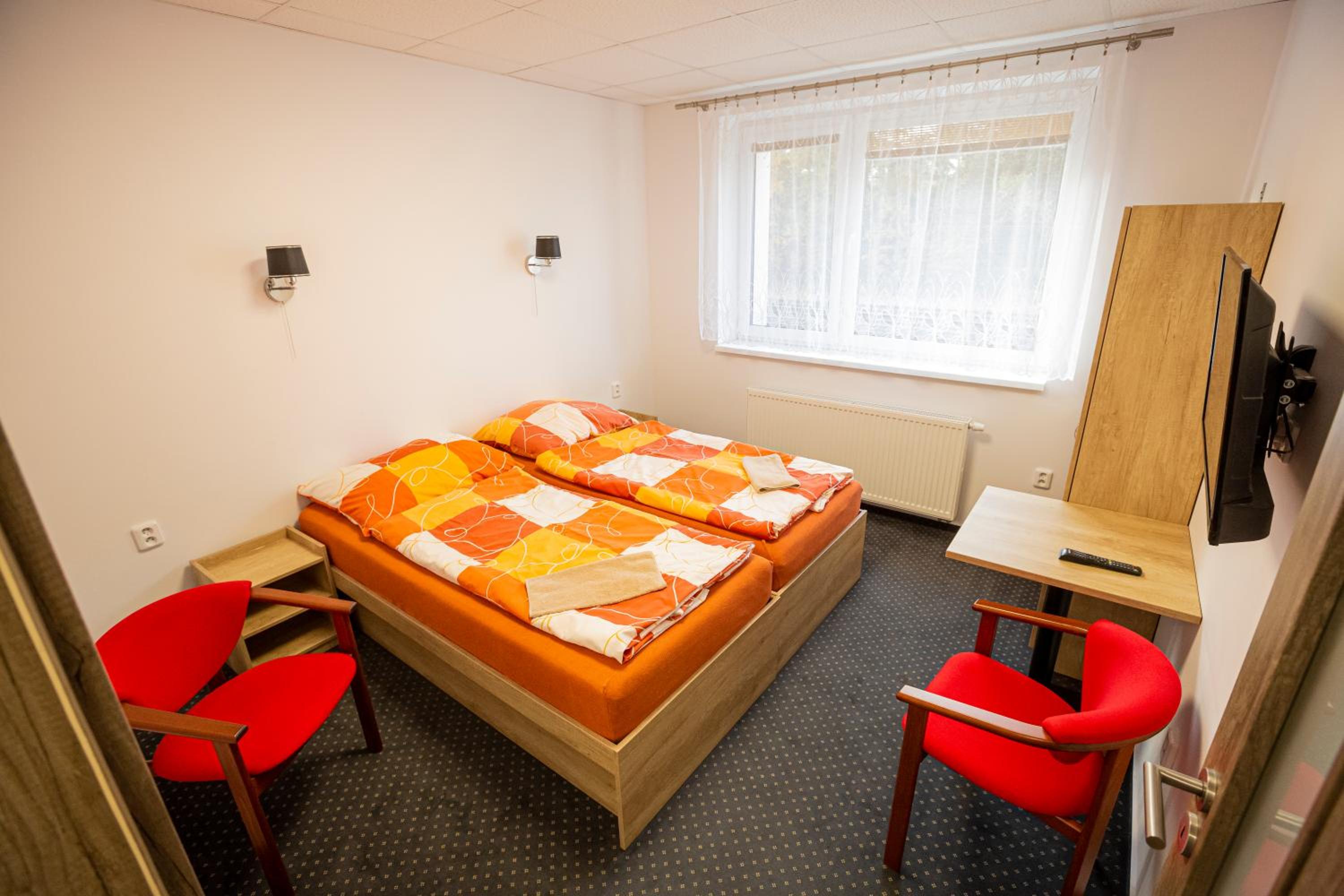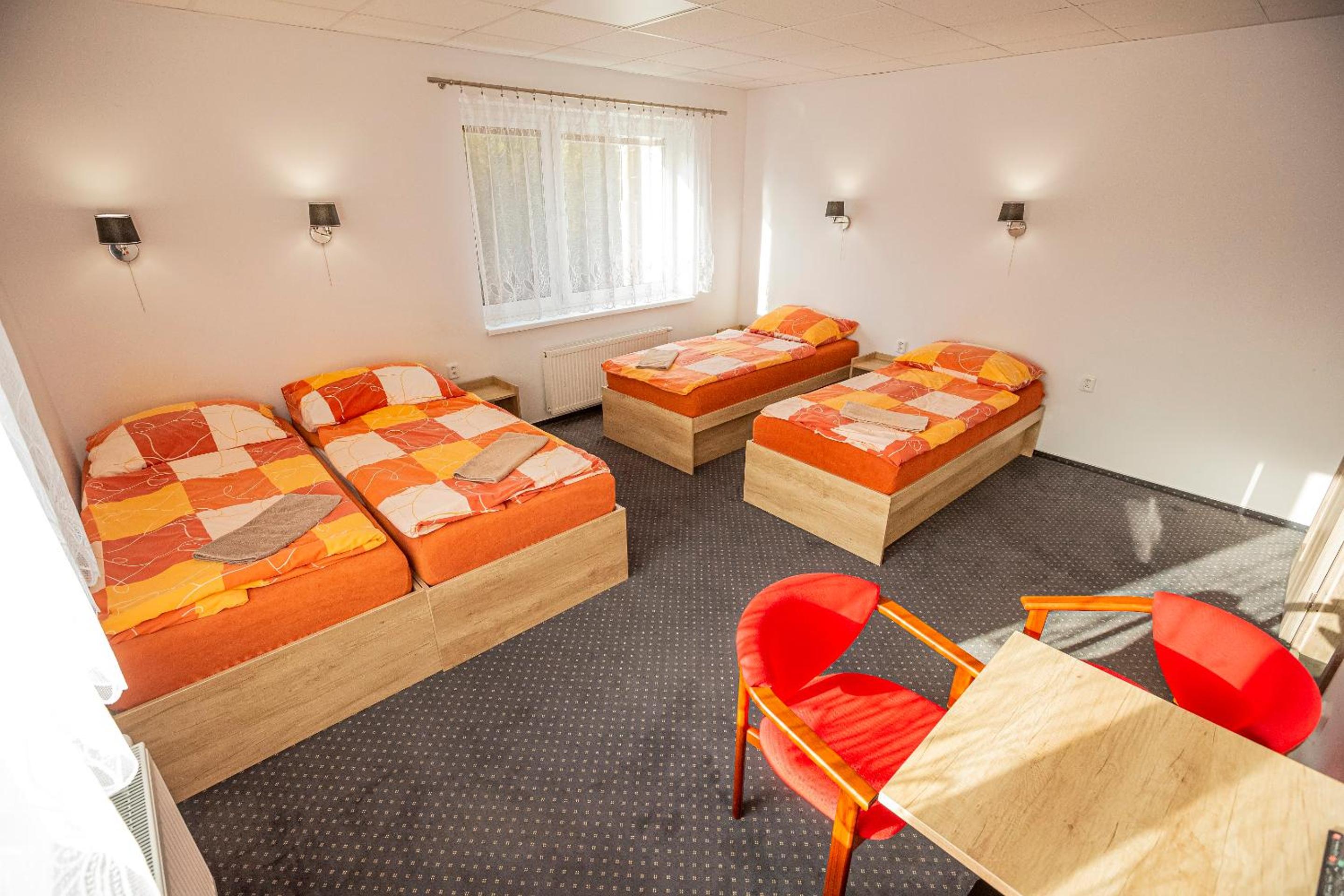 Na pokoji je trošku znát, že tam bývají ubytovaní dělníci. Nic proti nim, ale olezlá zeď nad postelí a podobně.