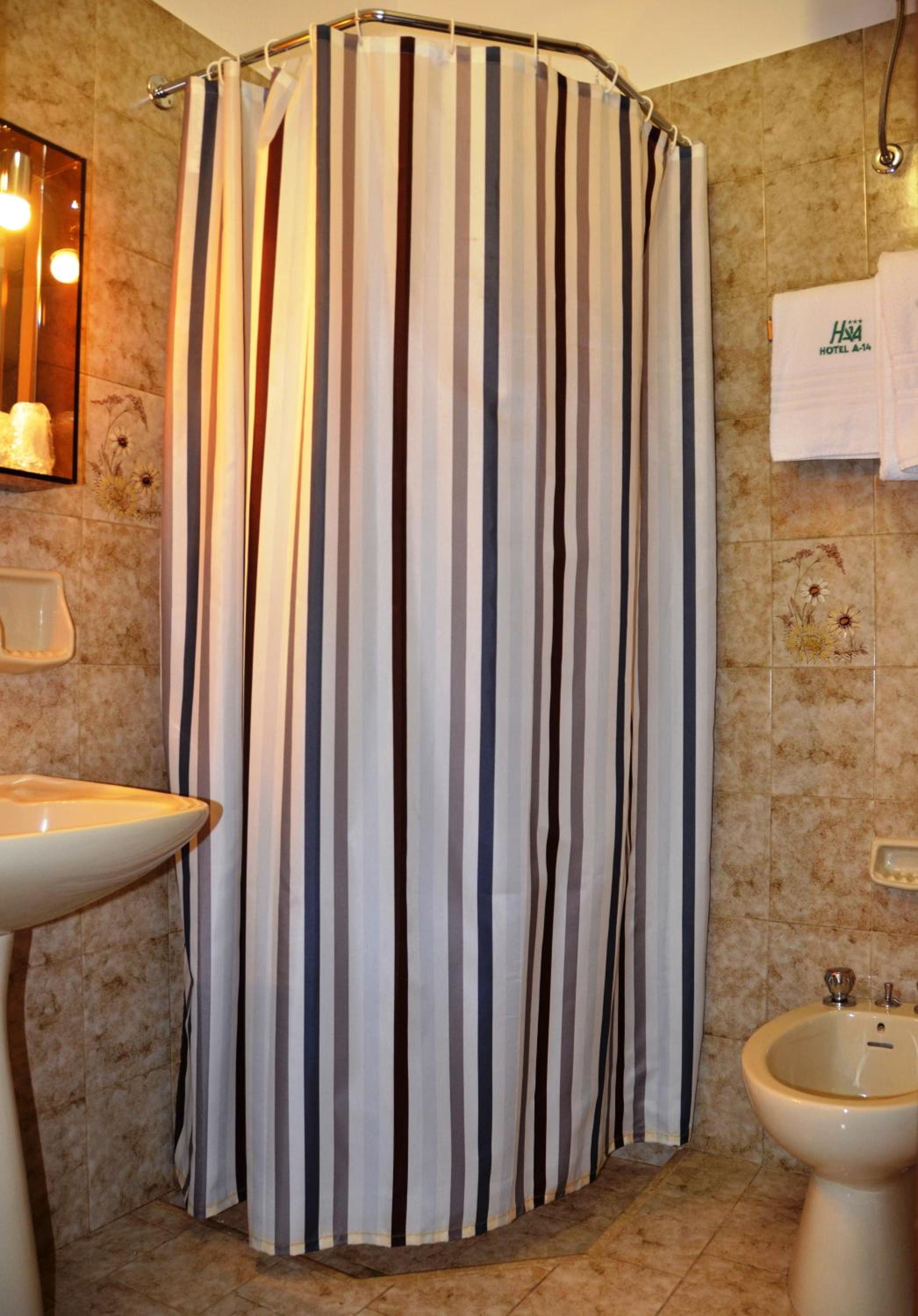 The classic-style rooms at Hotel A-14 are designed to provide a comfortable stay, featuring amenities such as a flat-screen TV with premium channels, air conditioning, and free Wi-Fi. The private bathrooms are stocked with complimentary toiletries for added convenience.