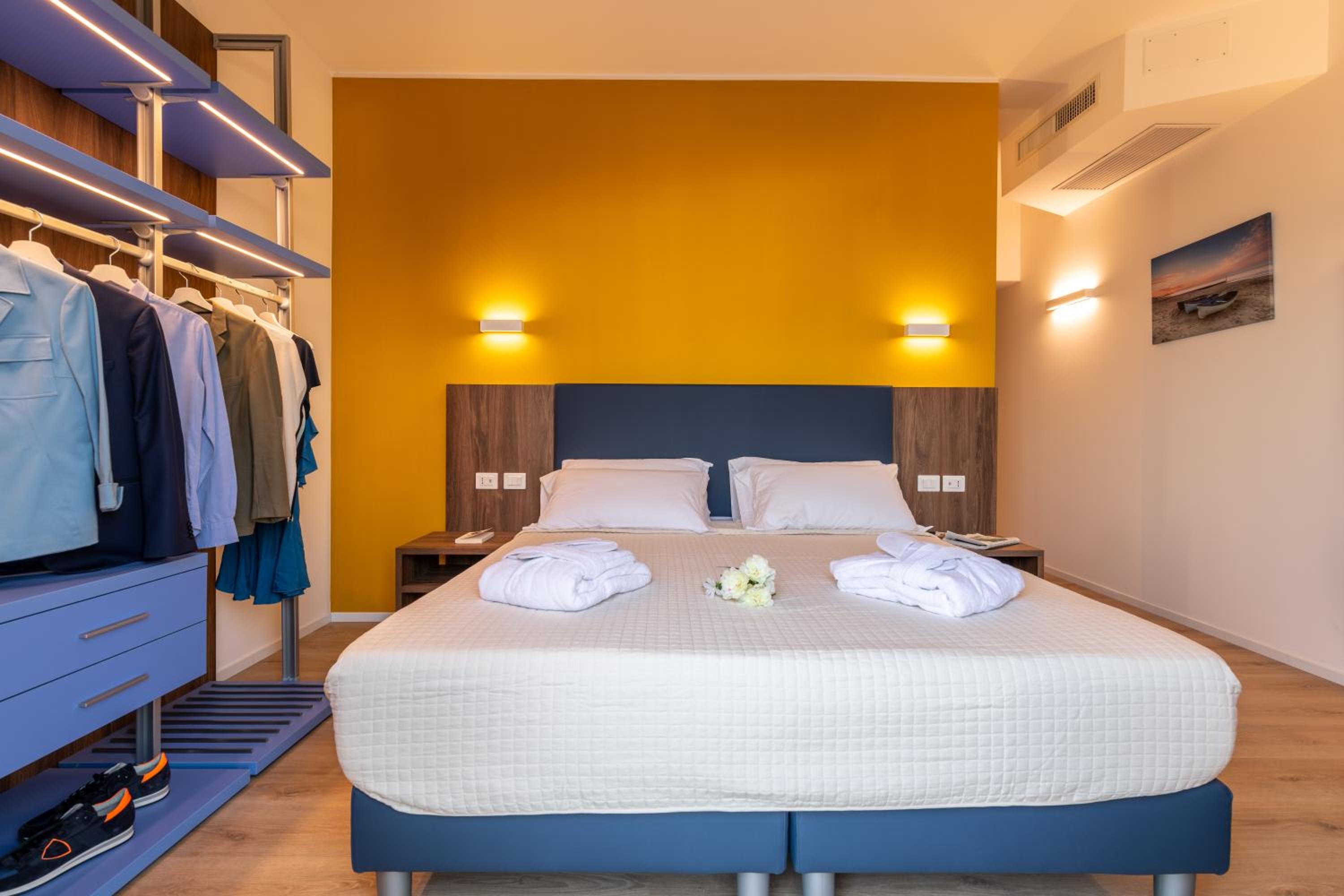 Unwind in our wellness area with a hot tub, sauna, and steam room while soaking in mesmerizing sea views. Explore nearby attractions like Aqualandia theme park and Venice.