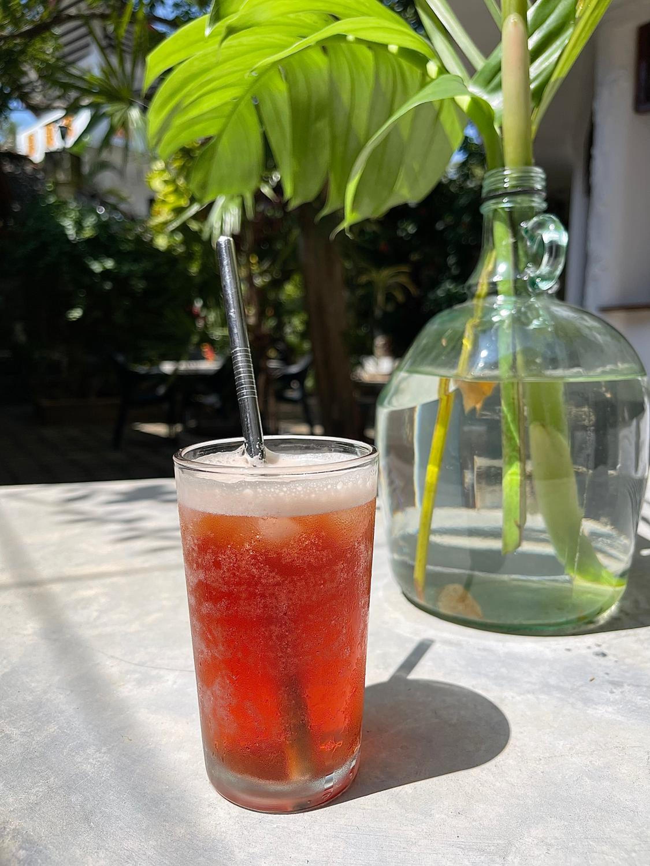 De har skikkelig kaffe, deilig atmosfære i bakgården og det er 30m til stranden